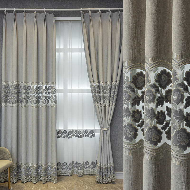 Современная простая атмосфера гостиная балконная балкона пола -на филе -на филе имитация окна, хлопок, конопляная вода -сосудимых вышитых цветочных занавес