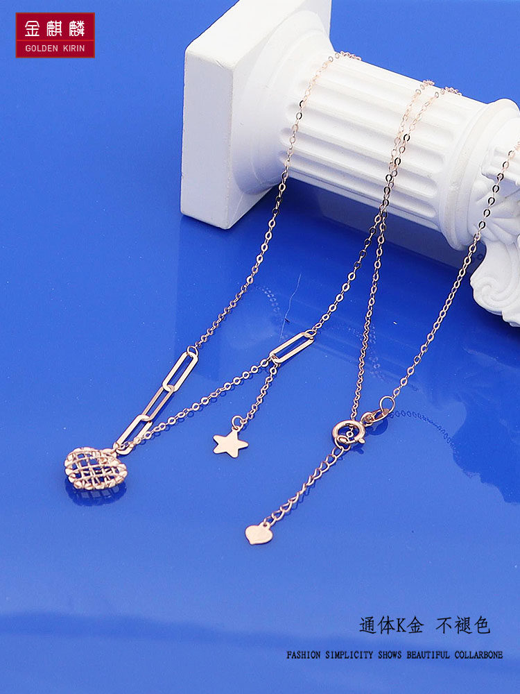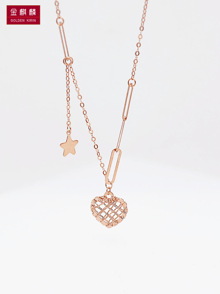 Jin Qilin Russia 585 Purple Gold 14k Gold Rose Gold Hengyuan Sujin Love Пятиконечное звездное ожерелье в подарок украшения