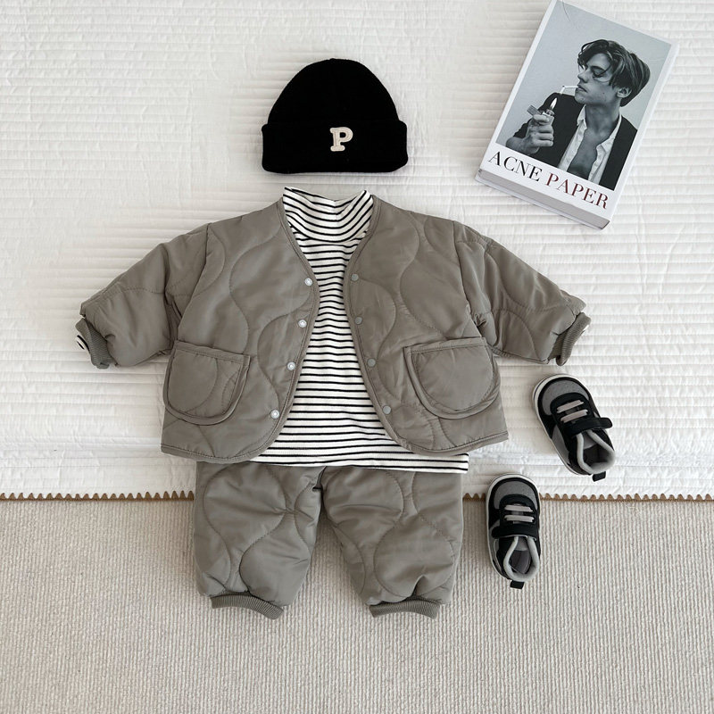 Брендовый пуховик подходит для мужчин и женщин для девочек, стеганая утепленная куртка, штаны, удерживающий тепло комплект для раннего возраста