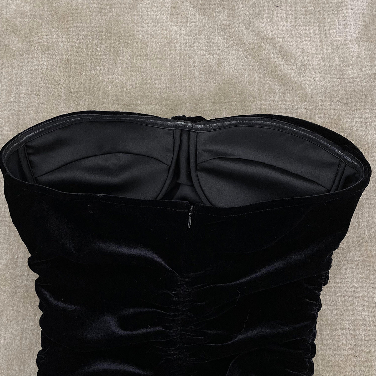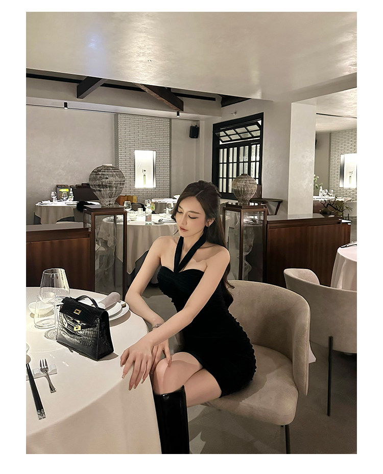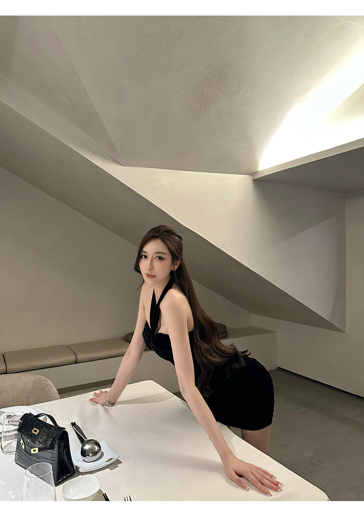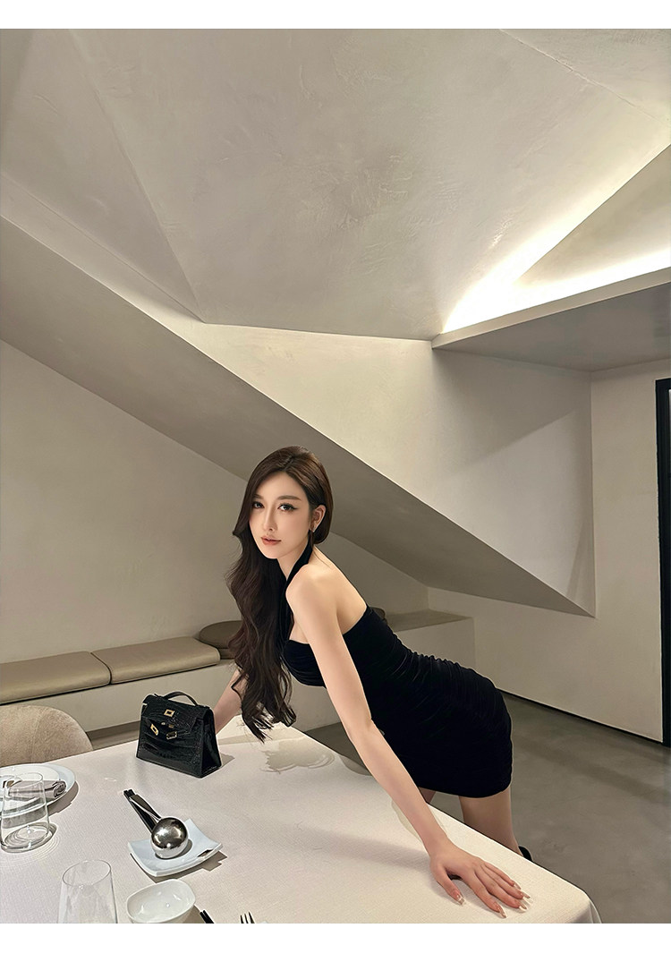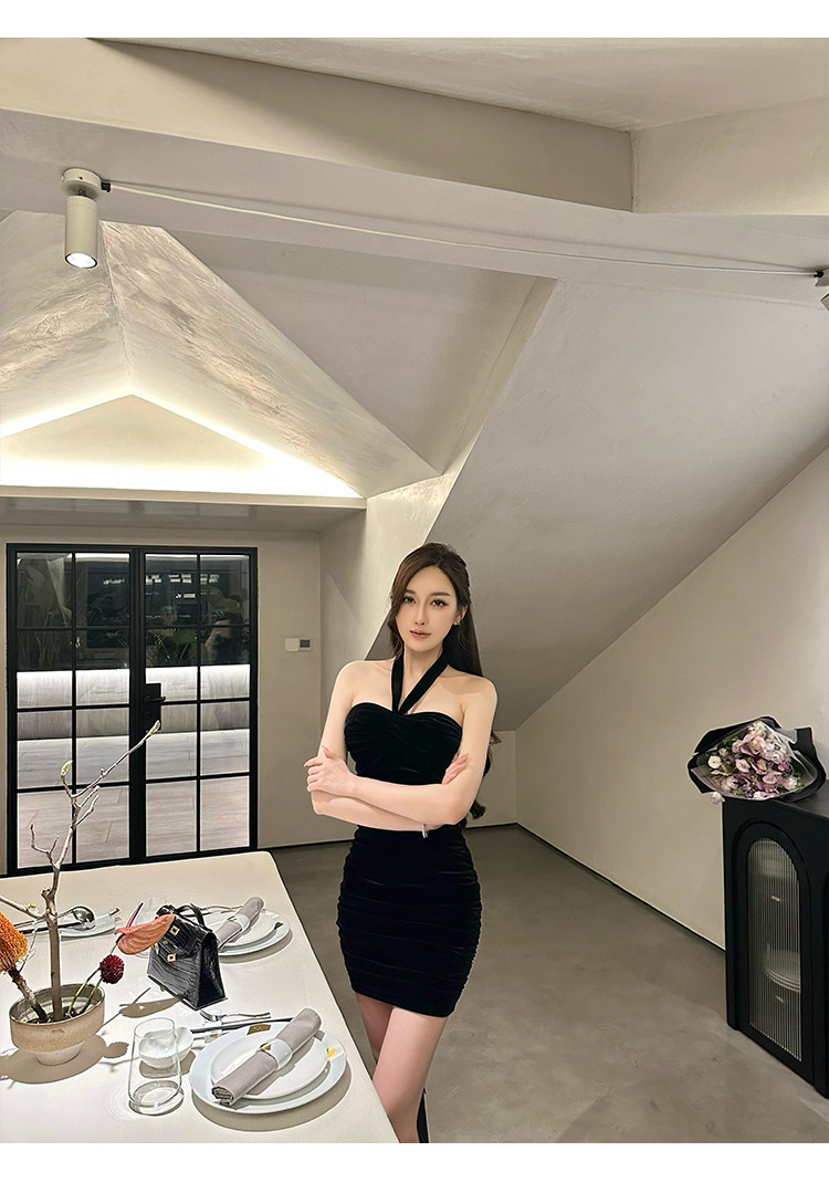 Бархатное платье, эластичный приталенный корсет, мини-юбка, с открытой спиной, с акцентом на бедрах