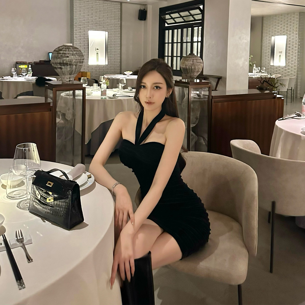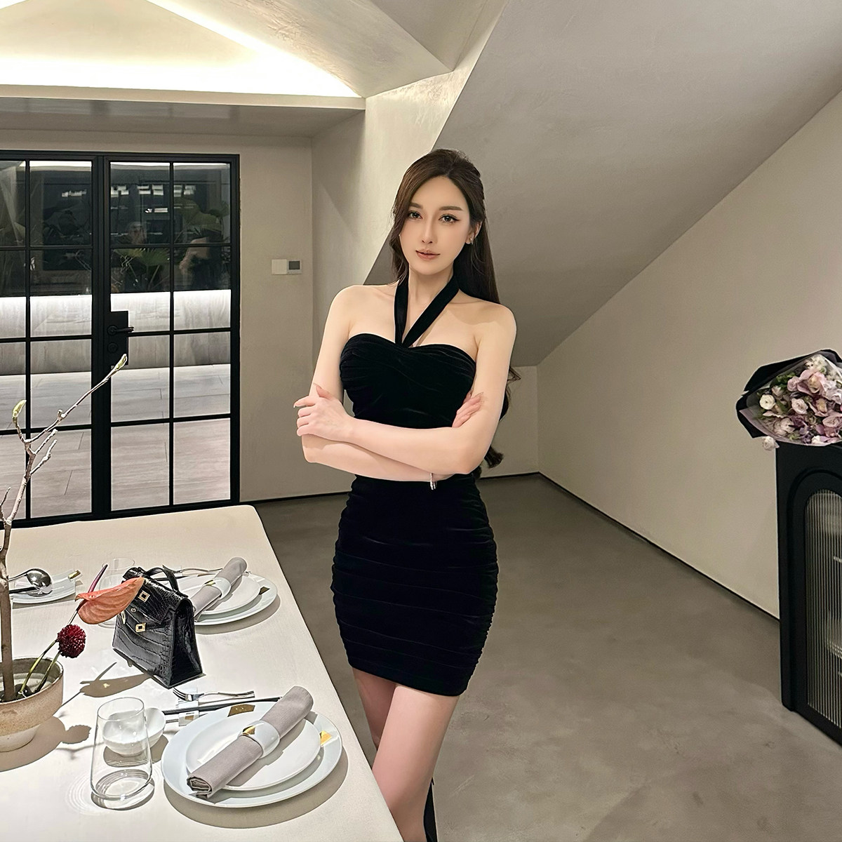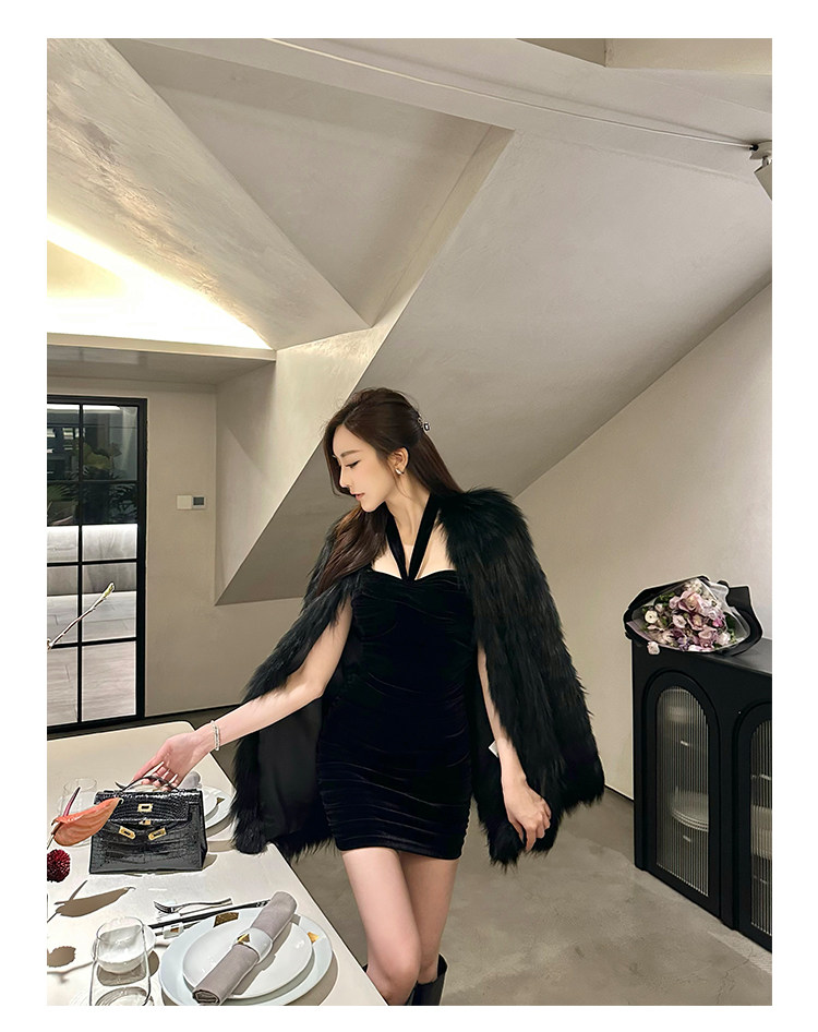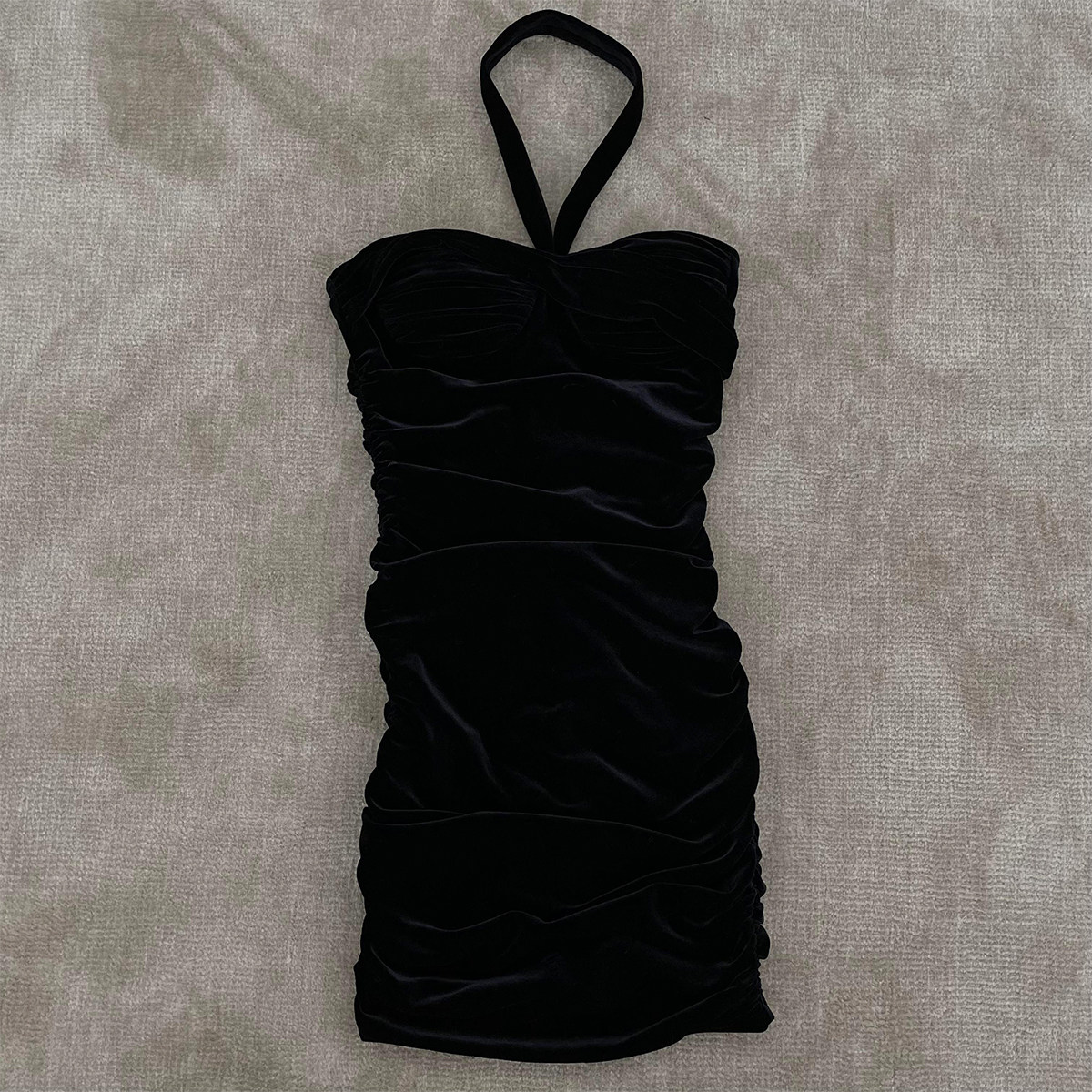 Бархатное платье, эластичный приталенный корсет, мини-юбка, с открытой спиной, с акцентом на бедрах