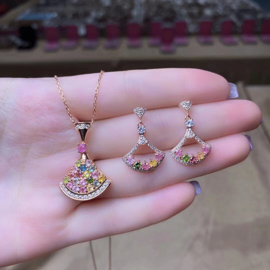 Натуральные турмалиновые серьги, подвеска, турмалиновое модное ожерелье, легкий роскошный стиль