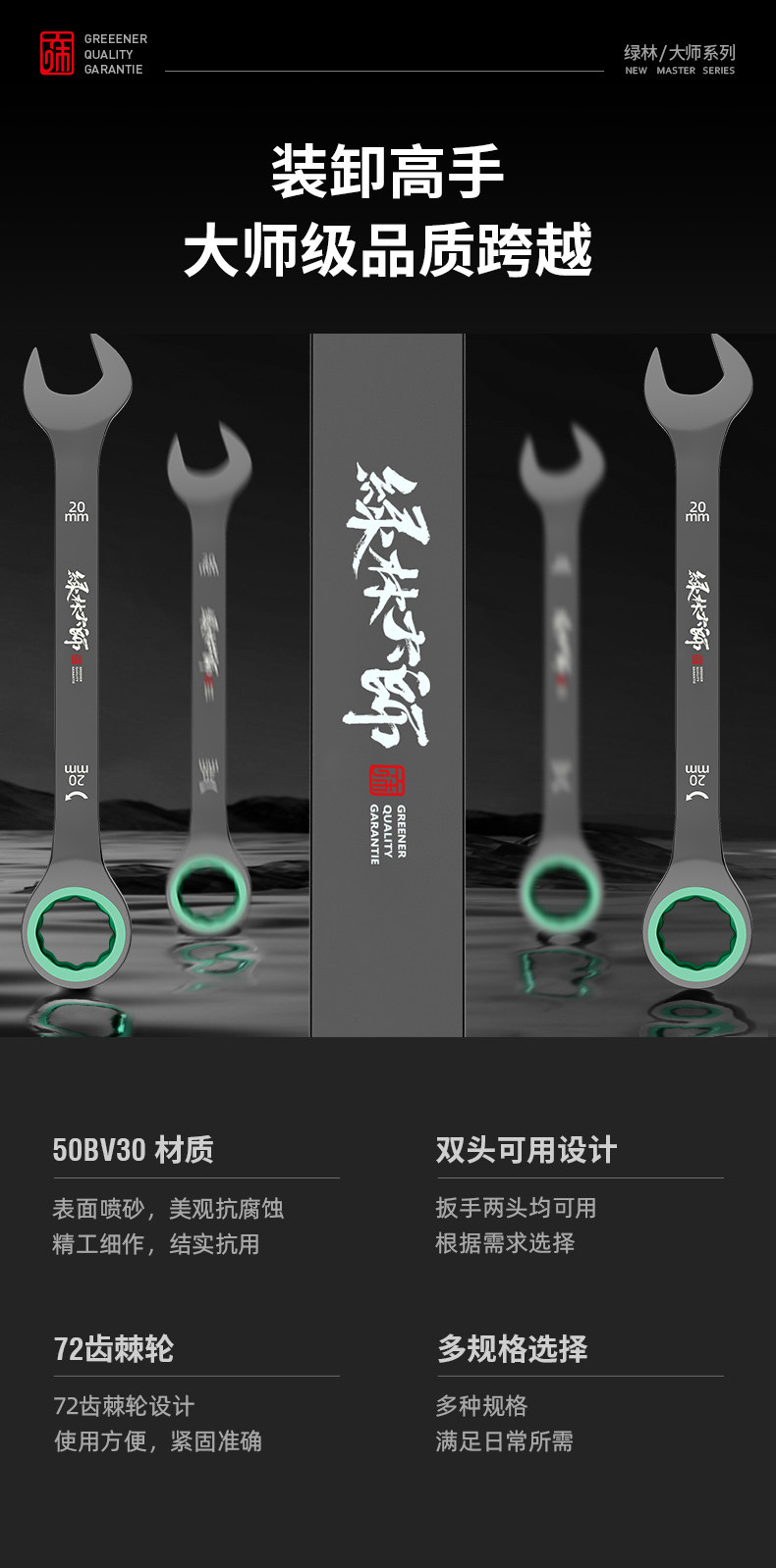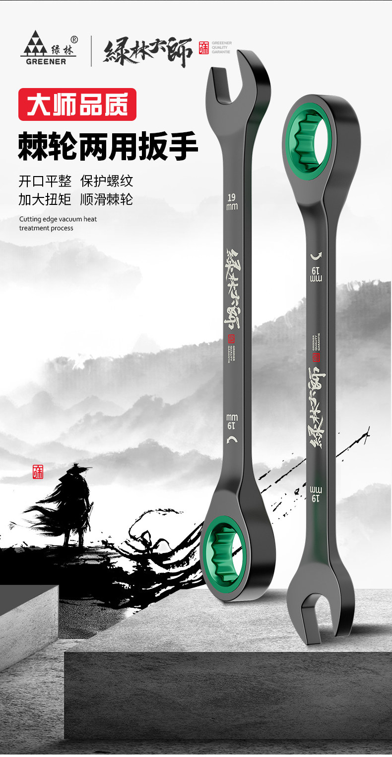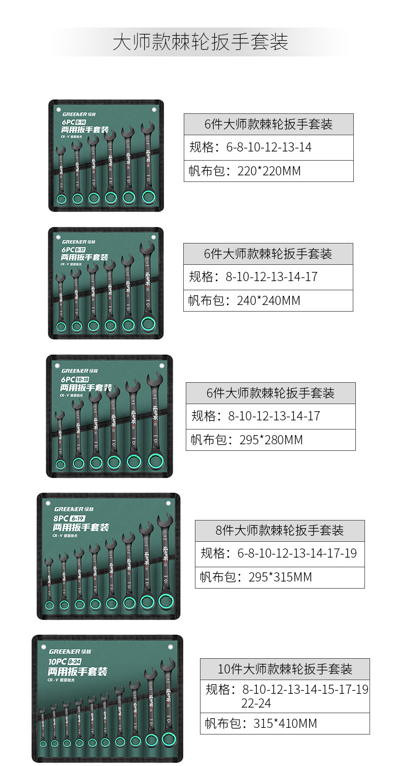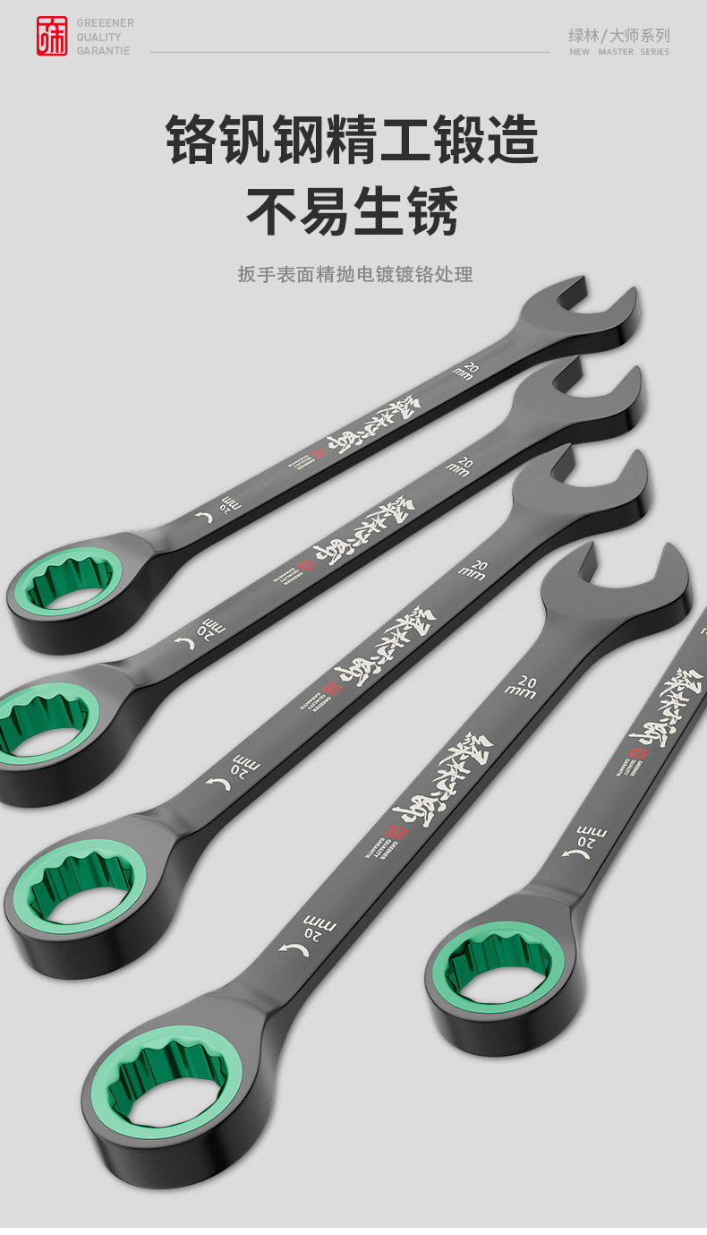 Green Forest Master Двусторонний быстрый ключ с храповым механизмом в виде сливы, автоматический двойной ключ двойного назначения промышленного класса, набор инструментов