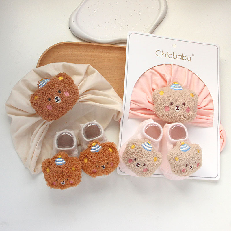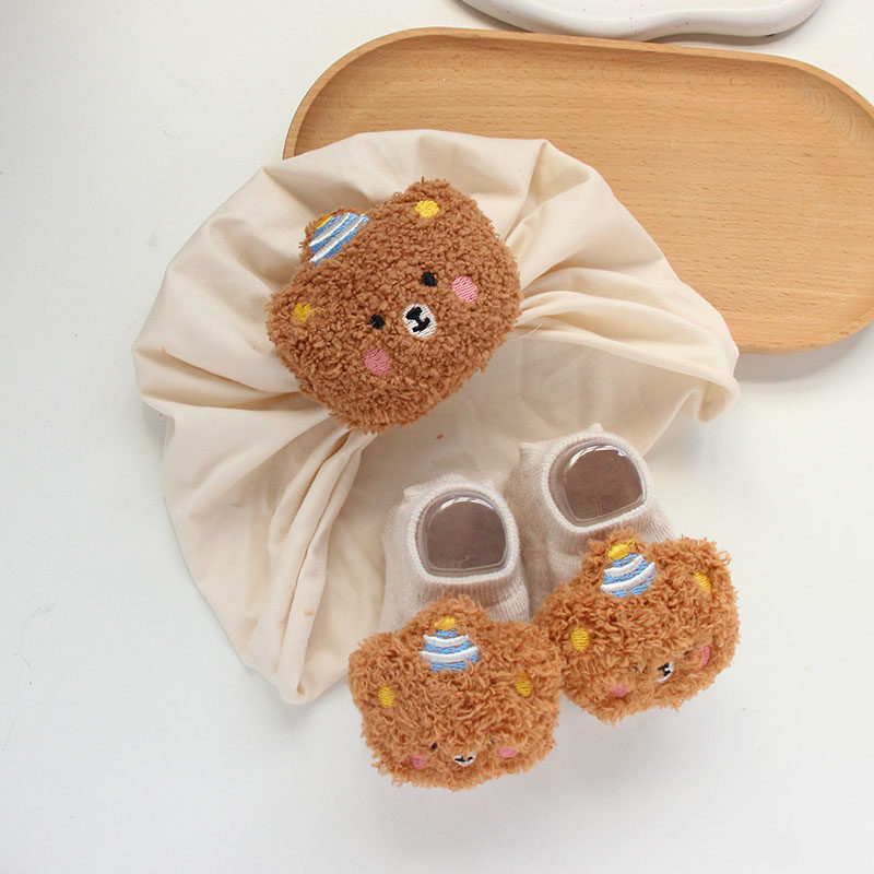 Демисезонная детская милая шапка подходит для мужчин и женщин для девочек для новорожденных, мультяшные носки, с медвежатами