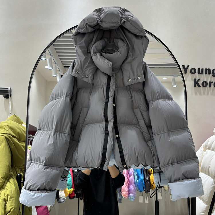 Двусторонний пуховик, зимняя куртка, в корейском стиле, свободный крой, 2023, утиный пух
