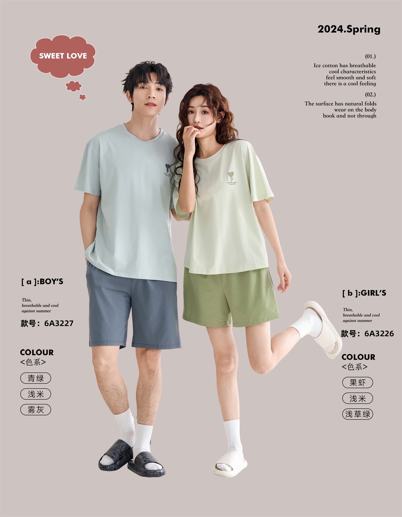 Весенняя летняя пижама подходит для мужчин и женщин, хлопковый комплект в виде сердечка, 2024 года, для влюбленных, короткий рукав