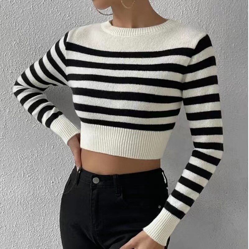 Европейский и американский новый свитер полосатый короткий внутренний вязаный вязаный свитер