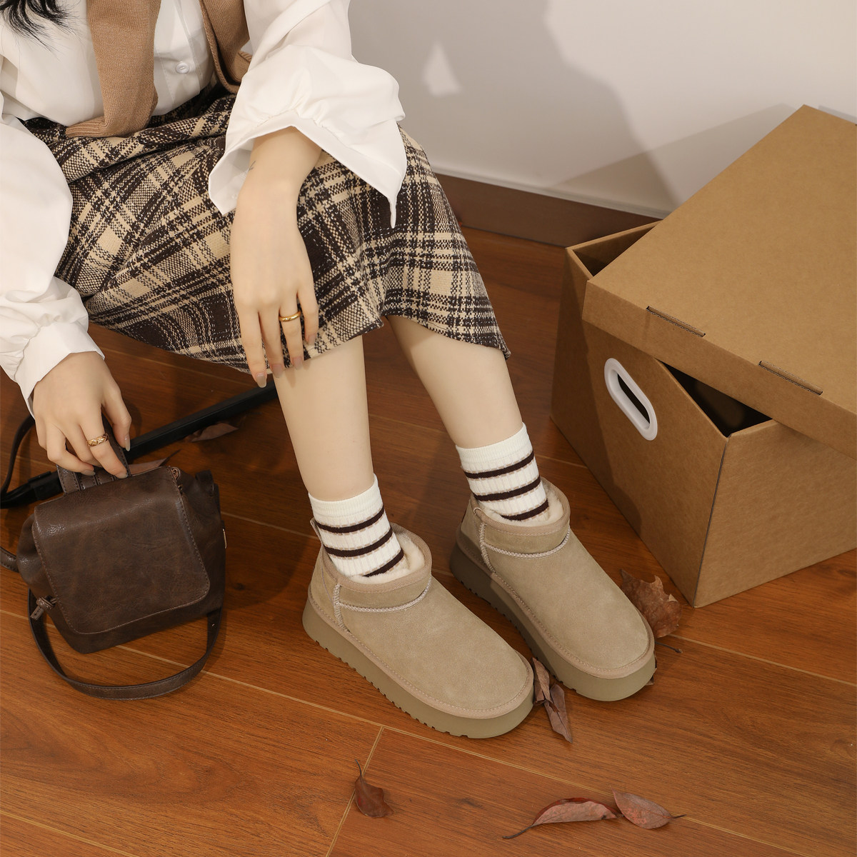 伯爵猫 Утепленные высокие универсальные зимние короткие сапоги на платформе