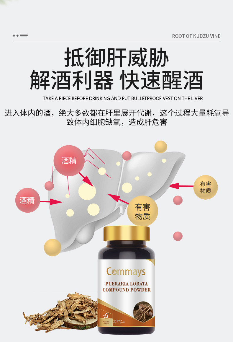 Американский импортный композитный порошок Commmyssen Pueraria для похмелья для защиты печени и водой ковантина и чертополоха, чтобы не спать поздно