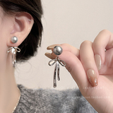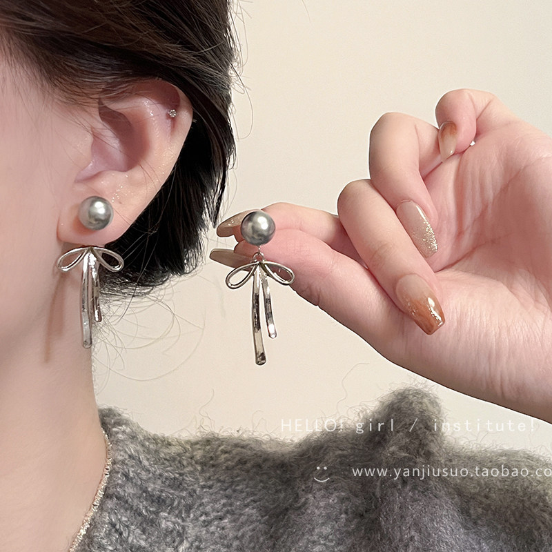 Серьги из жемчуга с бантиком, легкий роскошный стиль, изысканный стиль