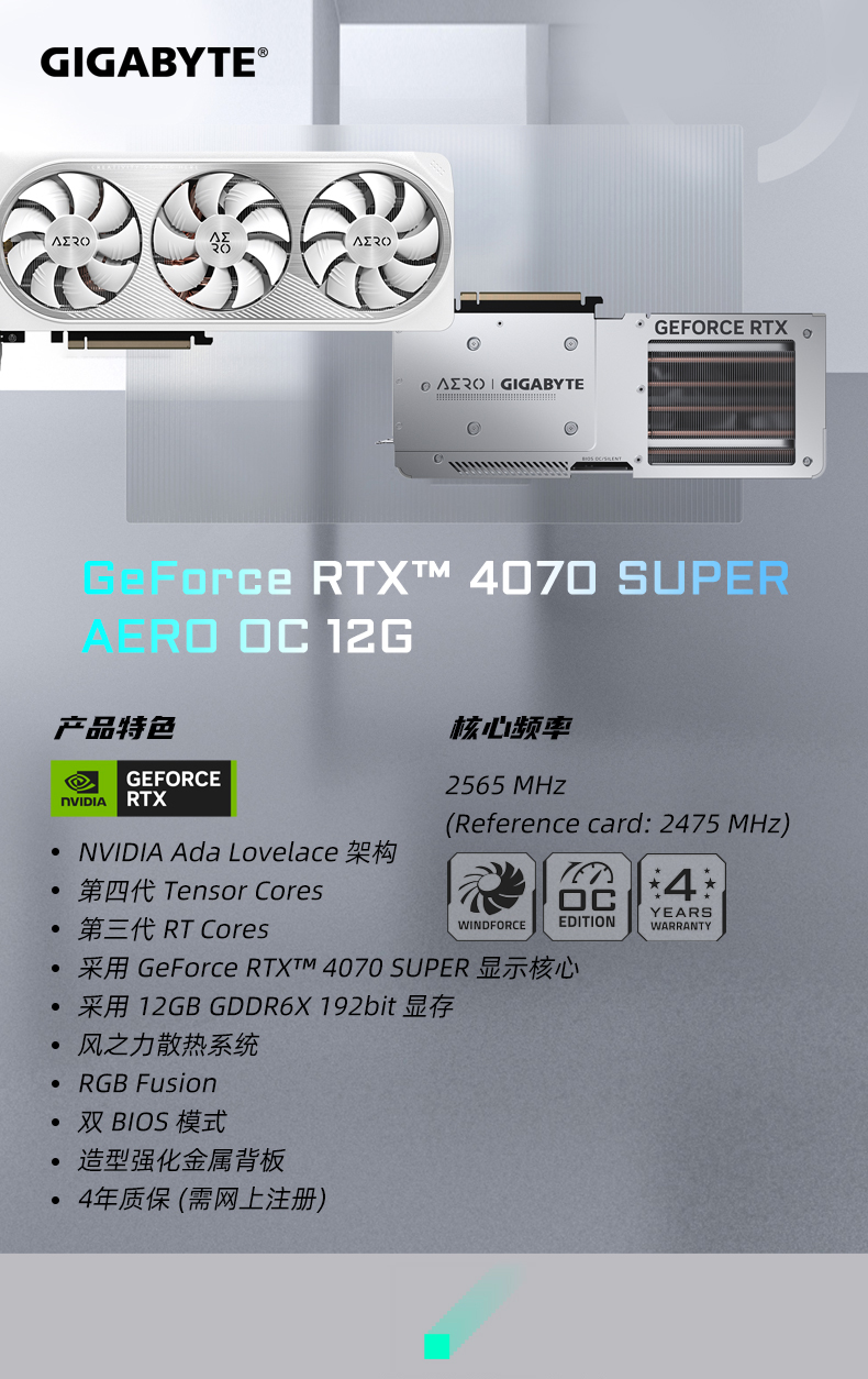 - [4070 Snow Eagle Регистрация 4-летняя] RTX 4070 Aero OC 12G