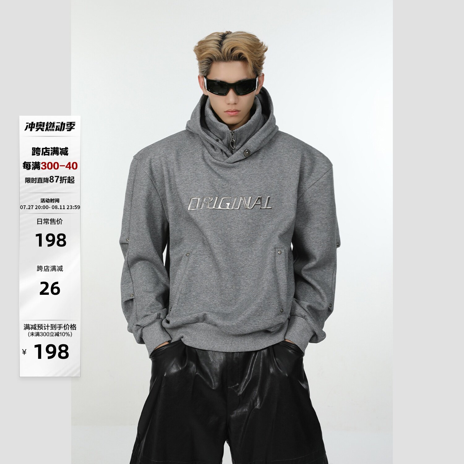 Дизайнерская толстовка с капюшоном, утепленный балахон, тренд сезона