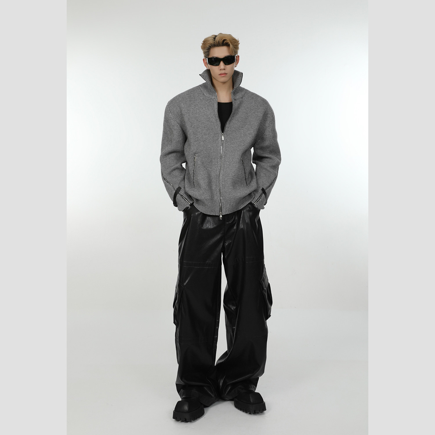 Дизайнерский мужской демисезонный кардиган с молнией, трикотажный свитер, тренд сезона, оверсайз