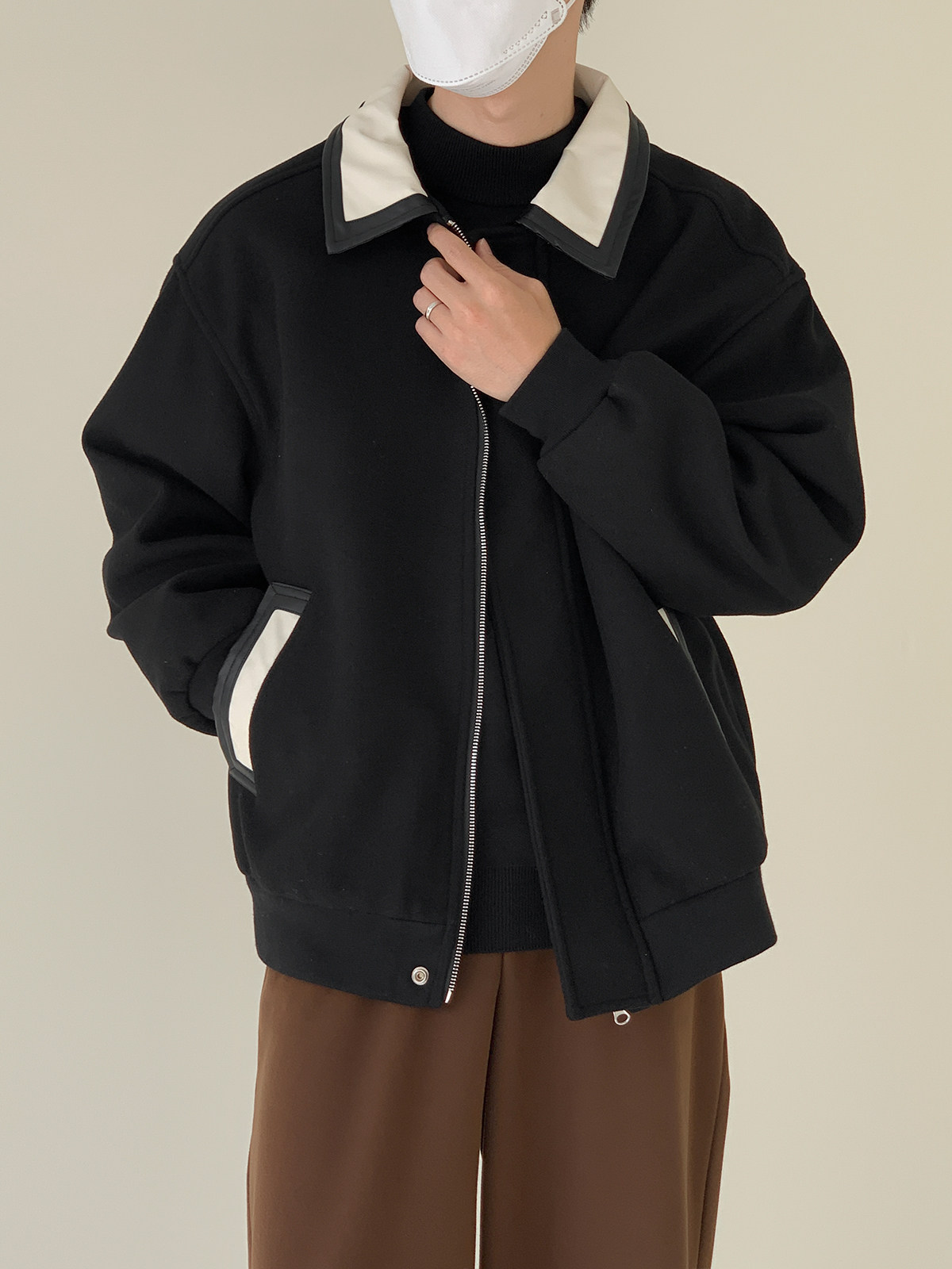 Полиуретановое мужское дизайнерское шерстяное пальто, короткая куртка для отдыха, тренд сезона, оверсайз
