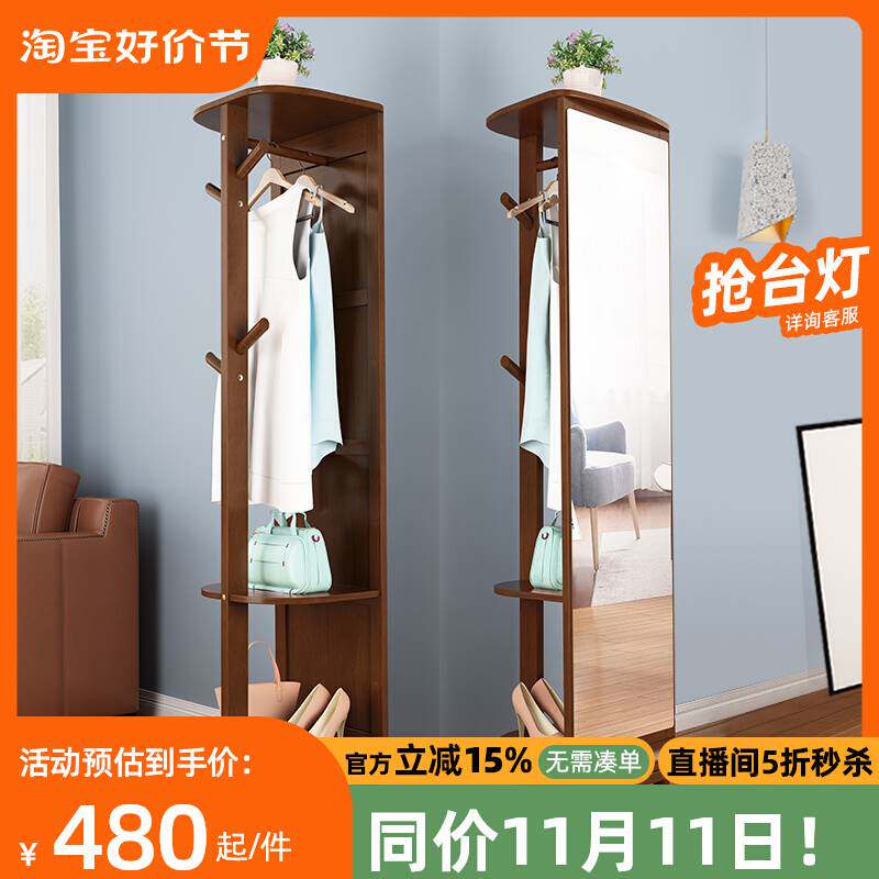 Туалетное зеркало из массива дерева, зеркало во весь рост от пола до потолка, домашнее зеркало в стиле интернет-знаменитостей, вешалка для одежды, встроенный шкаф, поворотный