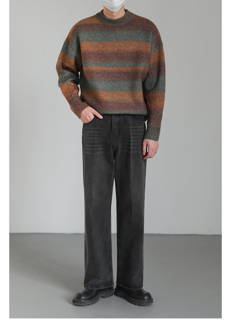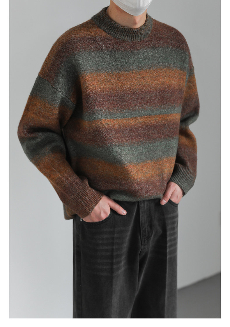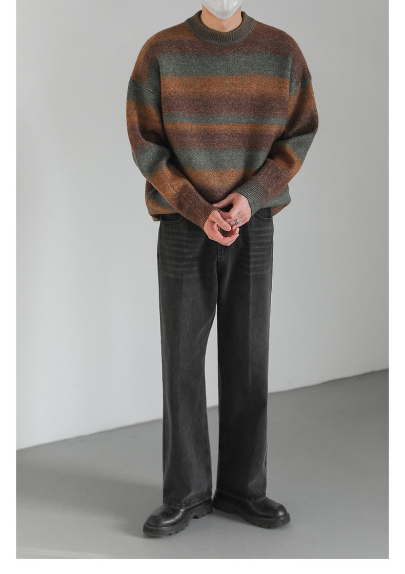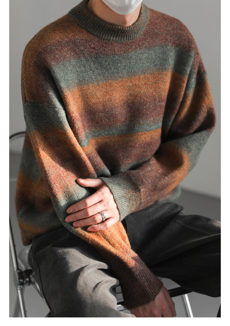Демисезонный шерстяной трикотажный трендовый свитер с круглым воротником, оверсайз