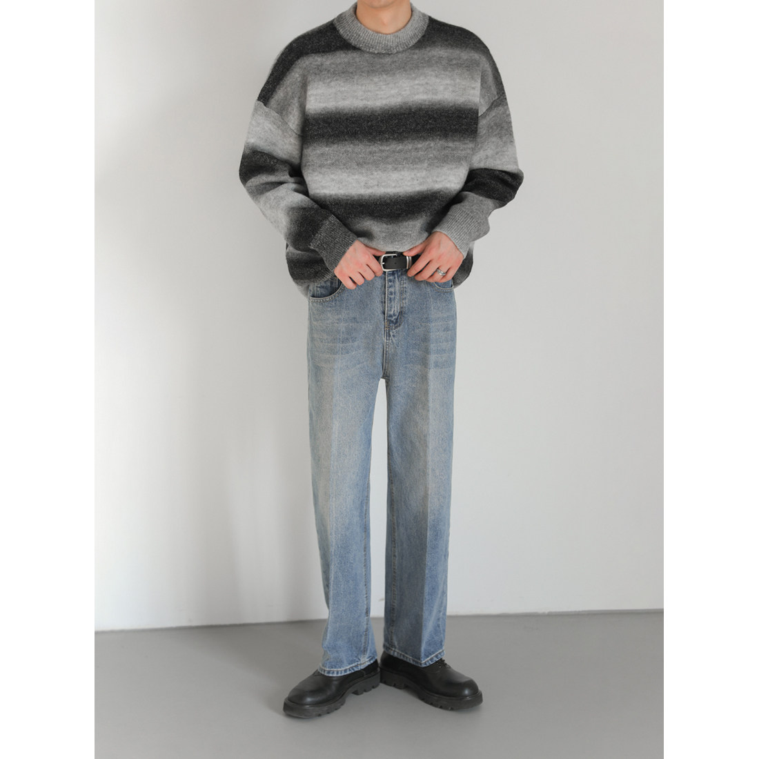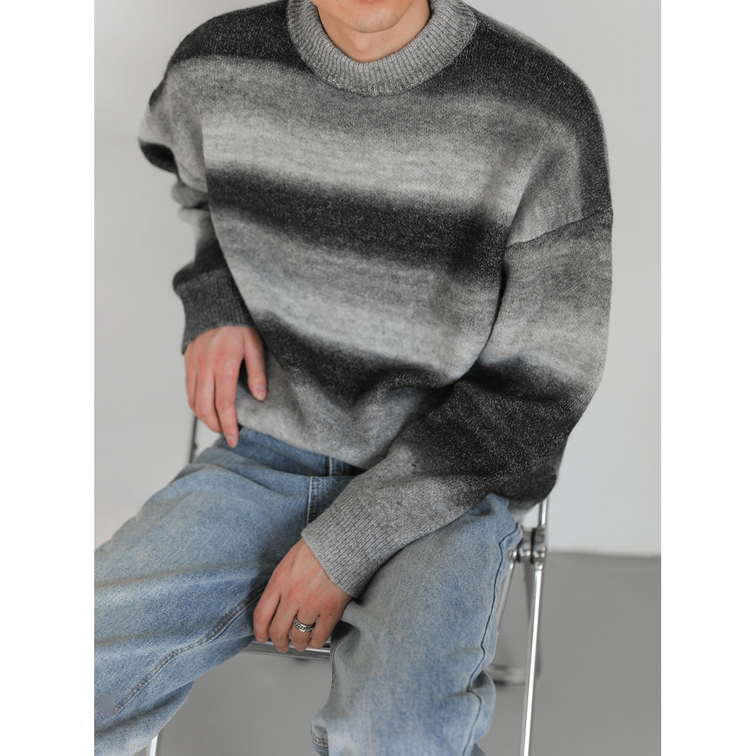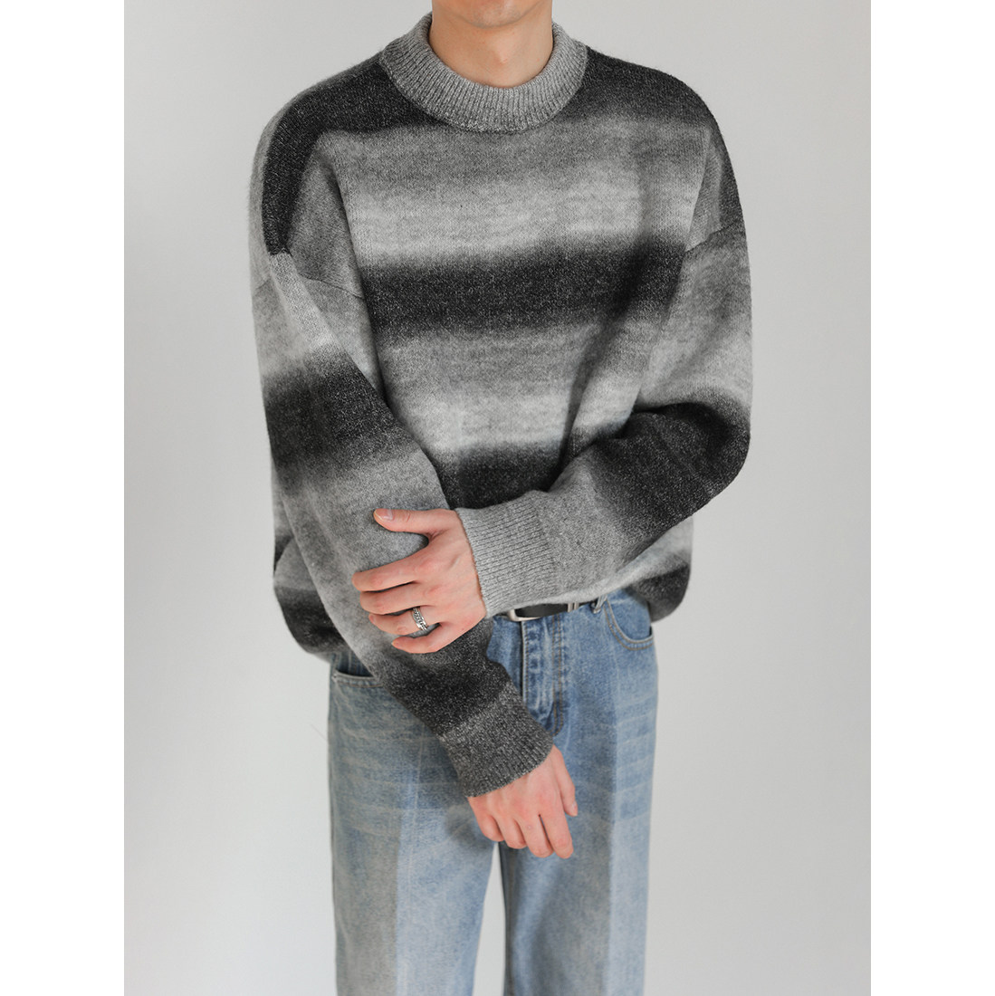 Демисезонный шерстяной трикотажный трендовый свитер с круглым воротником, оверсайз