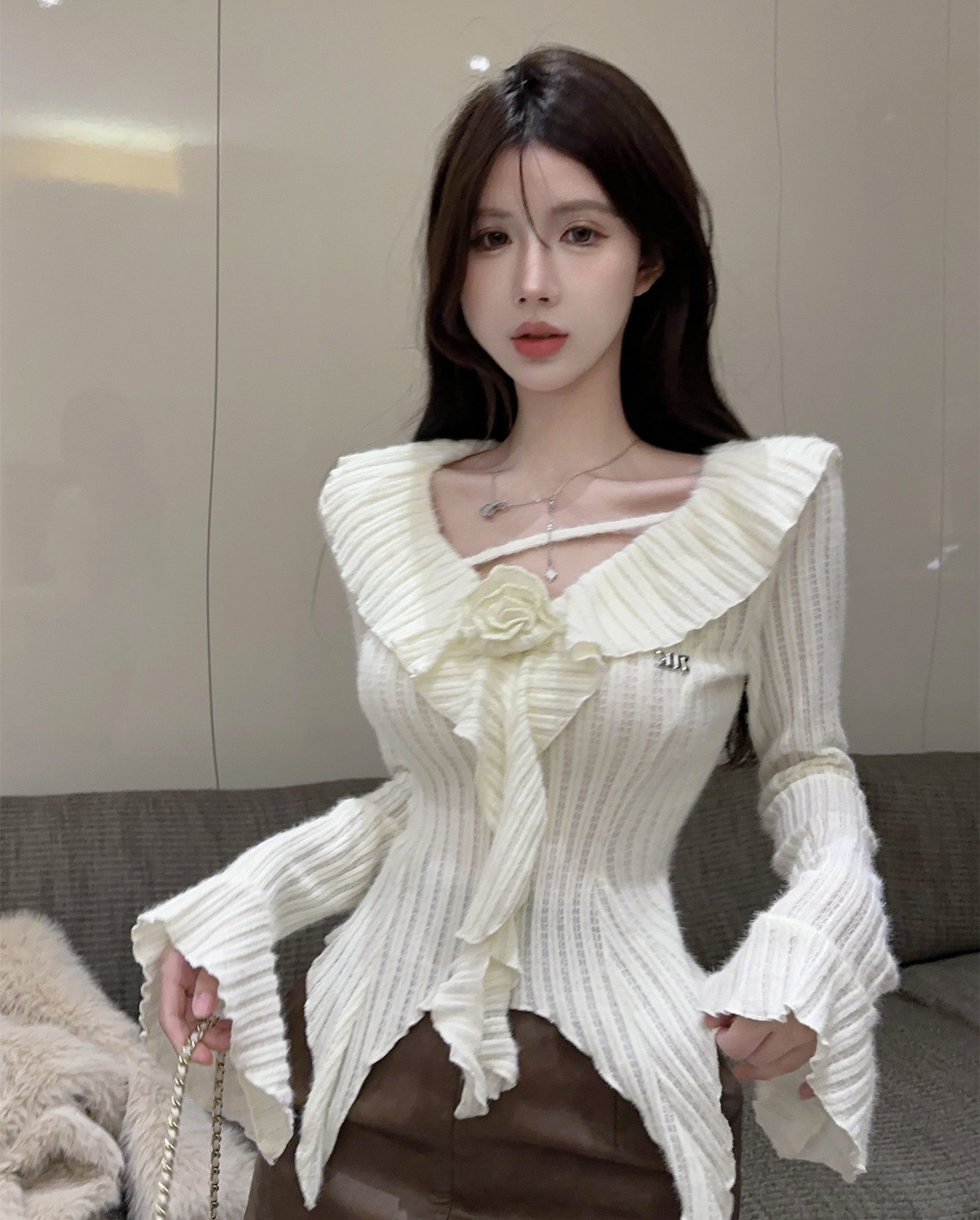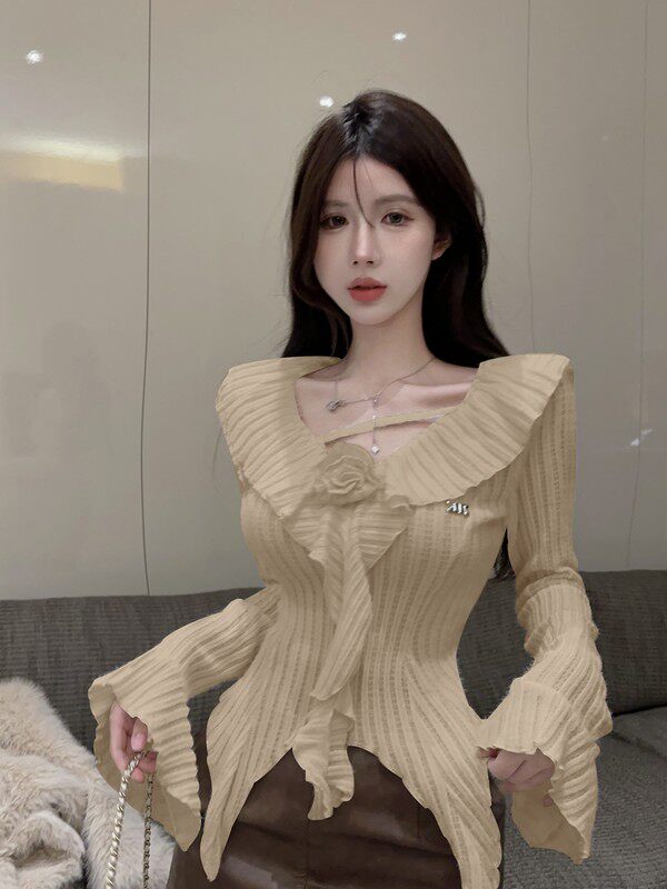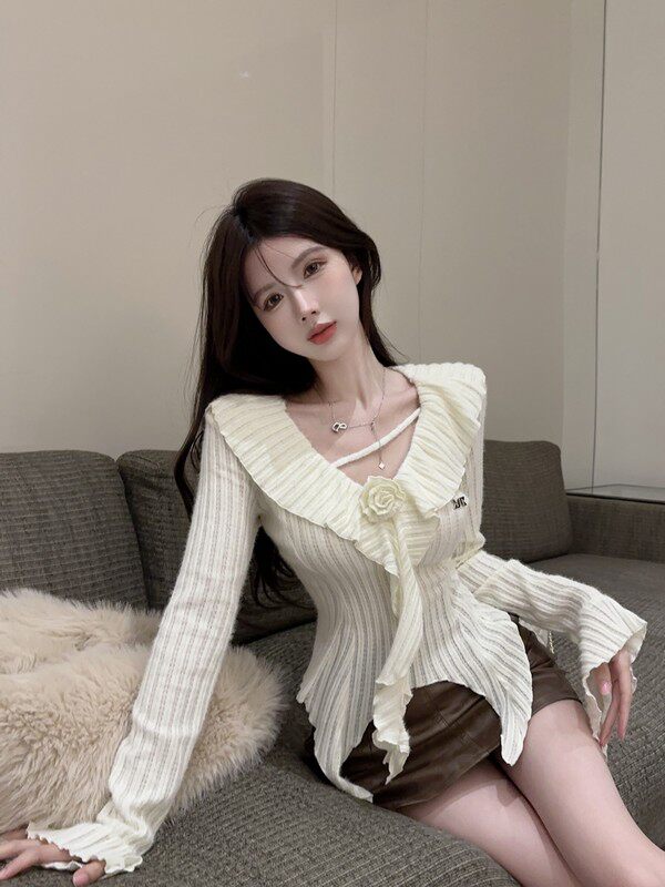 Мегафон, демисезонная футболка, трикотажный базовый приятный телу свитер, V-образный вырез