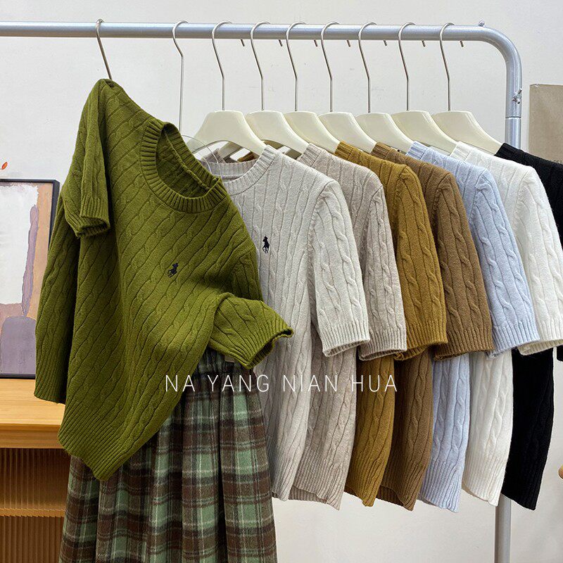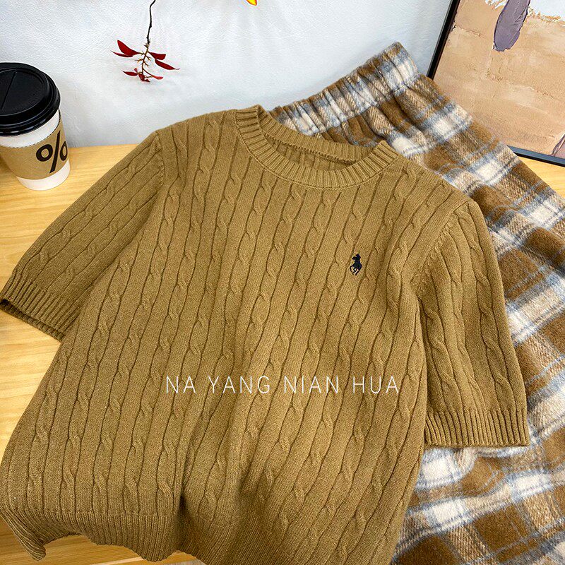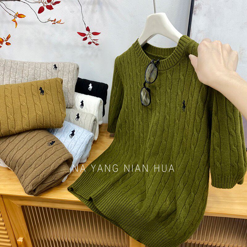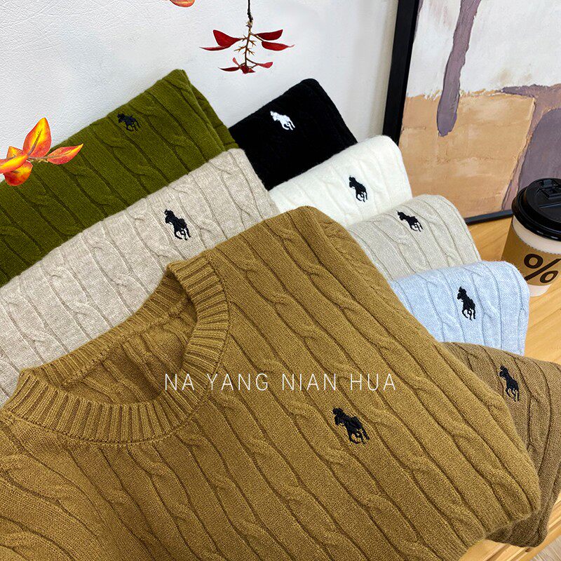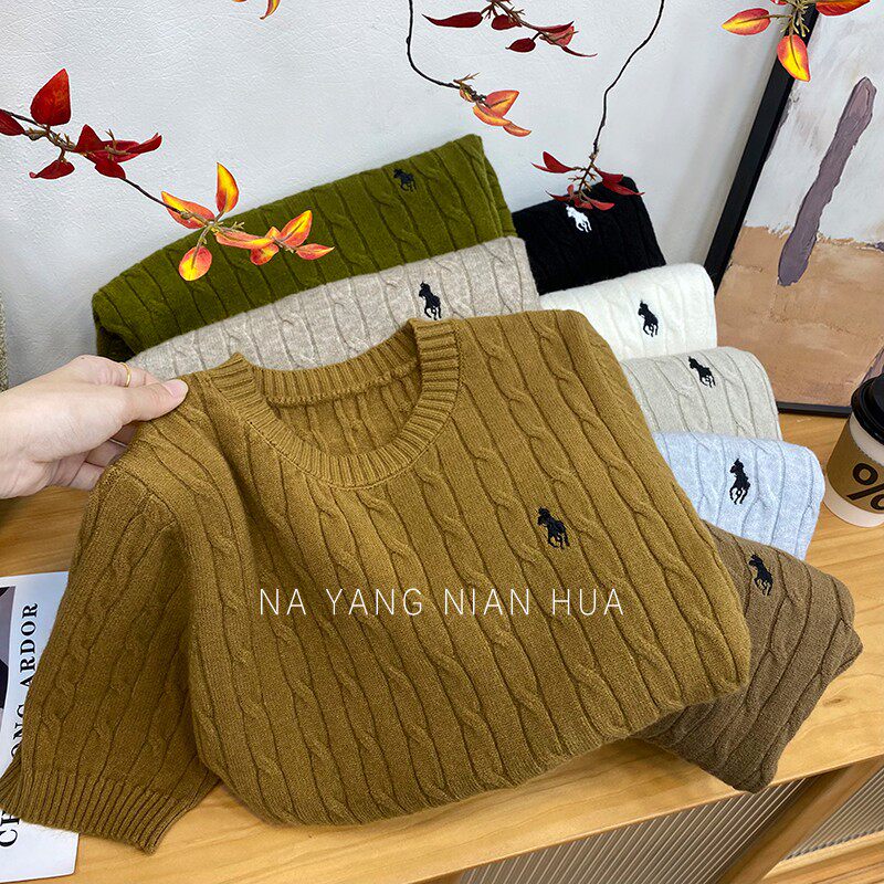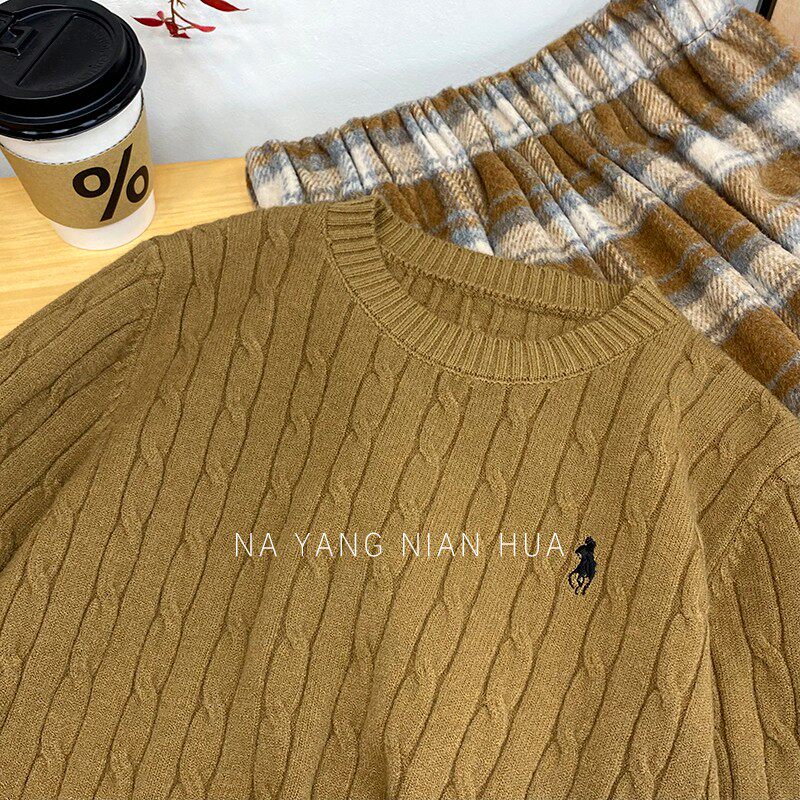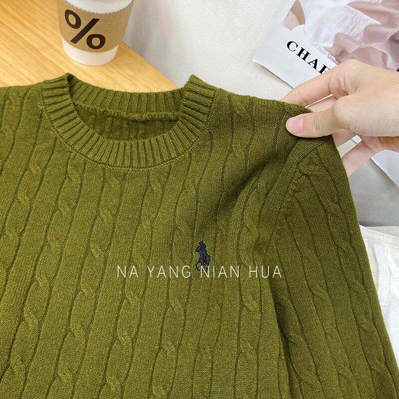 Пони, трикотажный ретро базовый приятный телу свитер, в британском стиле, с вышивкой