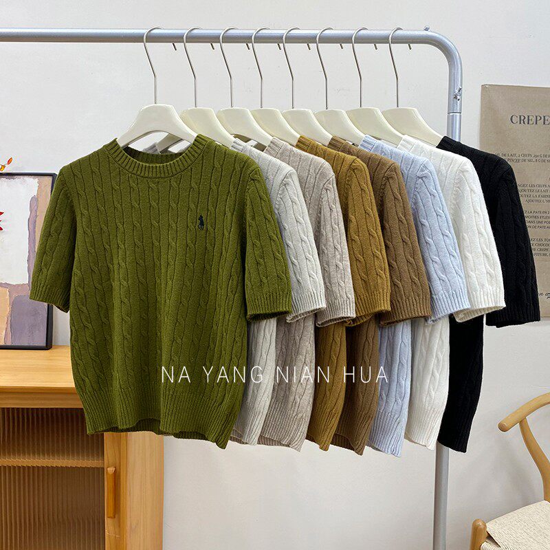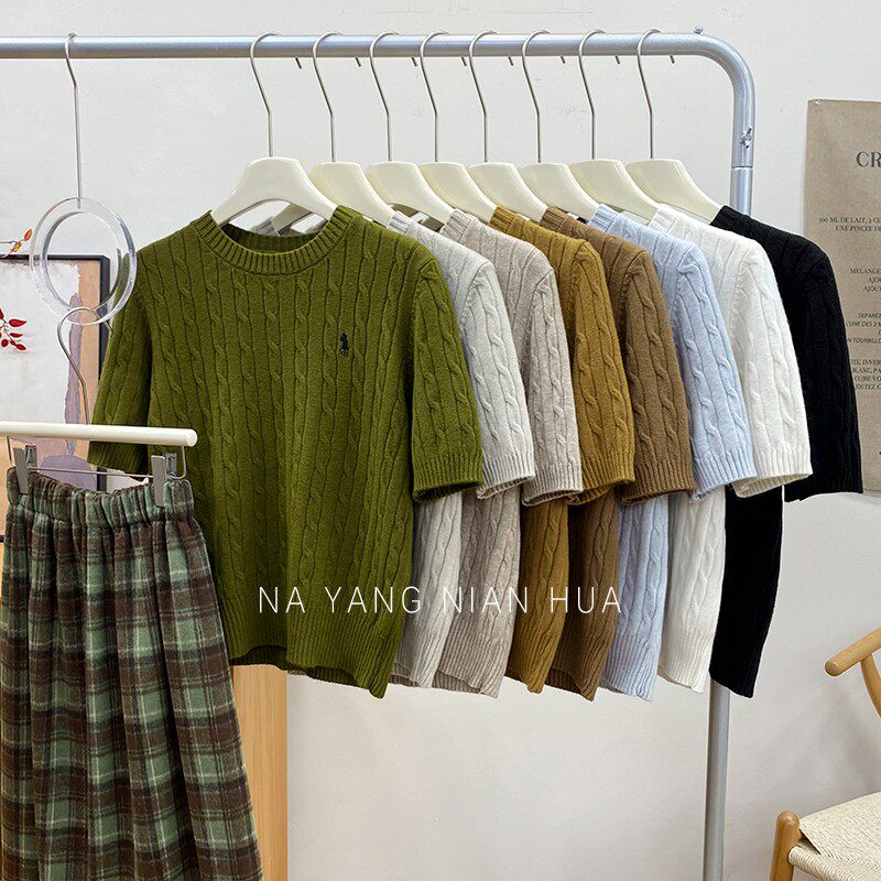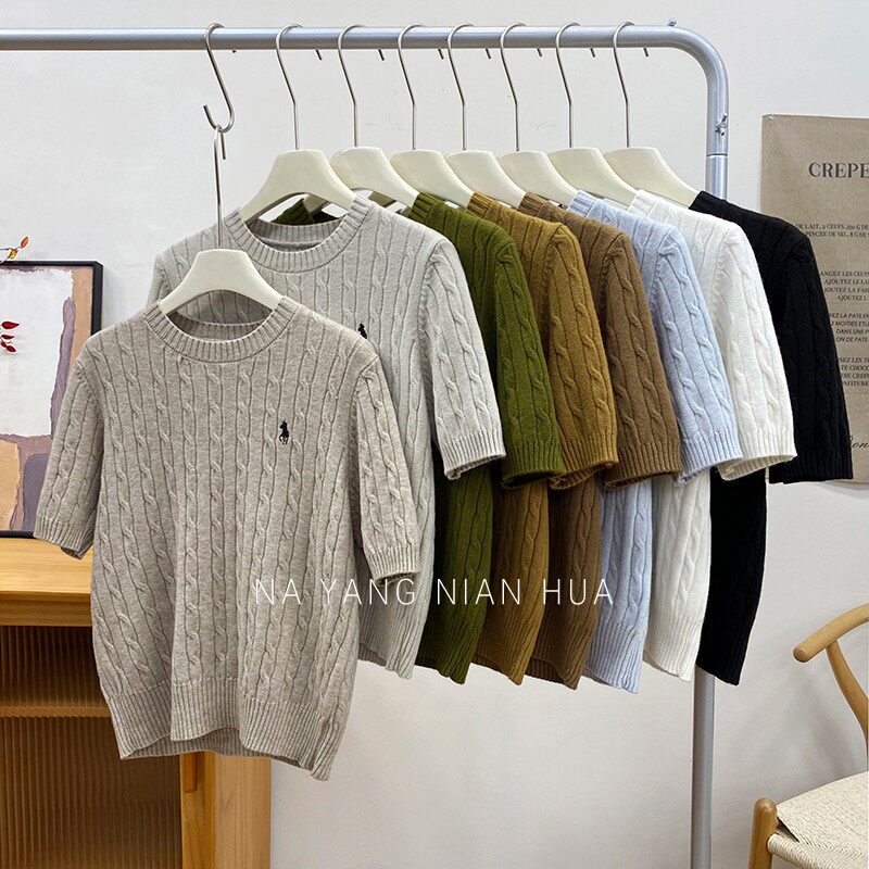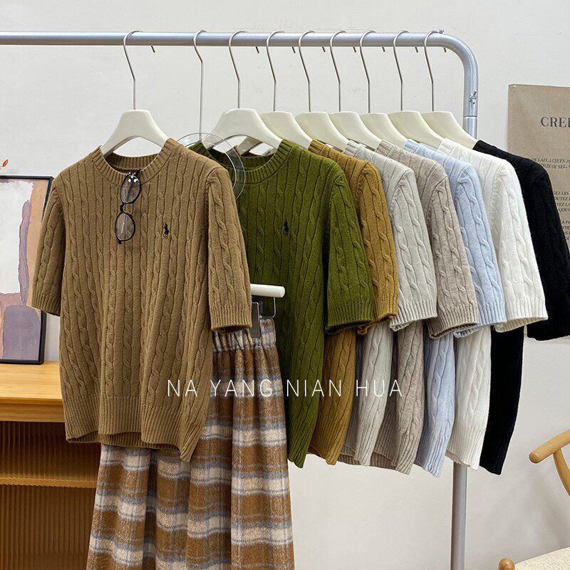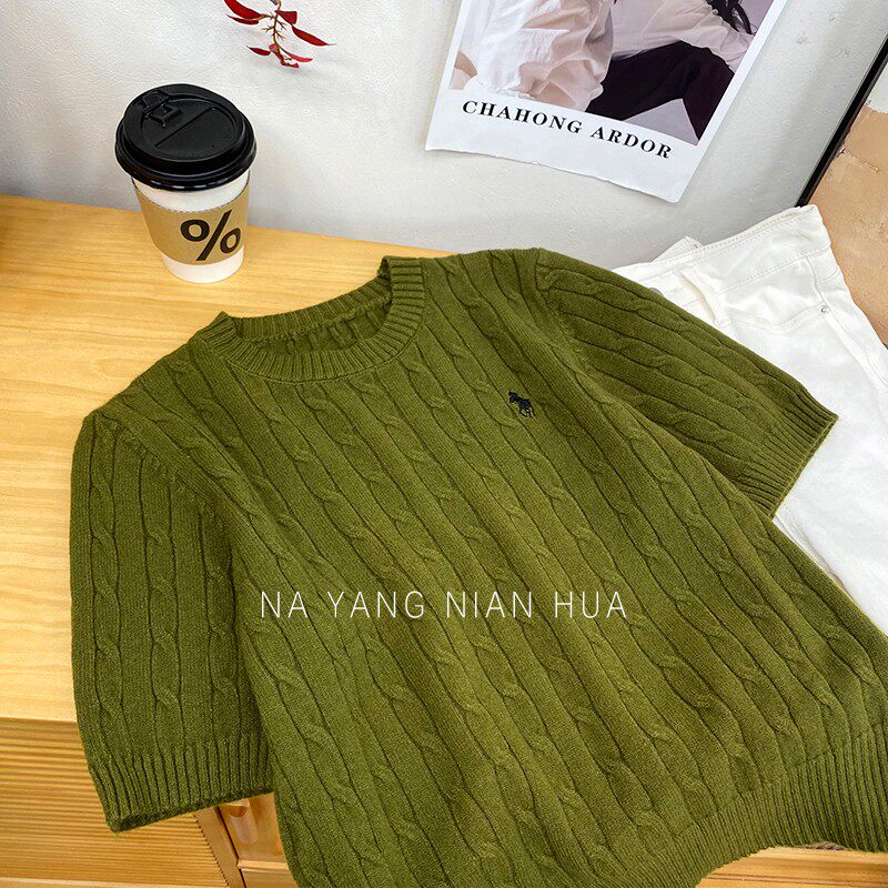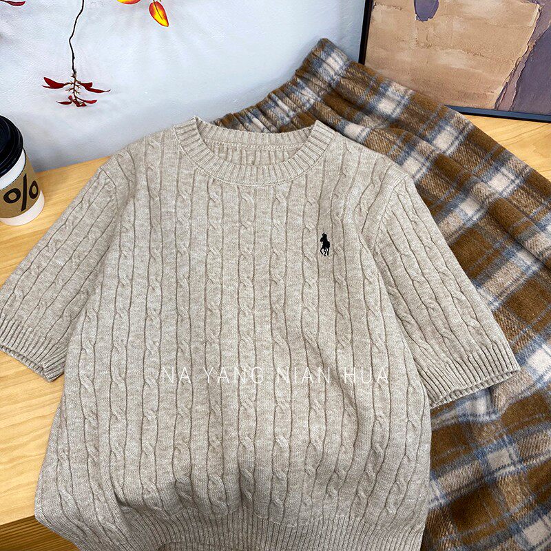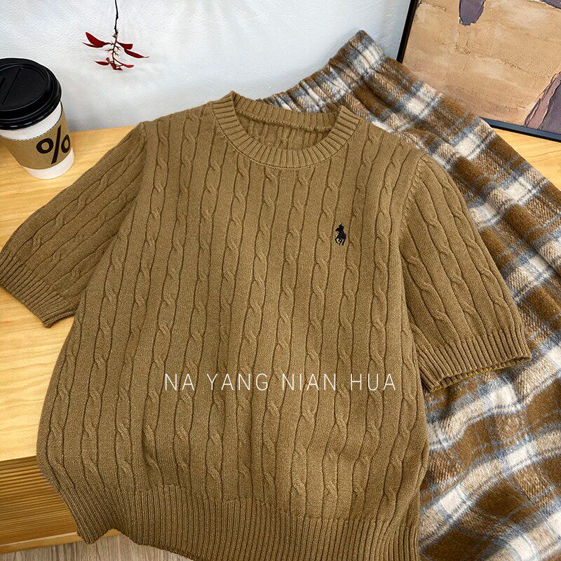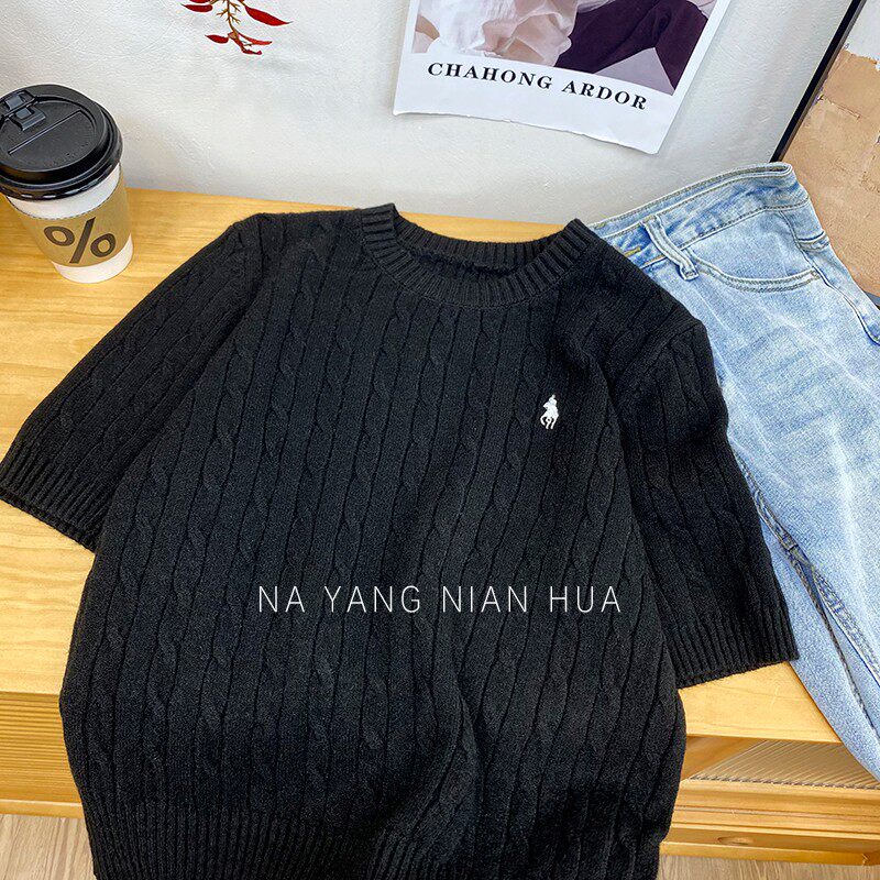 Пони, трикотажный ретро базовый приятный телу свитер, в британском стиле, с вышивкой