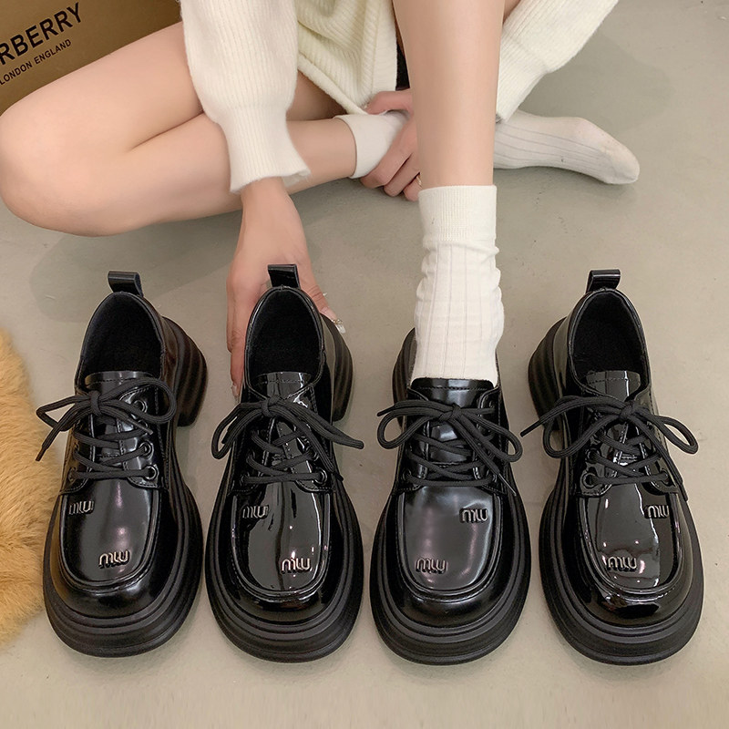 Высокие лоферы, весенняя универсальная черная обувь в английском стиле для кожаной обуви, в британском стиле