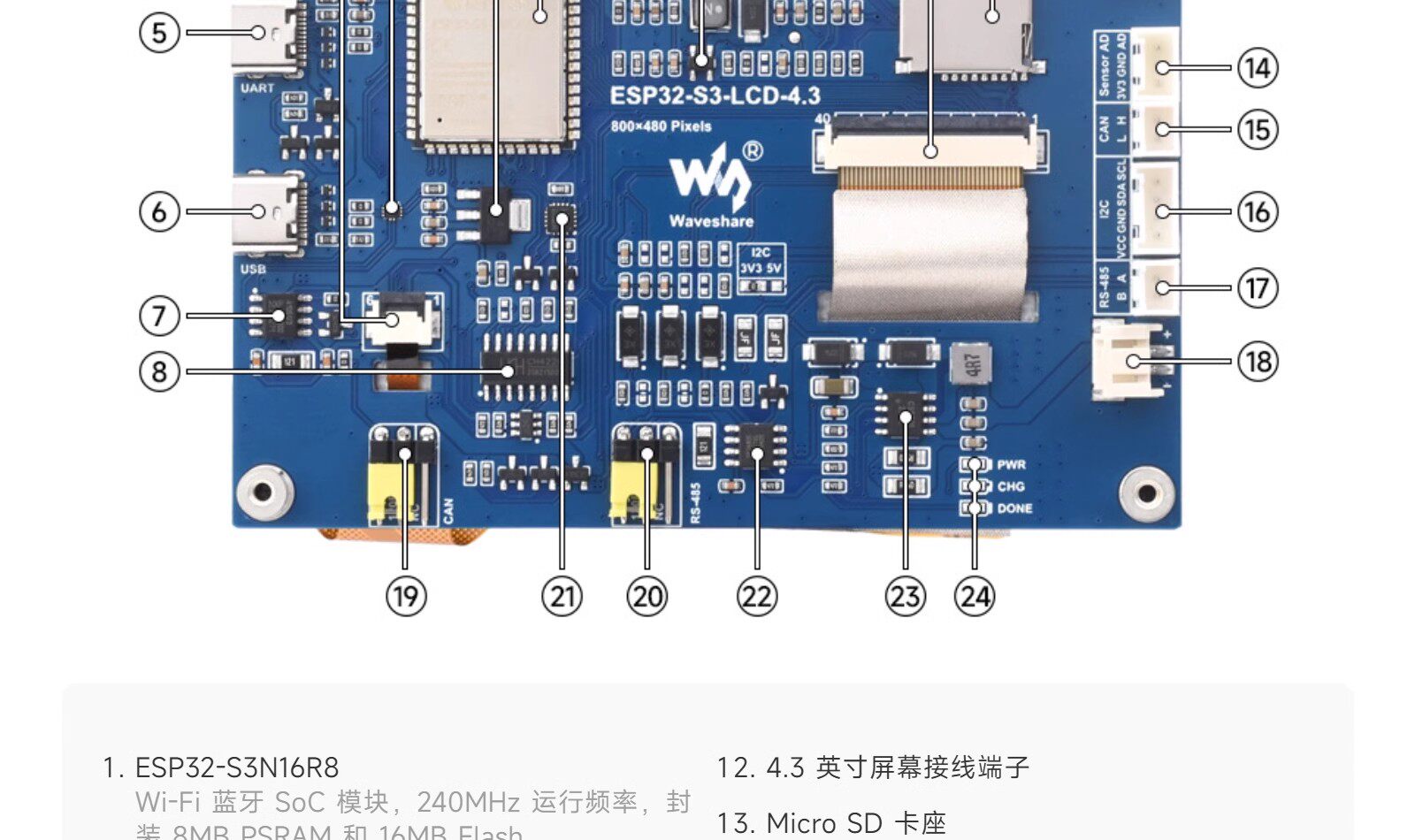 微雪 Плата разработки ESP32-S3 4,3-дюймовый емкостный сенсорный экран HMI человеко-машинный интерфейс/разработка графической библиотеки LVGL