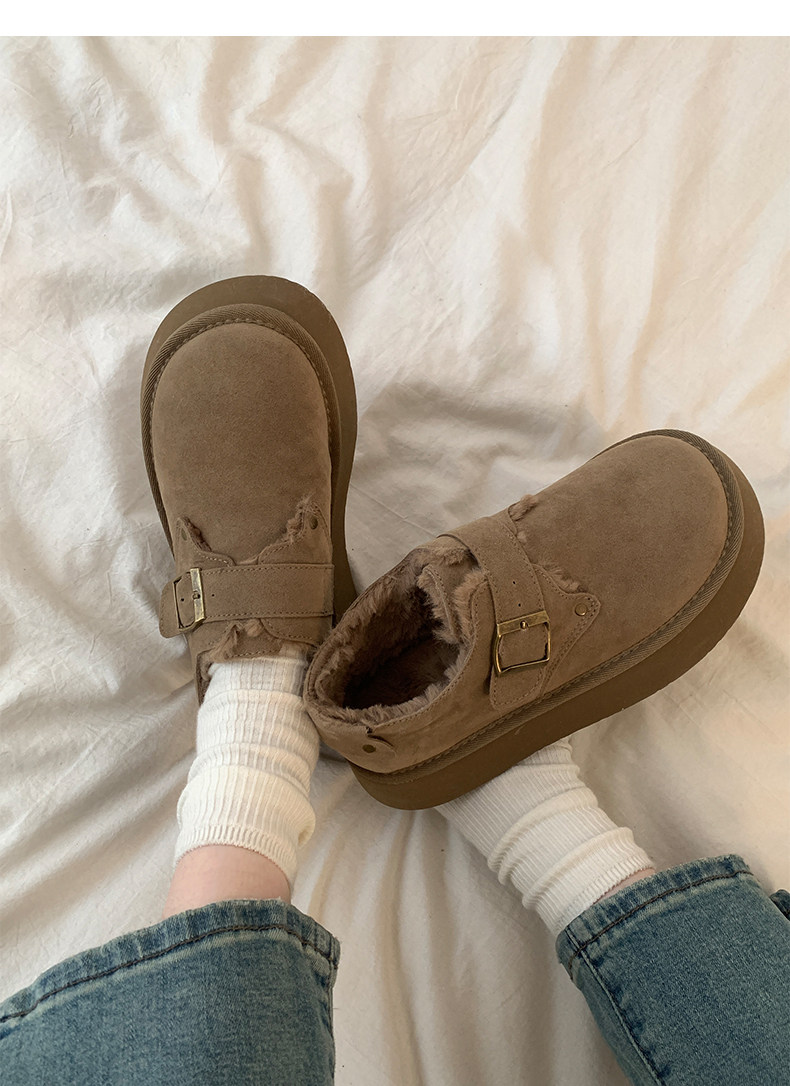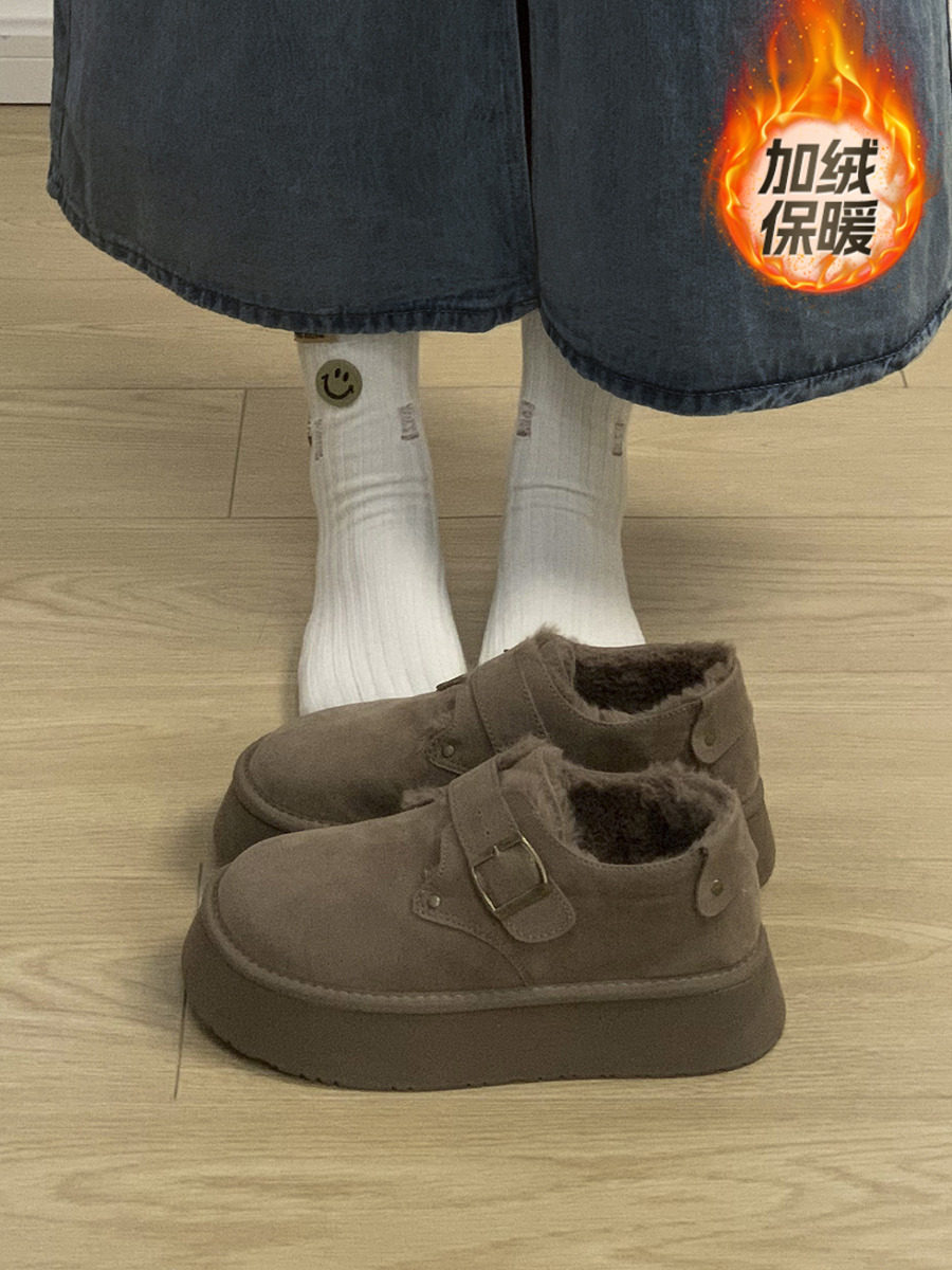 南在南方 Коричневая удерживающая тепло зимняя обувь на платформе, утепленные ботинки