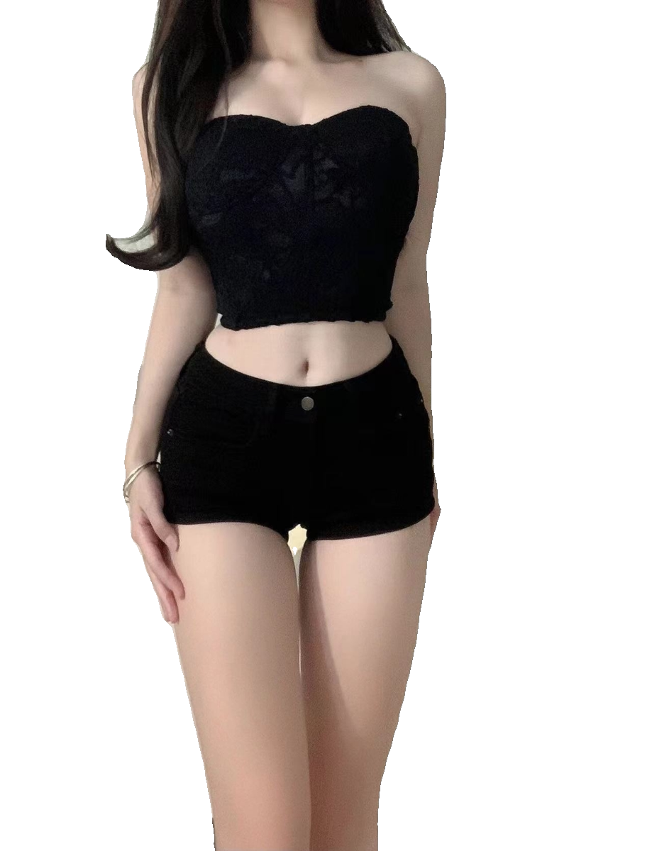 Черная джинсовая юбка, шорты, летние штаны, в обтяжку, с акцентом на бедрах