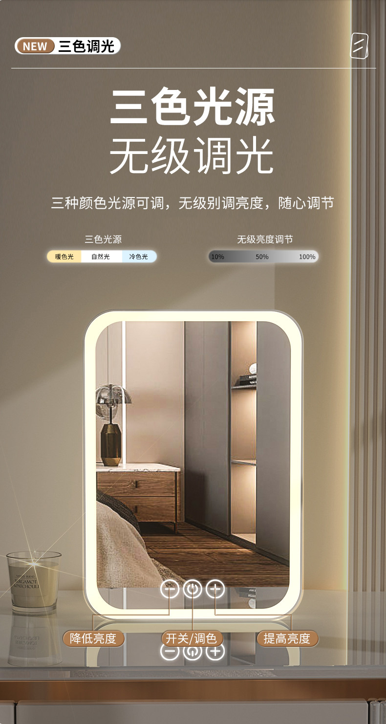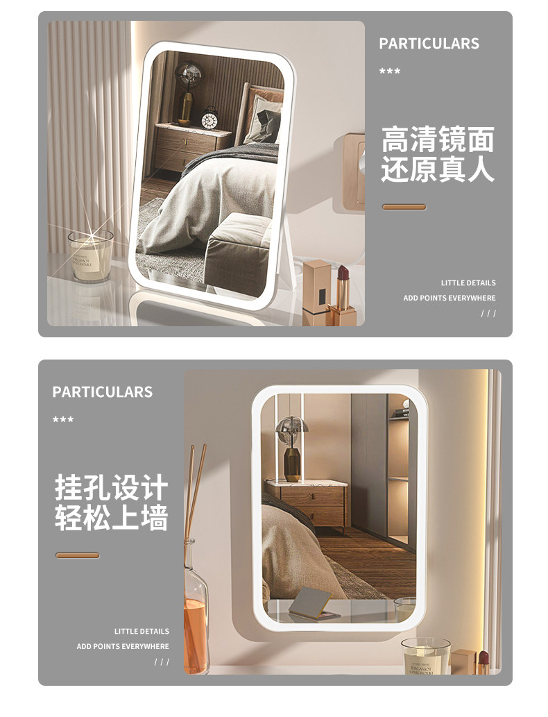 Make -Up зеркало светодиод с фонарями домашнее зеркало Студенческое общежитие Офис офис настольный настольный настольный зеркал портативный ультра -высокий
