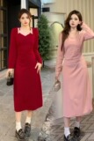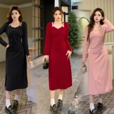 Демисезонный лонгслив, базовое платье, подтяжки, длинная юбка, большой размер, с акцентом на бедрах