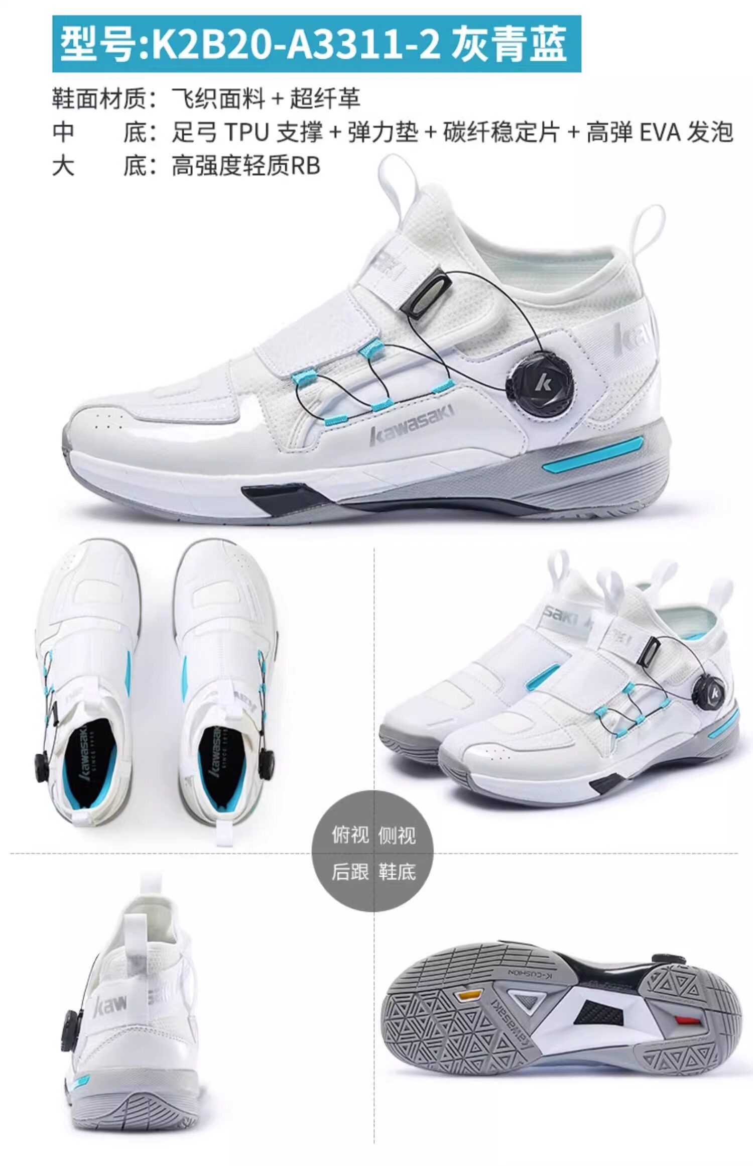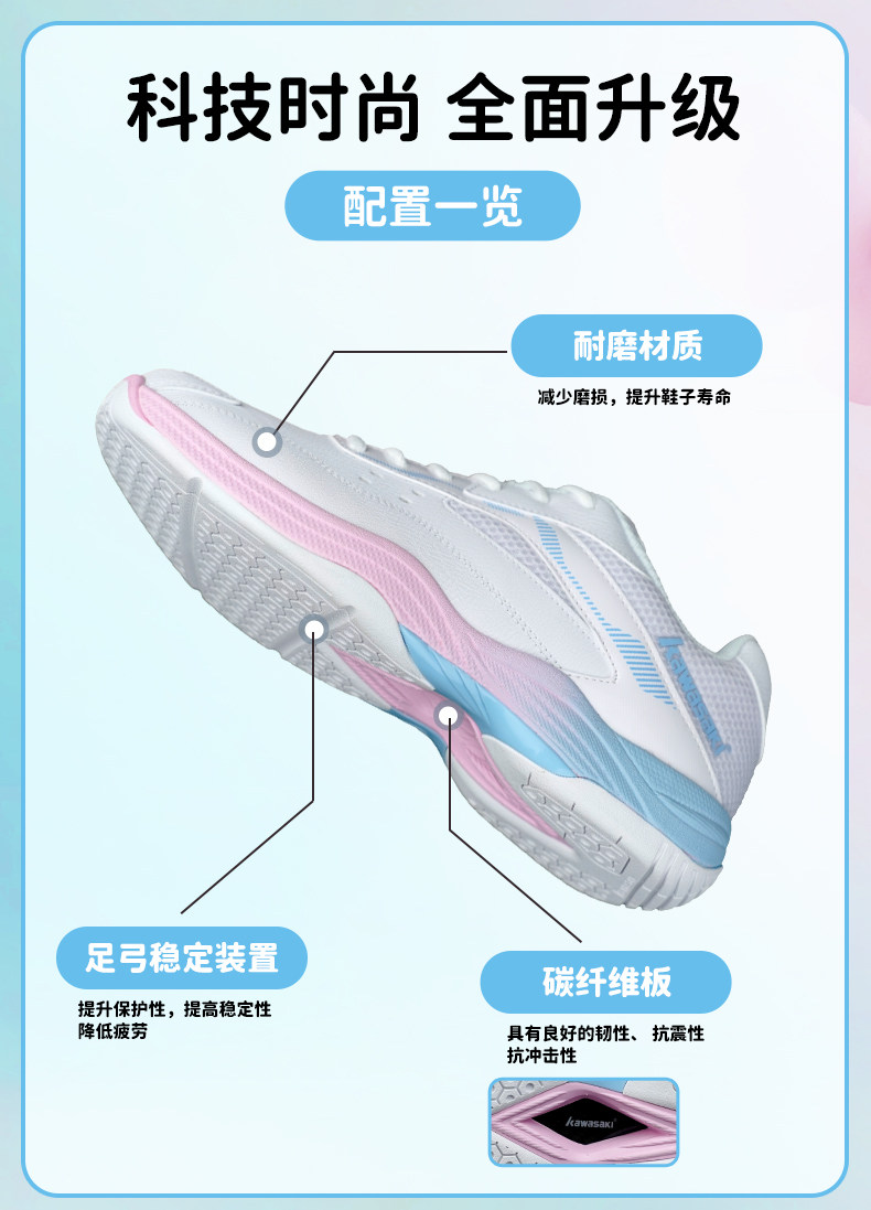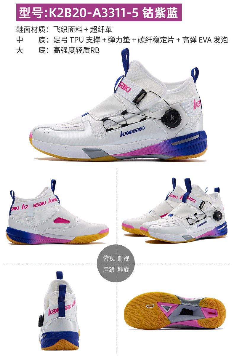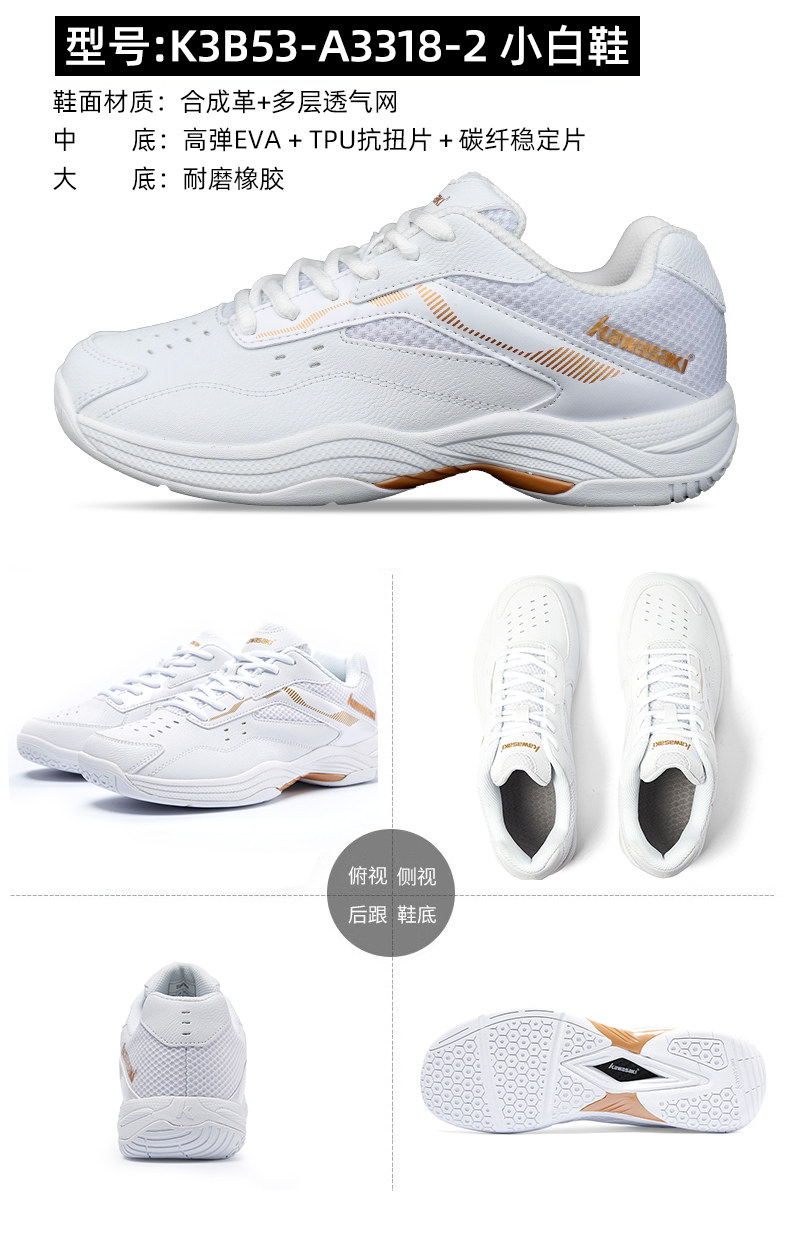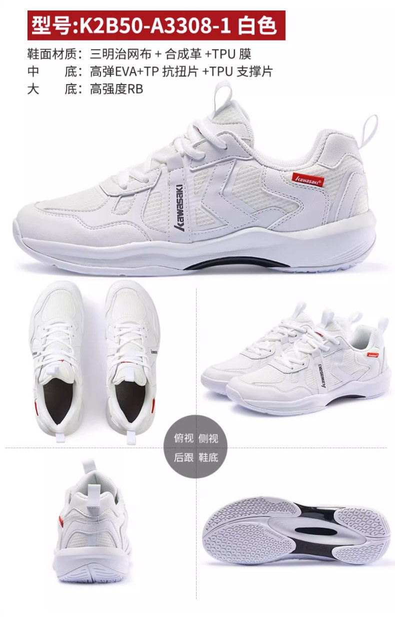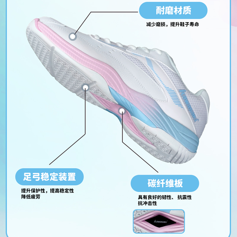 Kawasaki, хлопковая белая обувь для бадминтона подходит для мужчин и женщин, нескользящая амортизирующая спортивная углеродная пластина