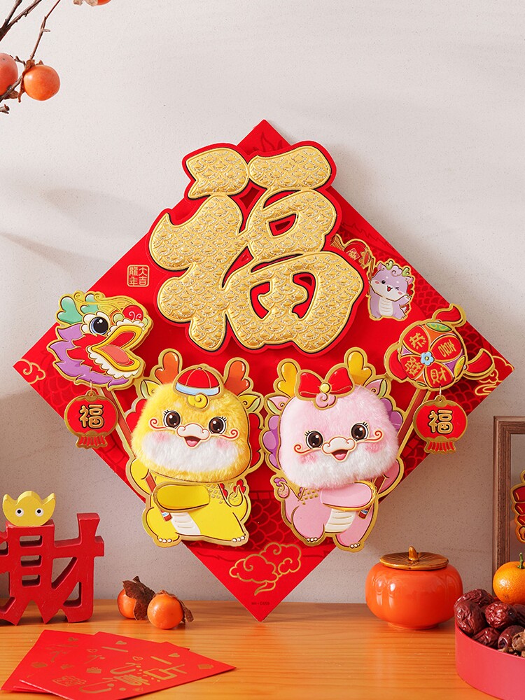 Fuzi Gate Sticker Spring Festival Mao Mao Новый год украшения Новый год Праздничный Fook Patch Self, вступая в ворота 2024 Dragon Three -Dimensional