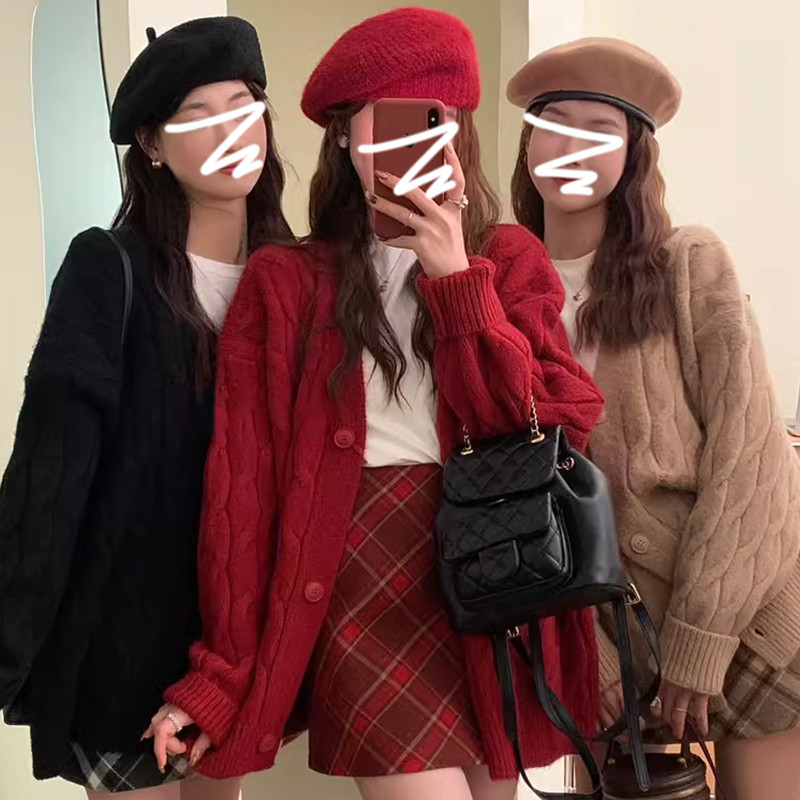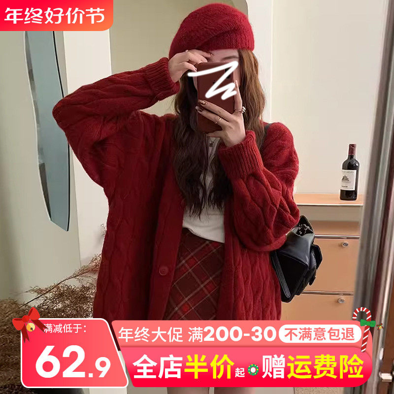 Красный оберег на день рождения, кардиган, свитер, демисезонная куртка, оверсайз