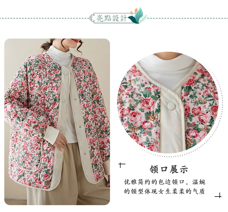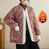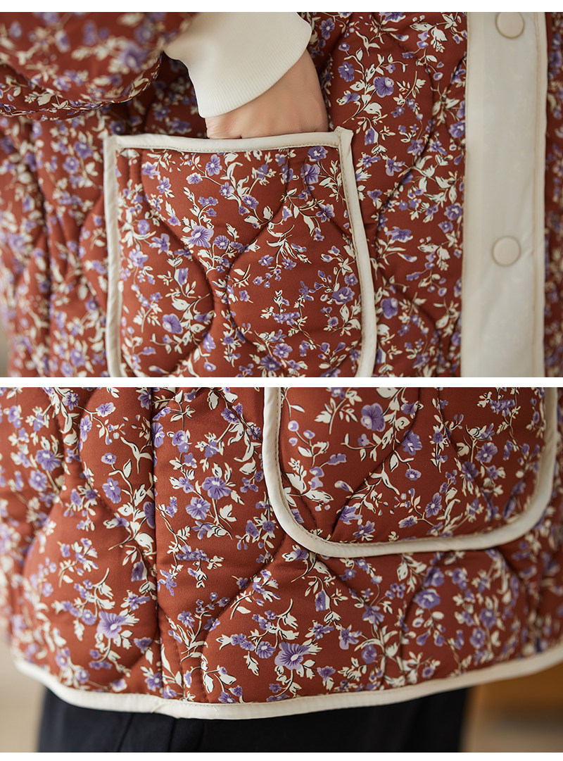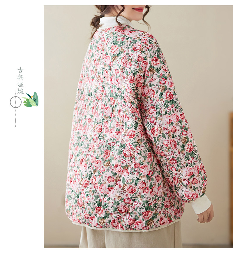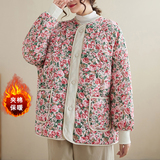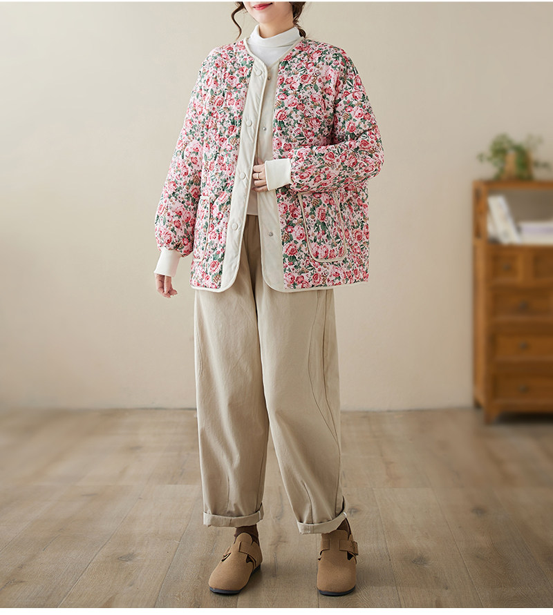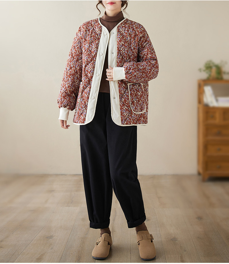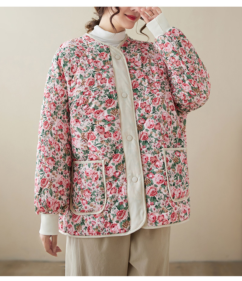 Ретро стеганая удерживающая тепло куртка с круглым воротником, лонгслив, пуховик, цветочный принт, большой размер