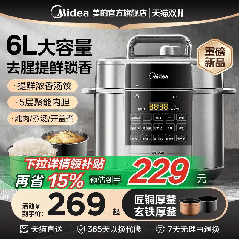 Электрическая скороварка Midea, бытовая умная электрическая скороварка на два галлона, 6 л, многофункциональная, полностью автоматическая рисоварка