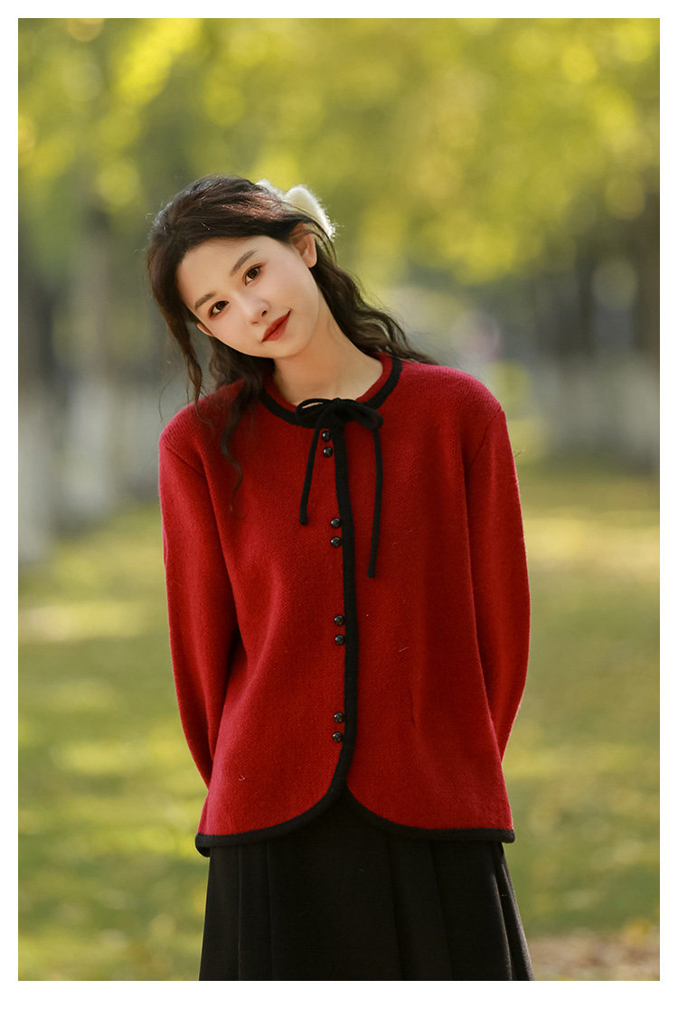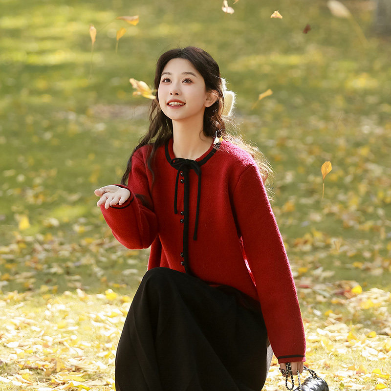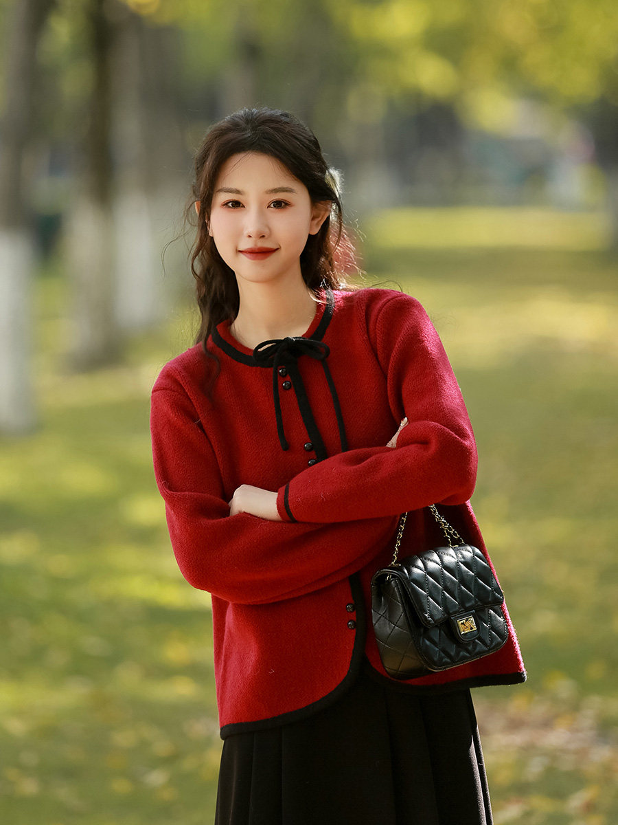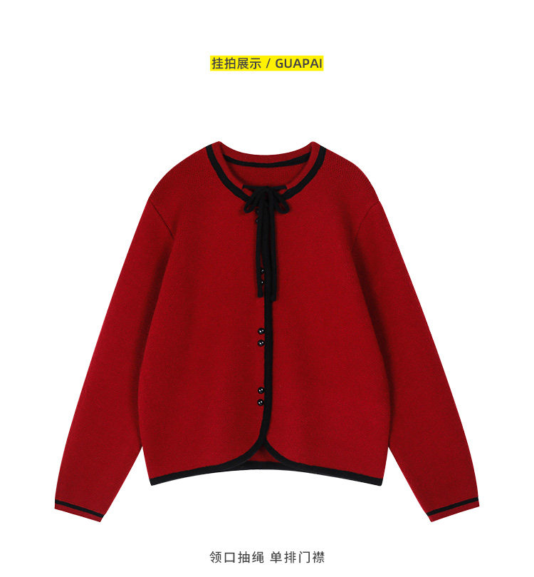 Красный короткий свитер, демисезонный кардиган, демисезонная трикотажная куртка, в стиле Шанель, коллекция 2023, подходит для подростков