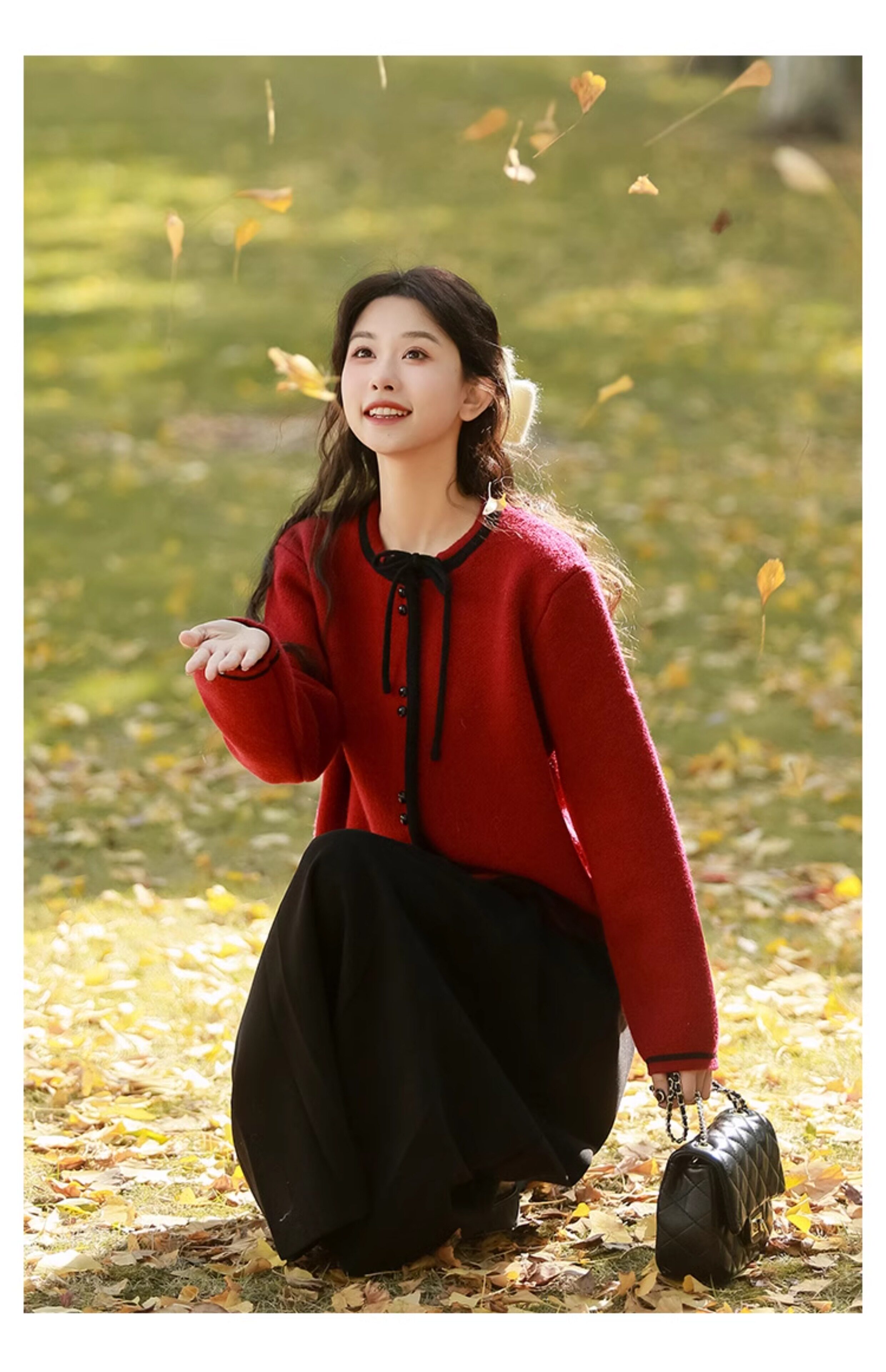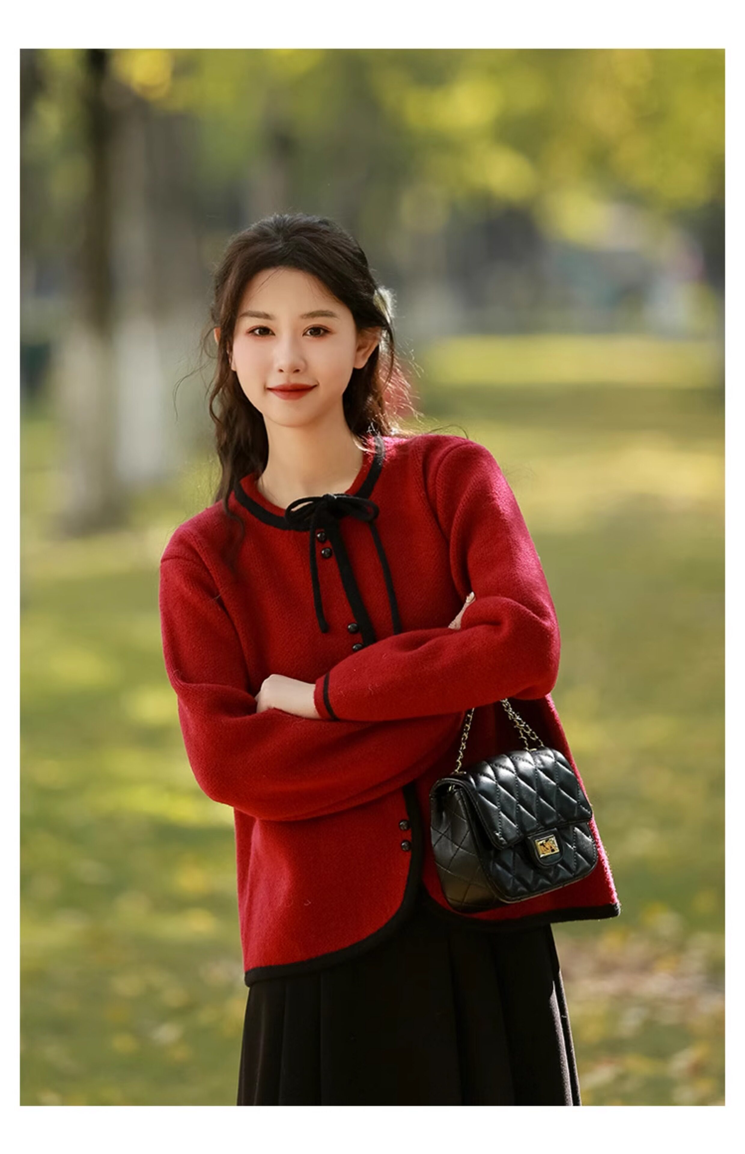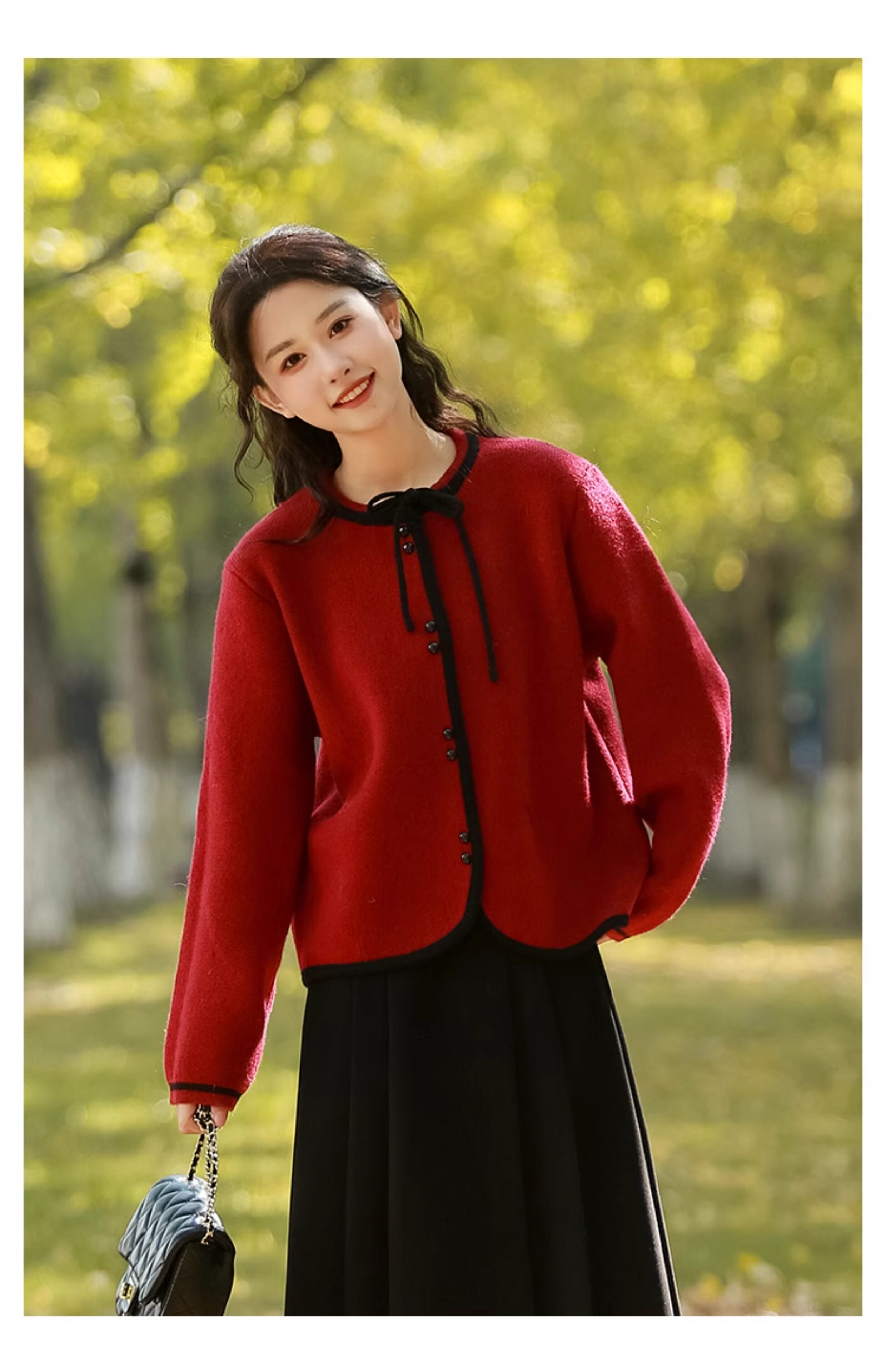 Красный короткий свитер, демисезонный кардиган, демисезонная трикотажная куртка, в стиле Шанель, коллекция 2023, подходит для подростков