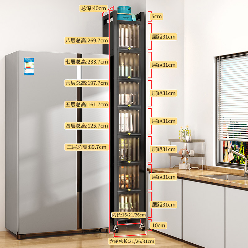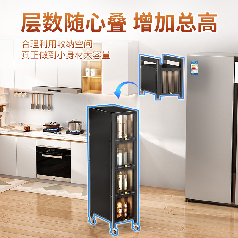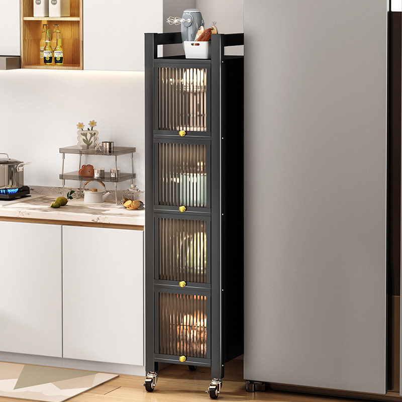 Кухонная стойка для хранения на пол многослойного узкого стиля ультра-бокового зазора многофункциональный шкаф для хранения дверей с хранением дверей с хранением двери