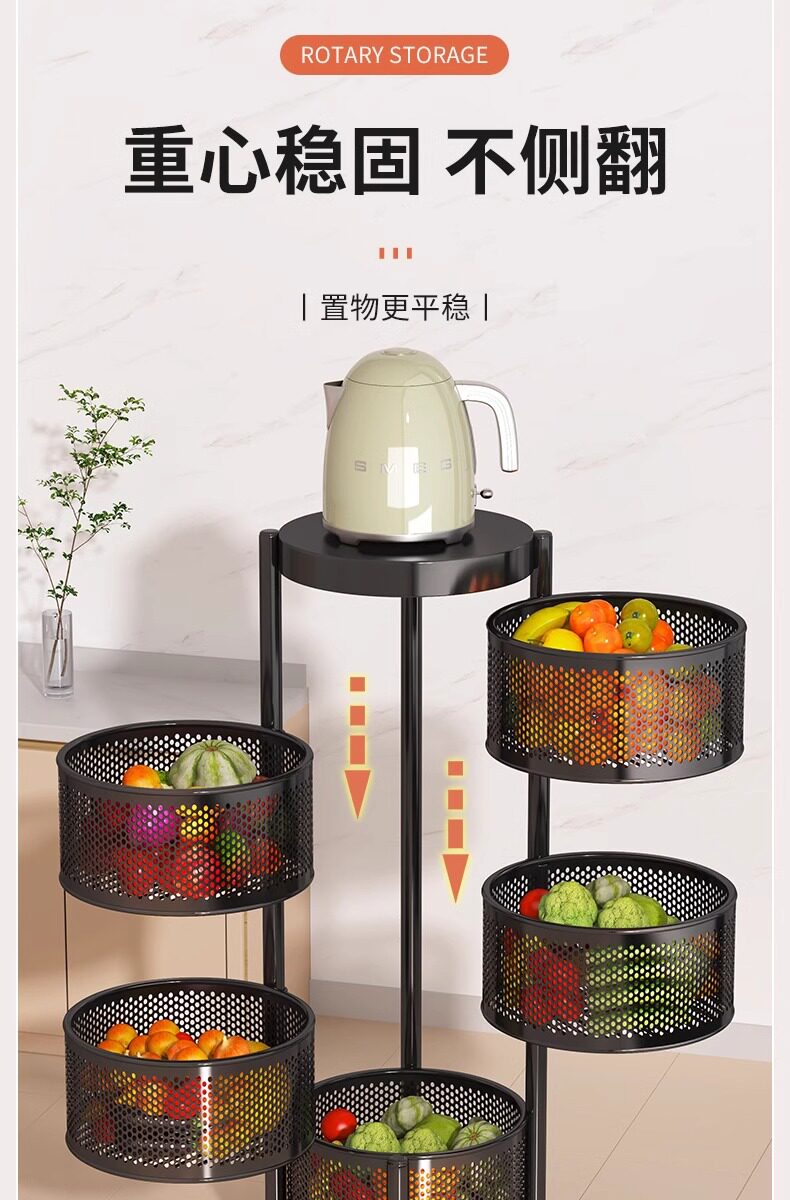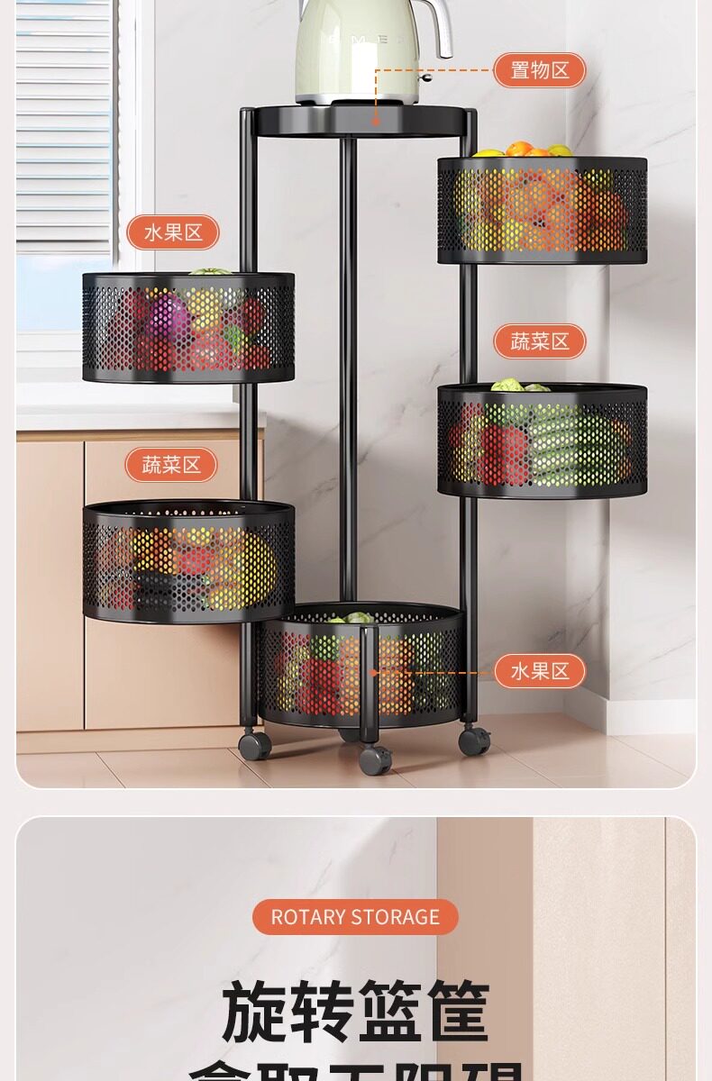 Кухонная стойка многослойная стойка для хранения. Домохозяйные вращающиеся фрукты и овощные баскет