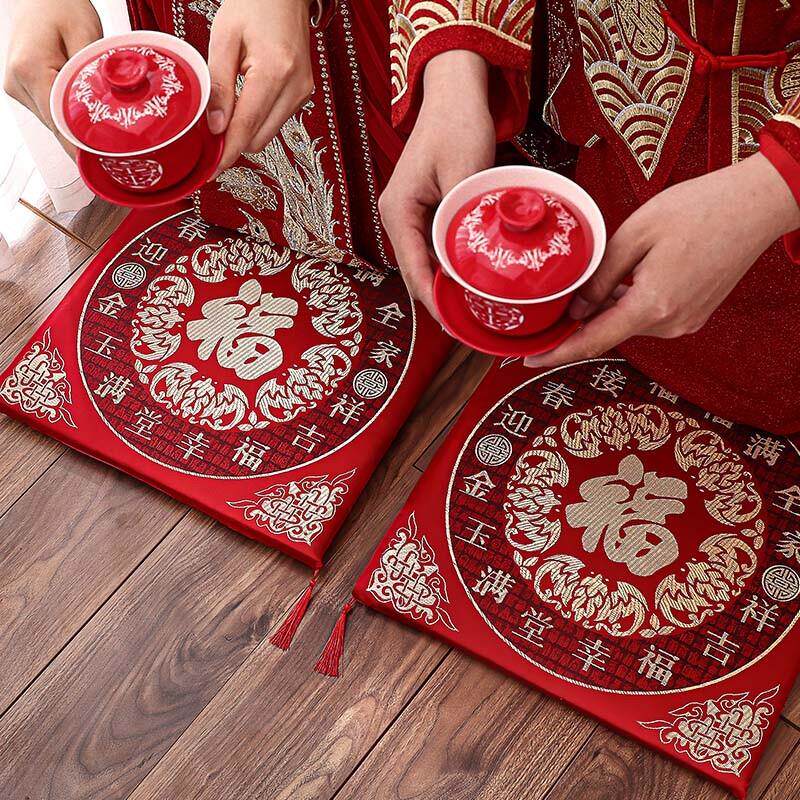Свадебная на коленях на коленях, чтобы уважать чай красную пару подушек для головы мотыга, невест, менять рот, чтобы сидеть и благословения, на колени и поклоняться припасаниям на прокладках