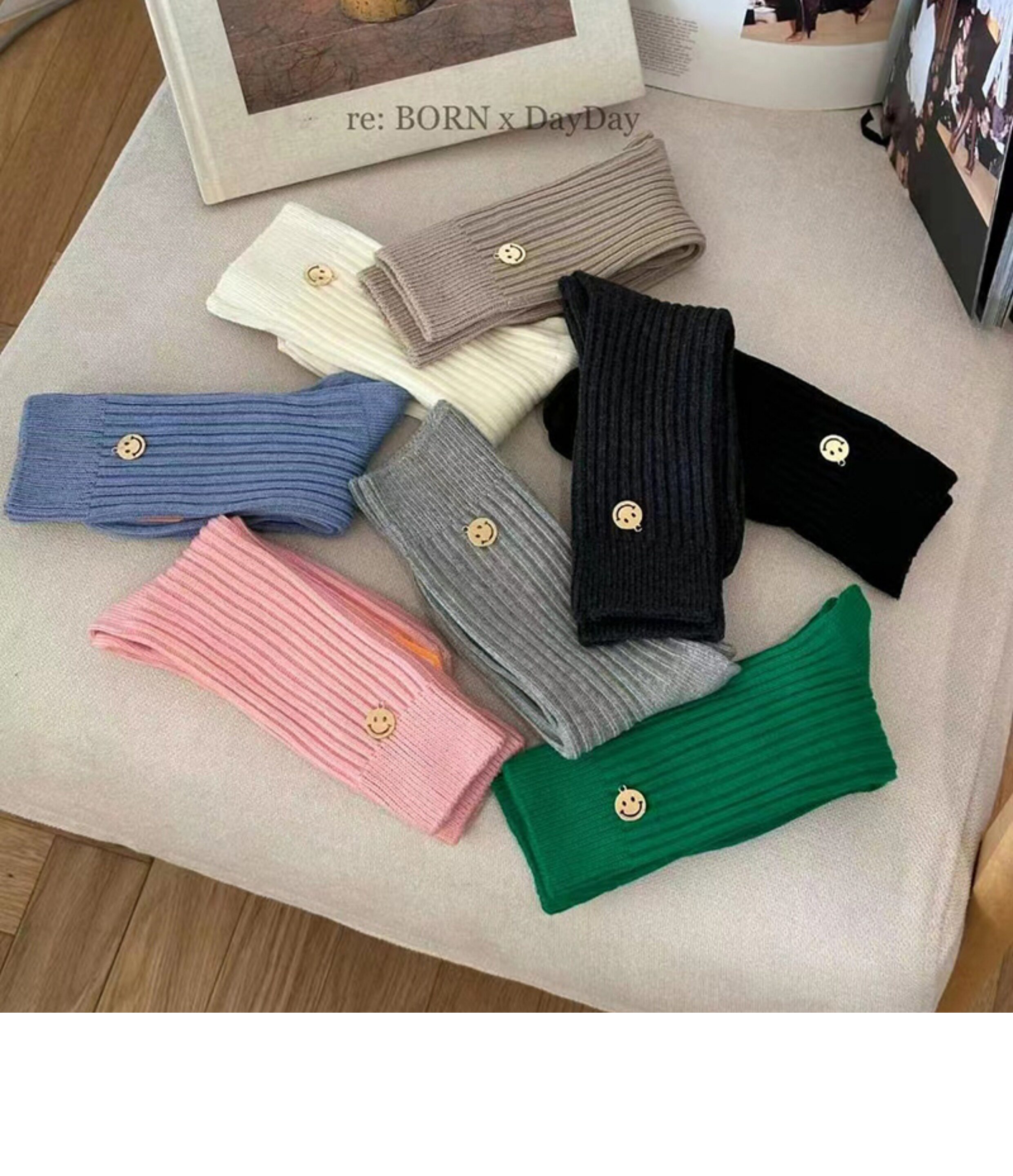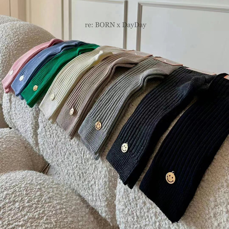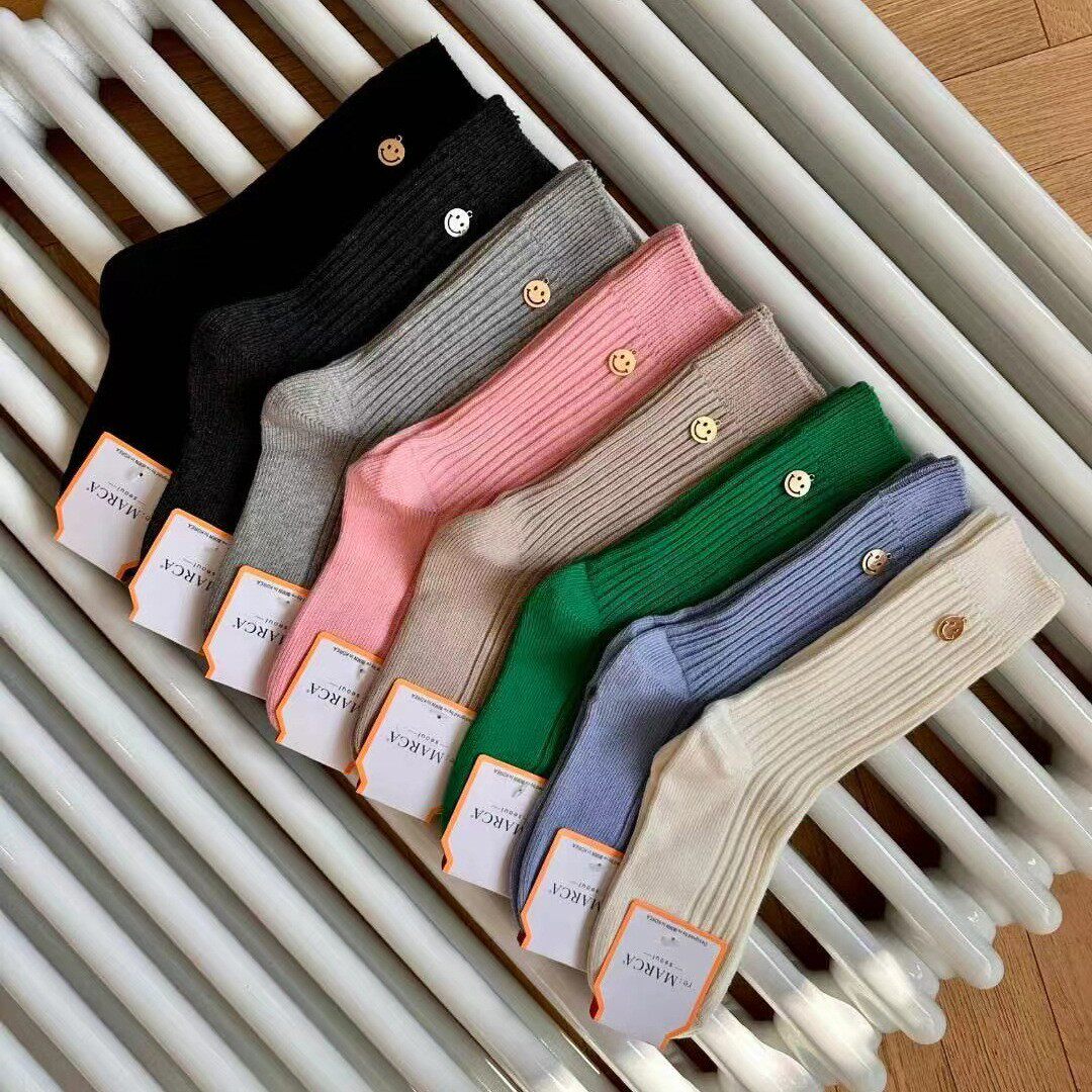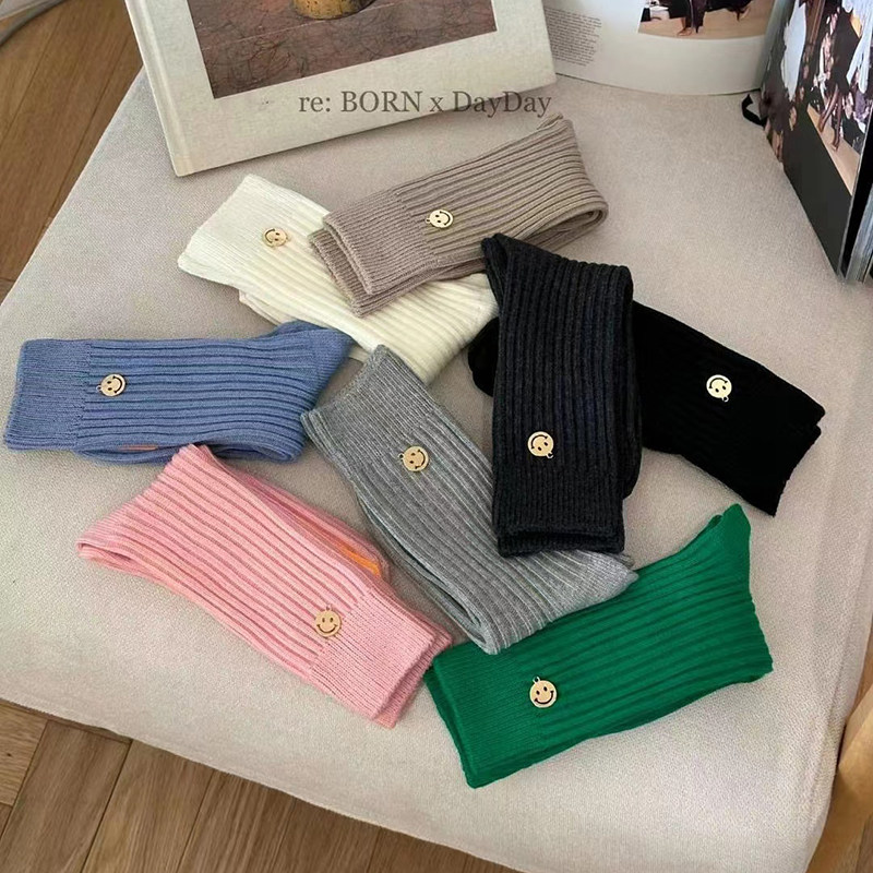 Модные женские носки reBORN, металлические маленькие носки со смайликами, корейские импортные осенние и зимние новые однотонные носки для девочек с резьбой