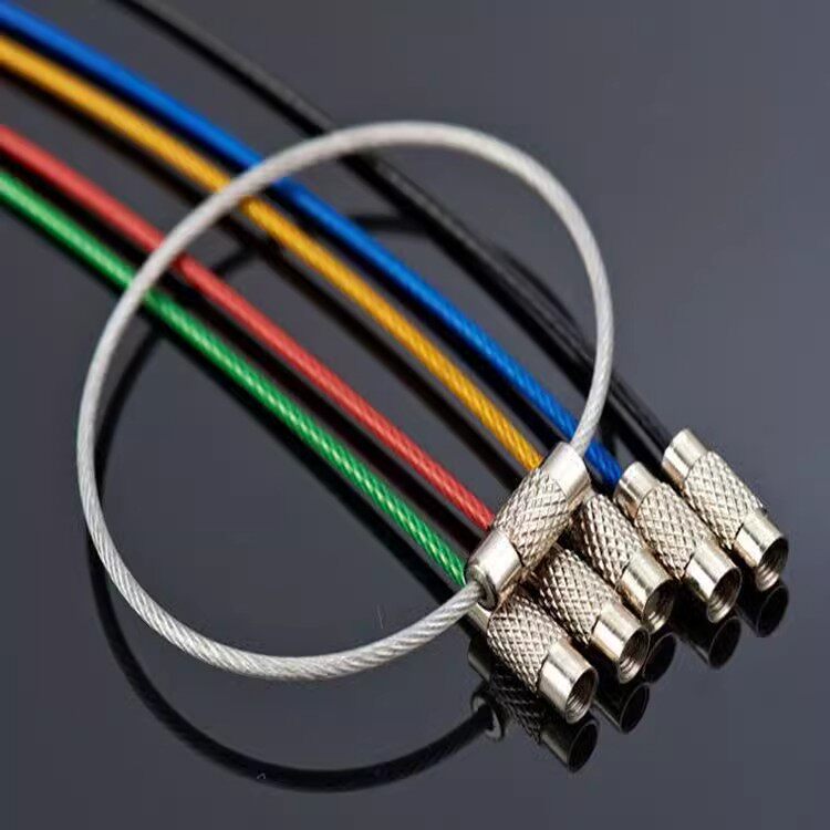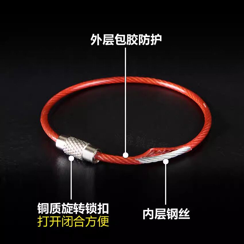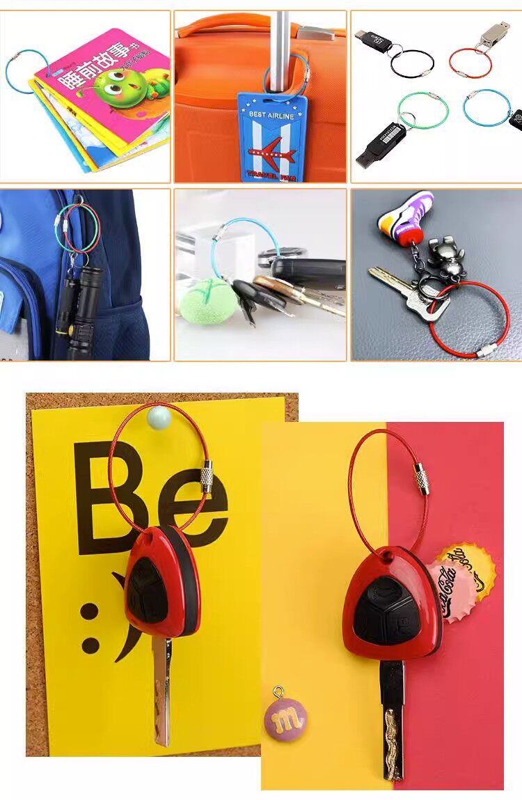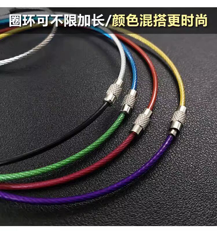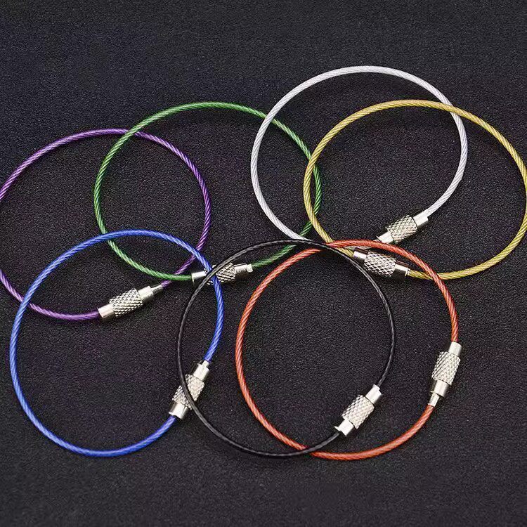 Стальная проволка, шелковые нитки, брелок для ключей с застежкой из нержавеющей стали