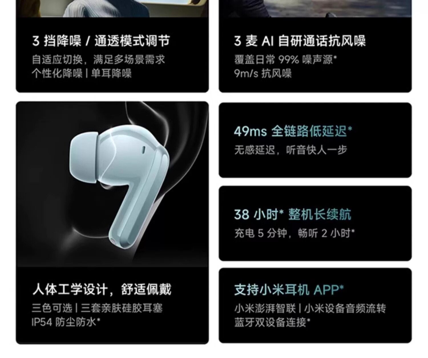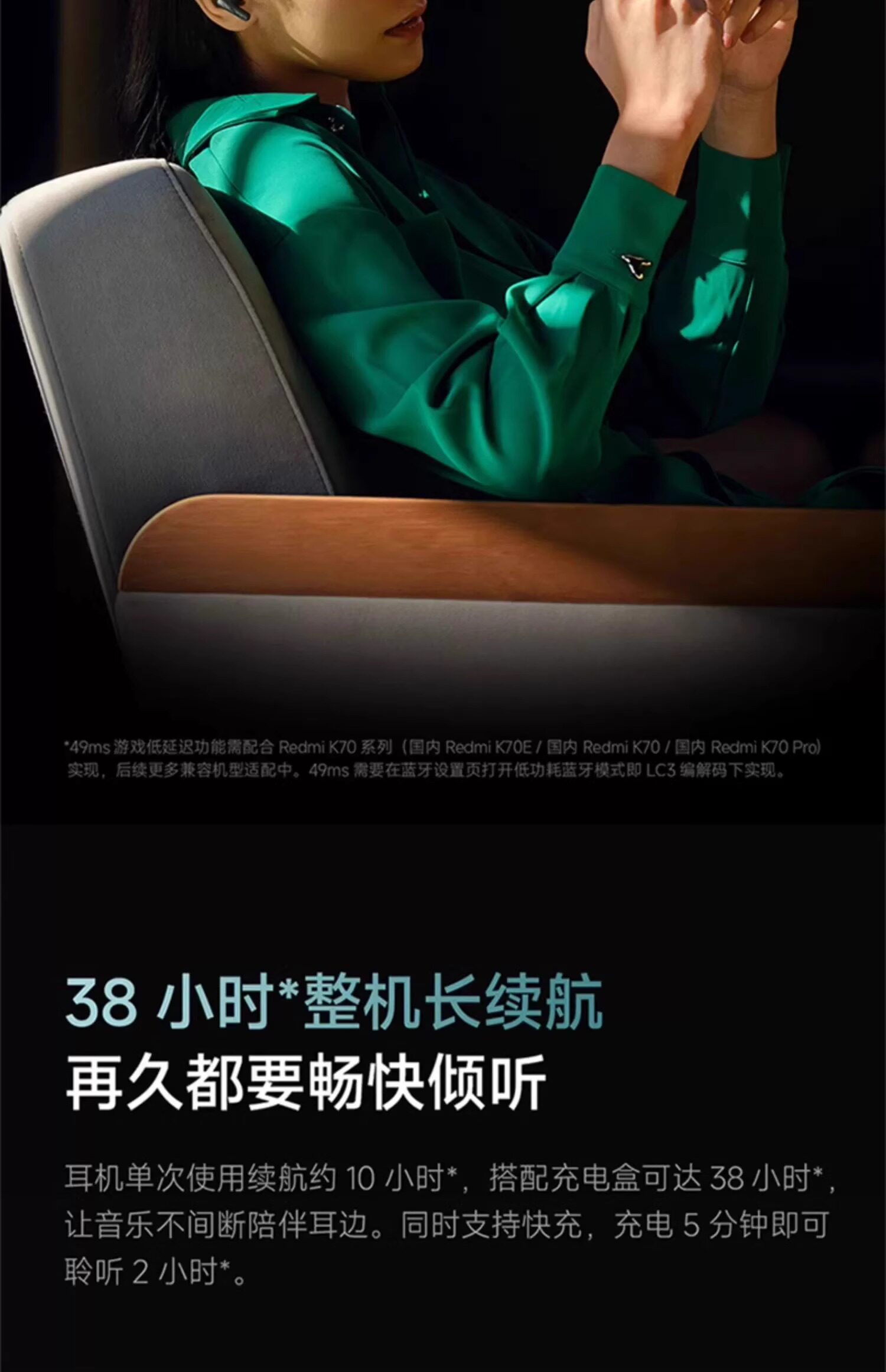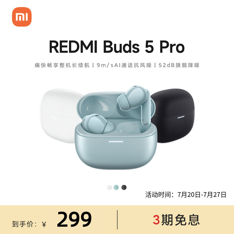 Xiaomi Redmibuds5pro Redmi Беспроводная линия Bluetooth Hearset 52db/4 кГц флагманский снижение шума 49 мс низкая задержка