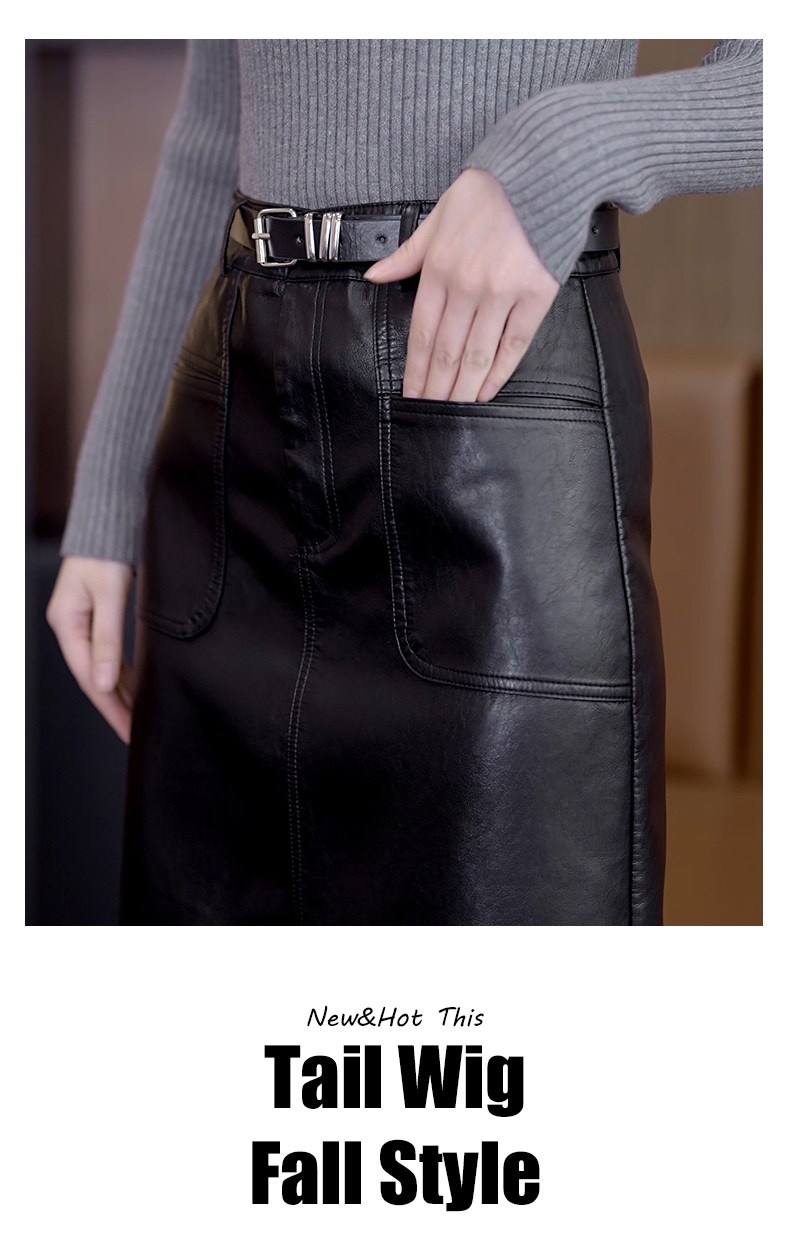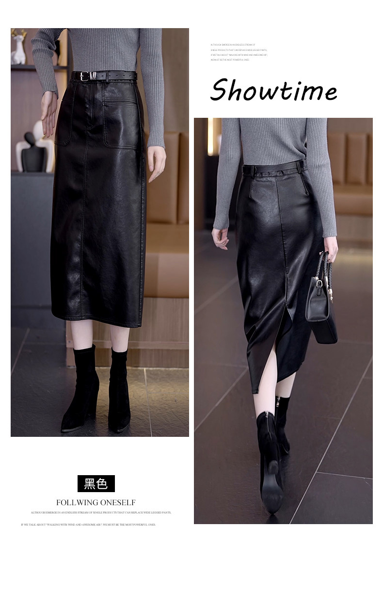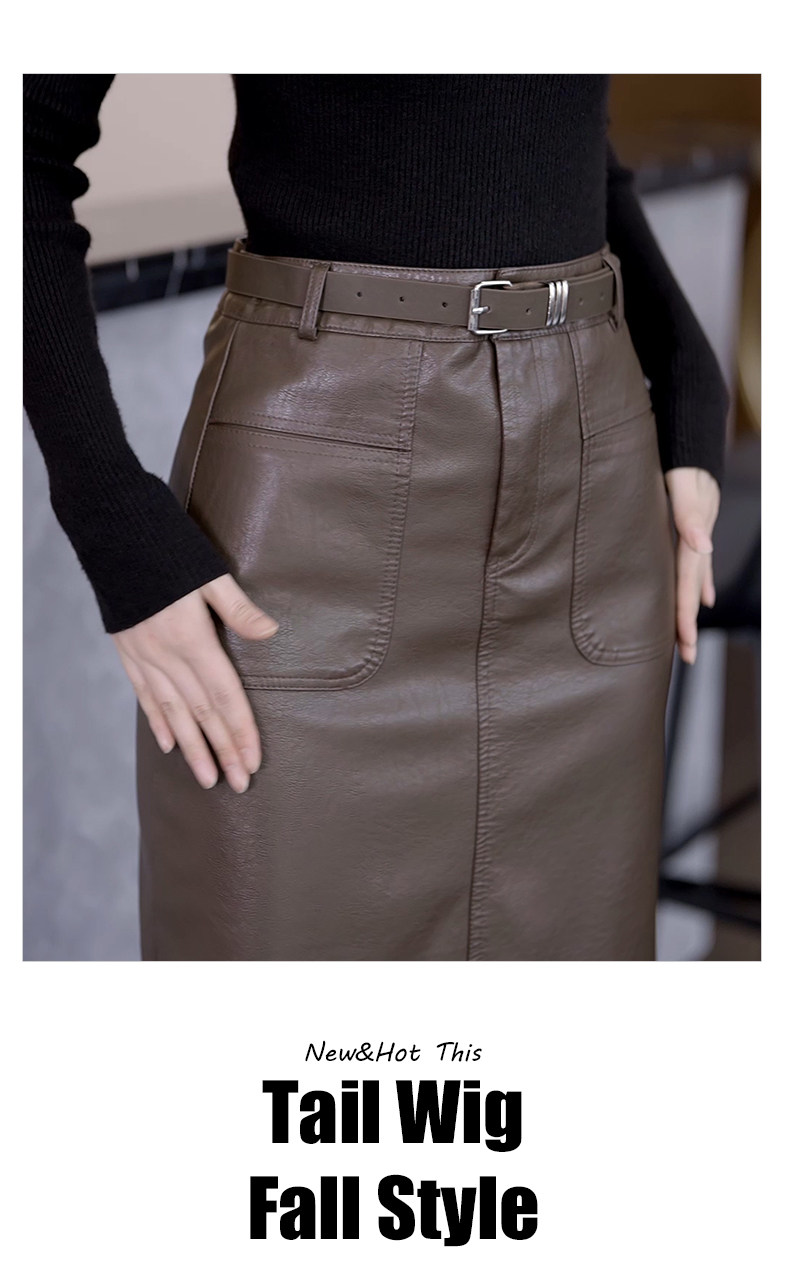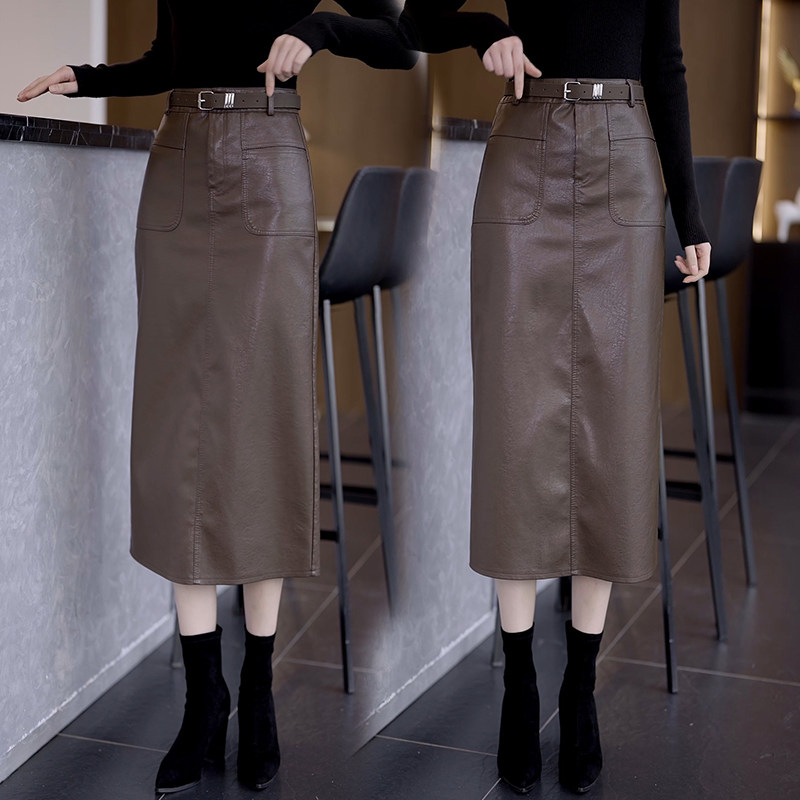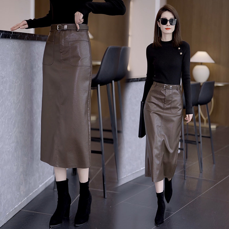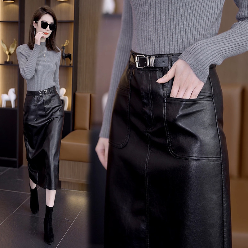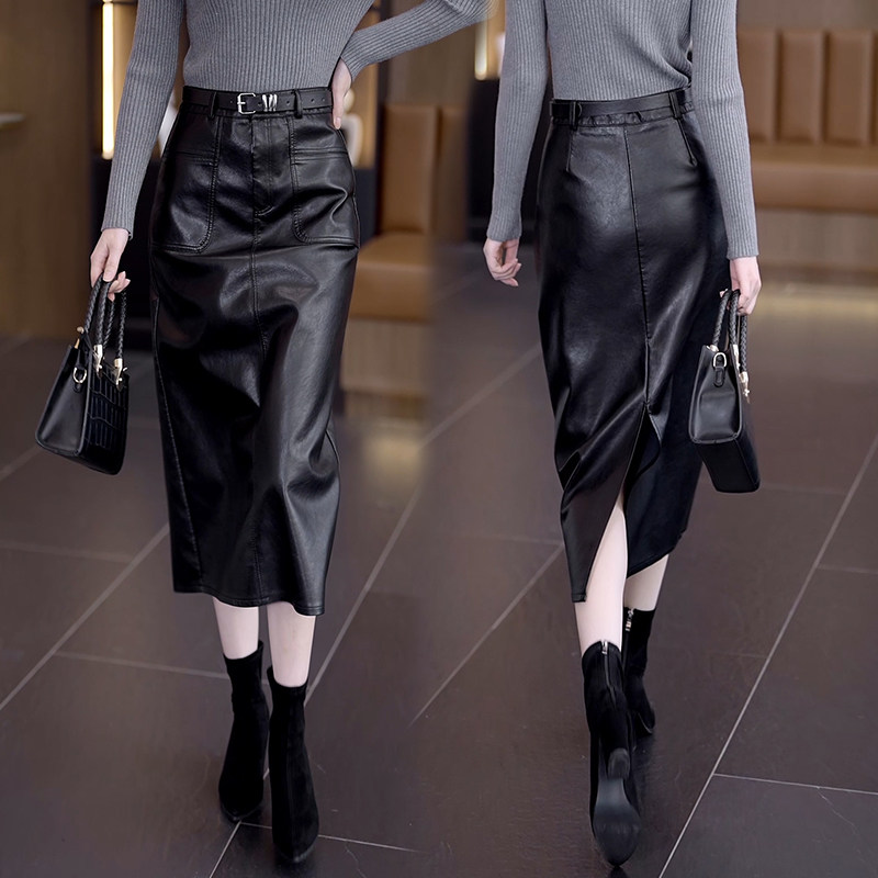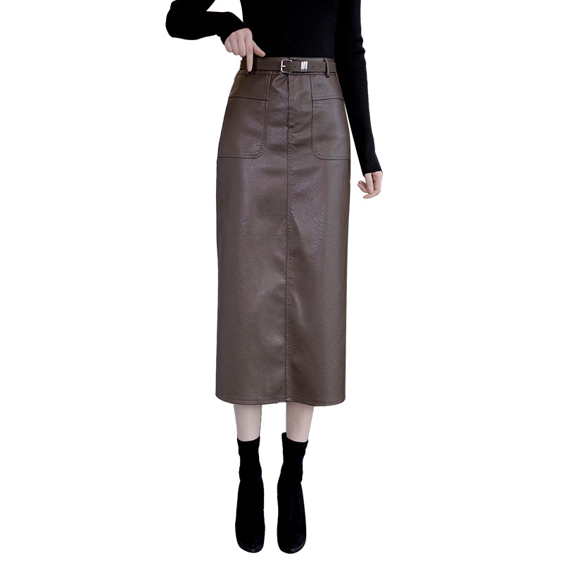 Осенняя демисезонная полиуретановая длинная юбка, высокая талия, свободный прямой крой, с акцентом на бедрах