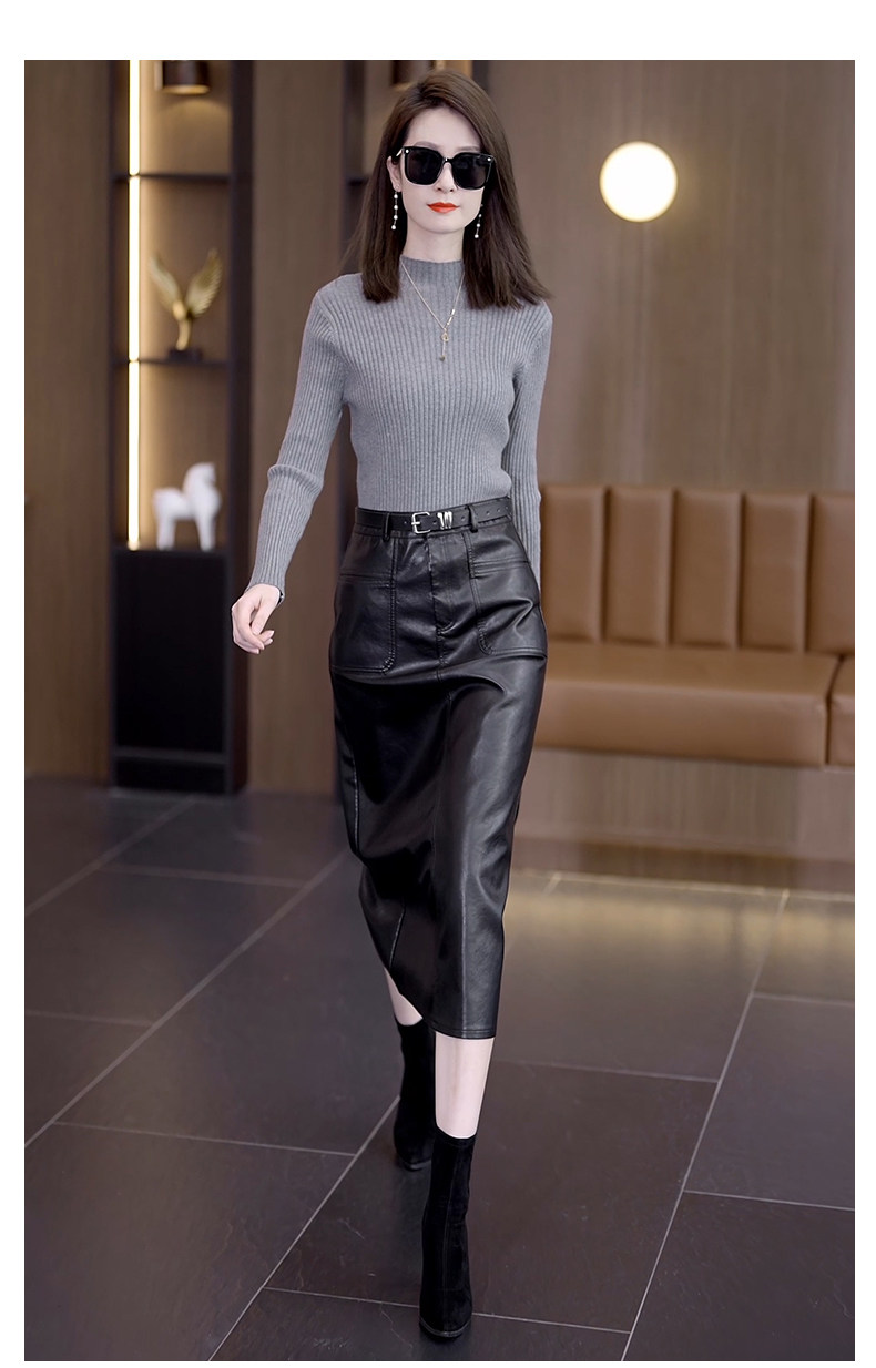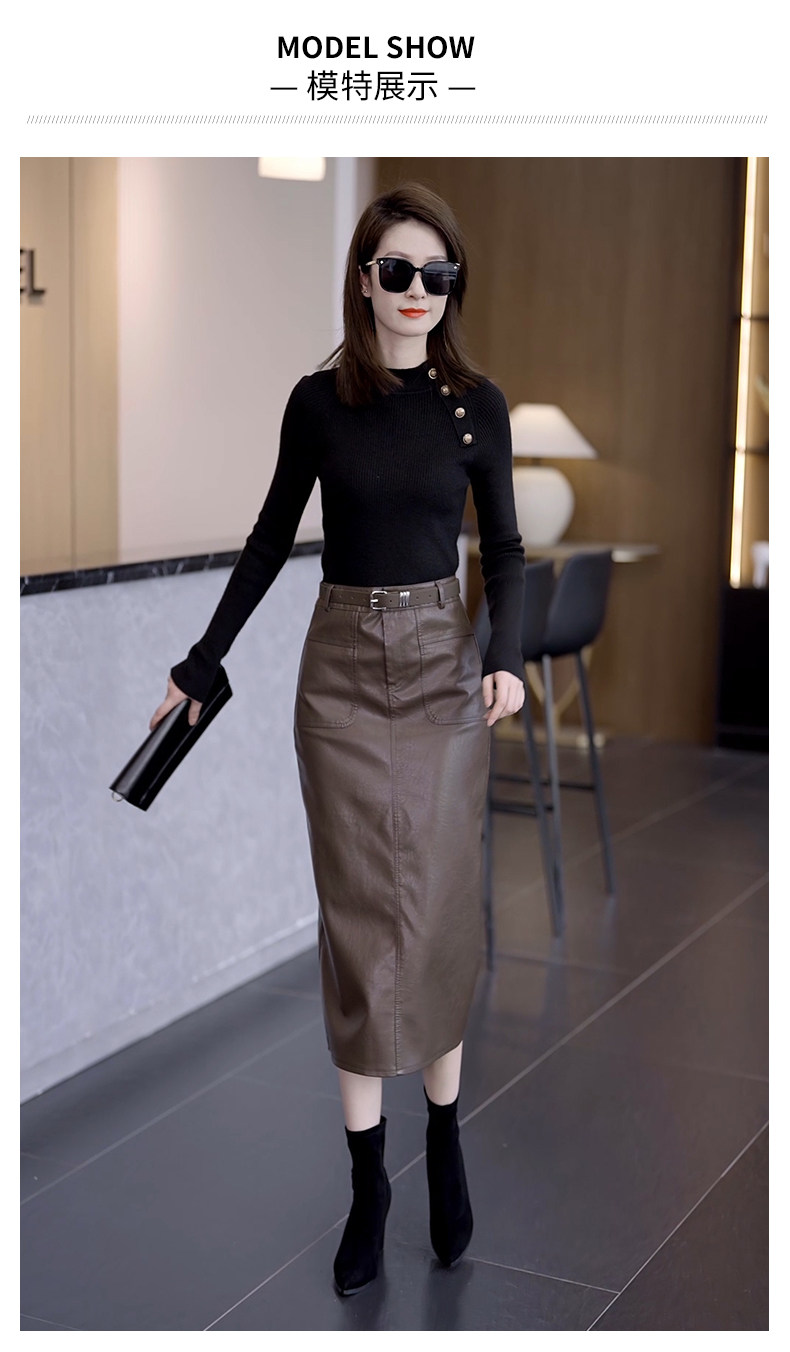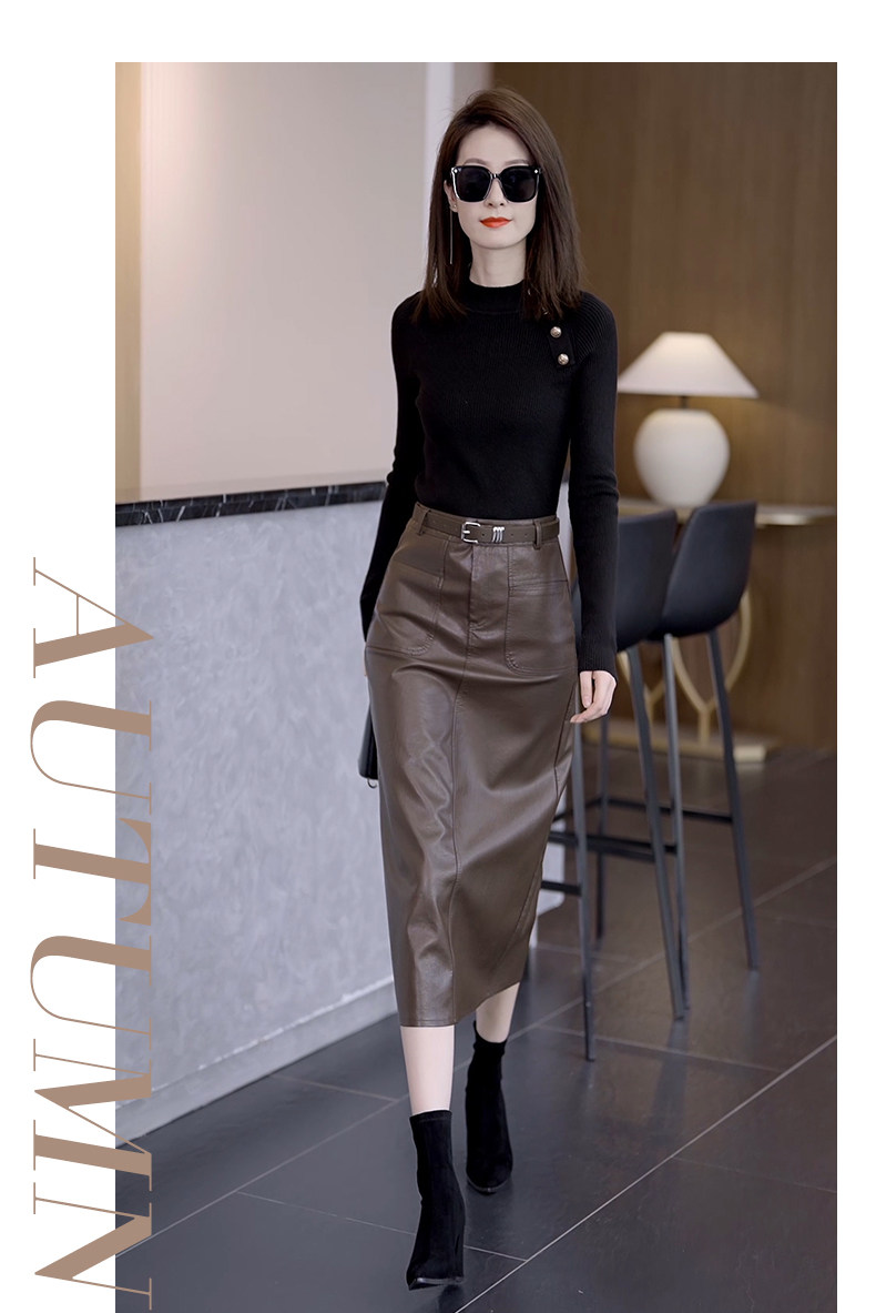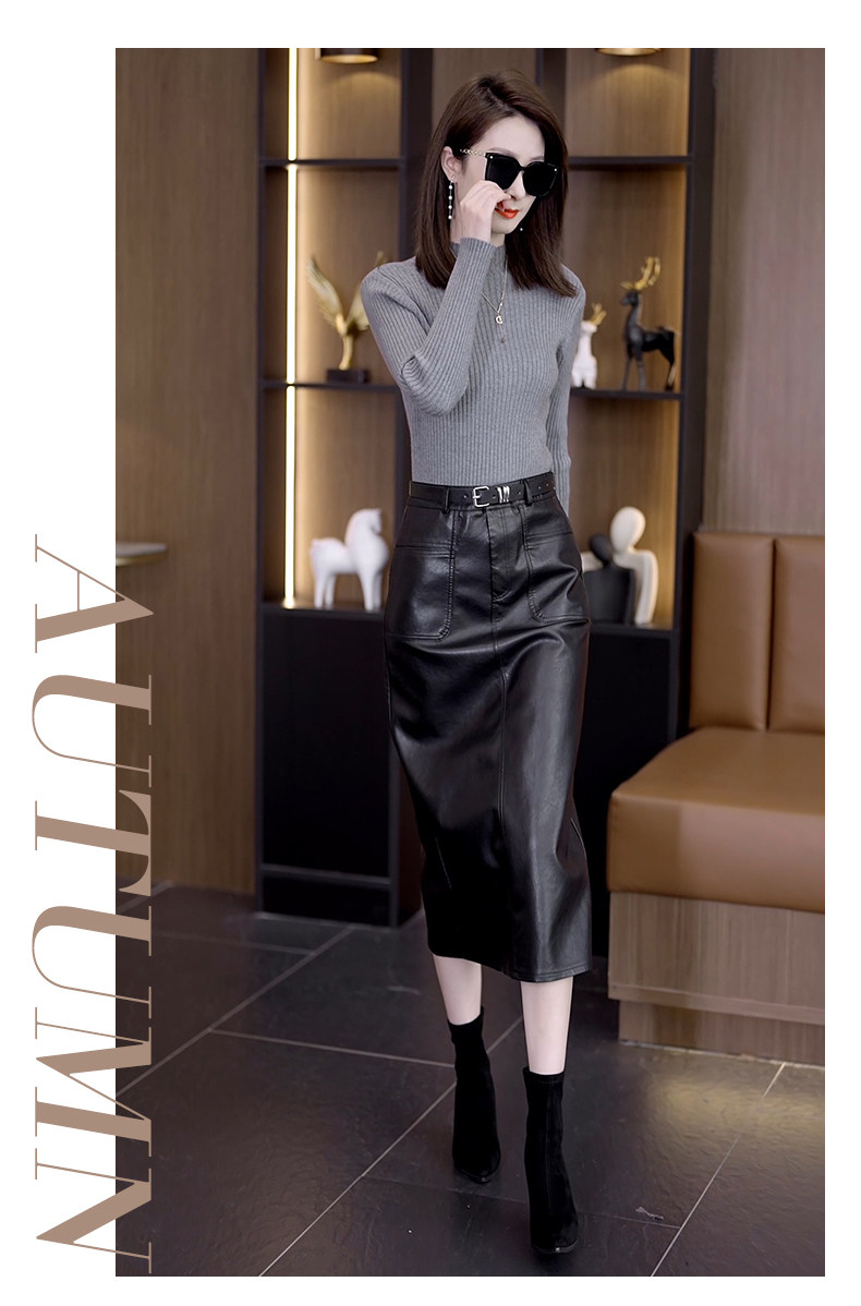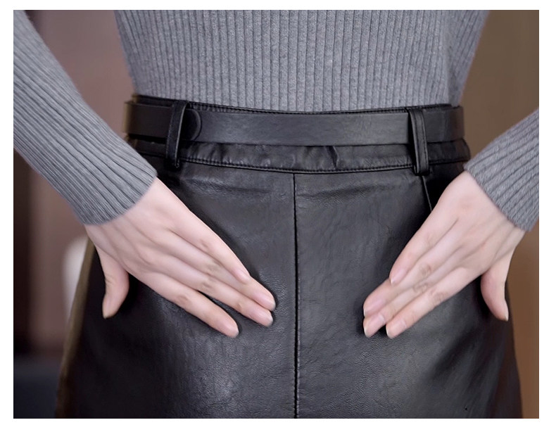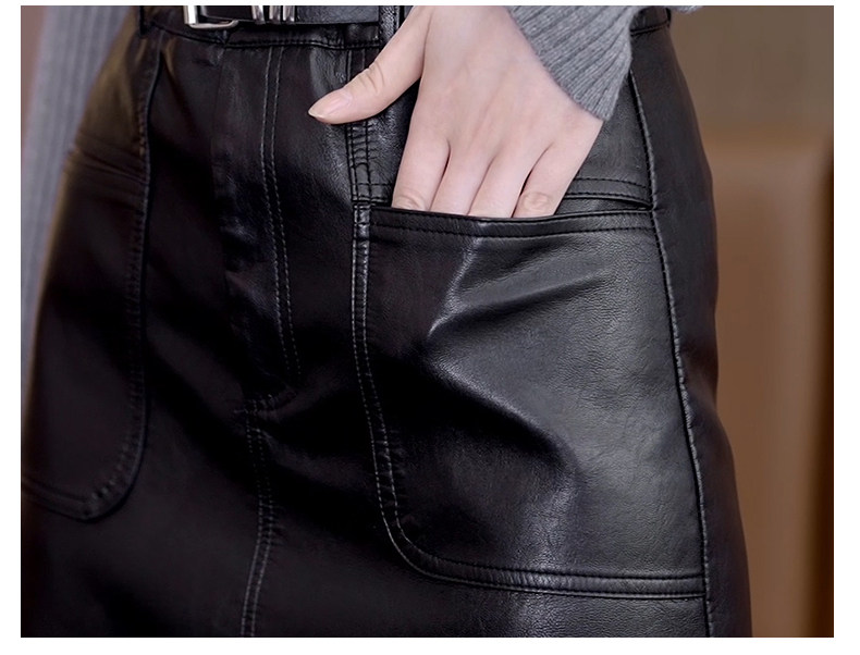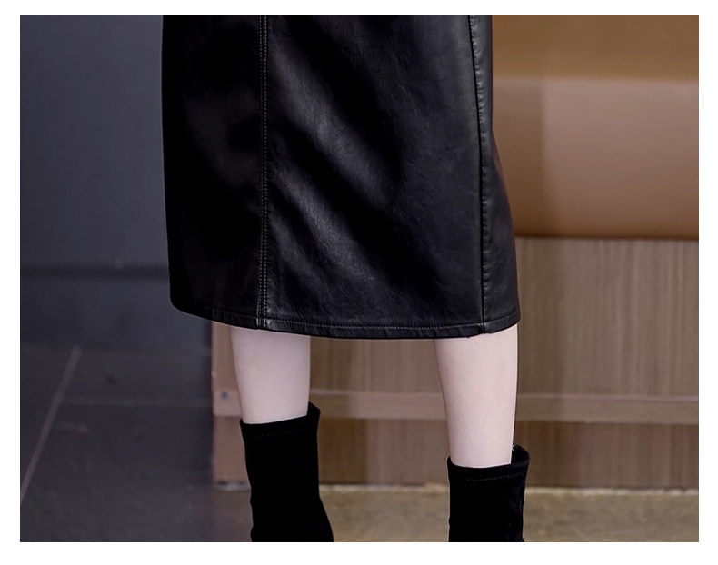 Осенняя демисезонная полиуретановая длинная юбка, высокая талия, свободный прямой крой, с акцентом на бедрах