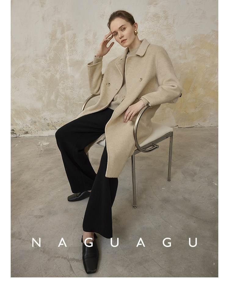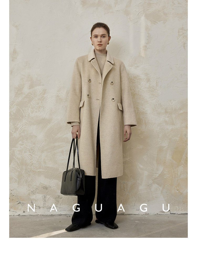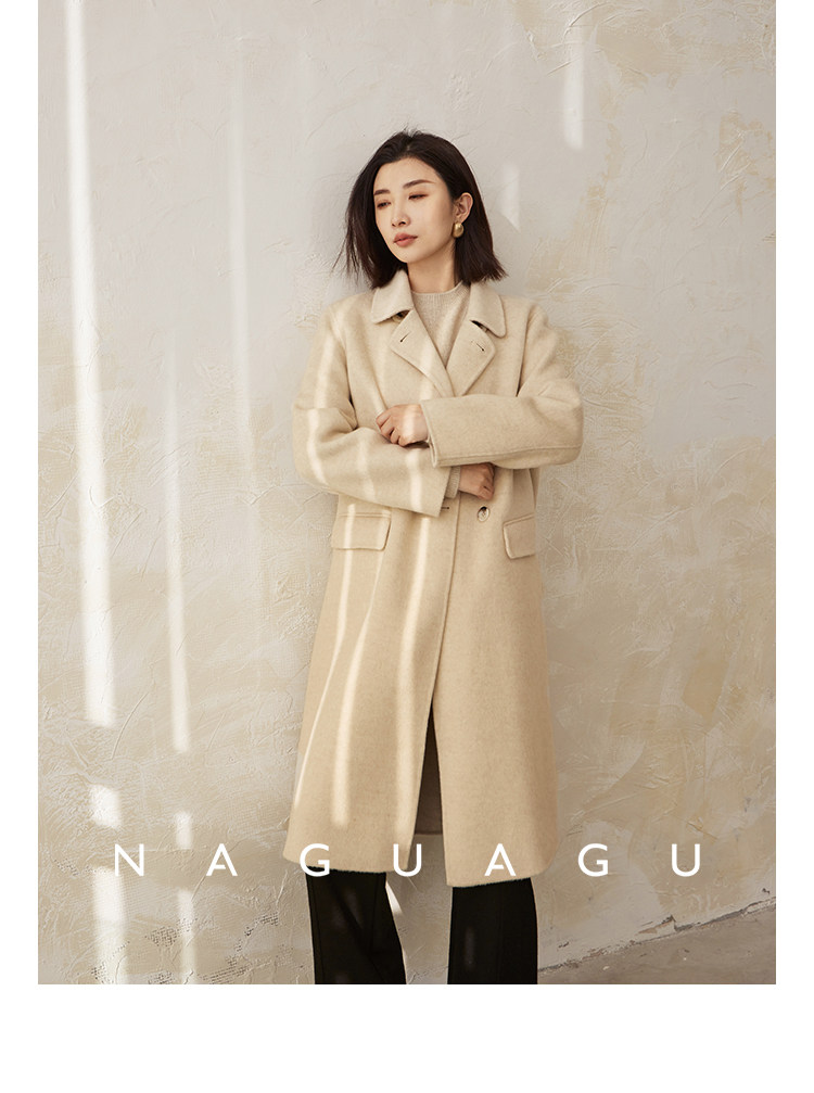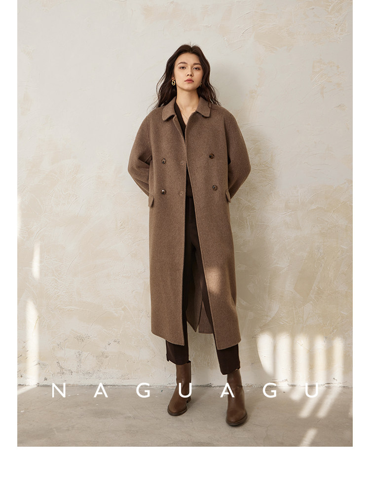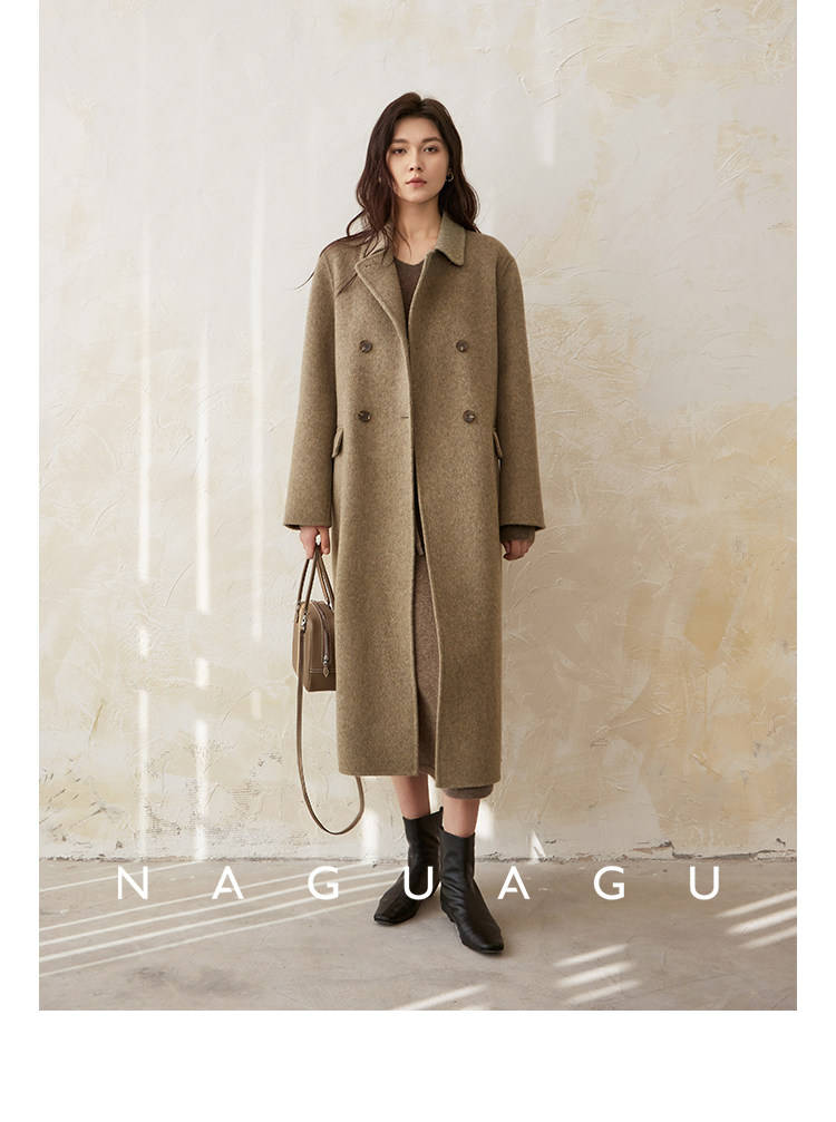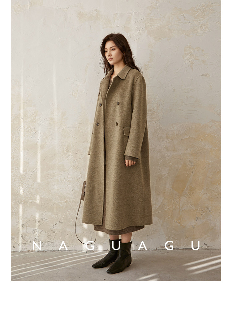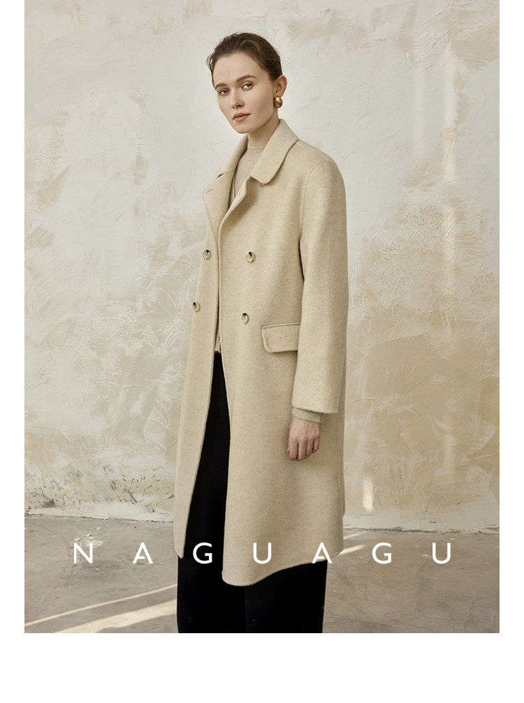 Пятно | Pumpkin Valley [10 цветов печенья] Пальто с лацканами из шерсти и кашемира из овечьей шерсти 100