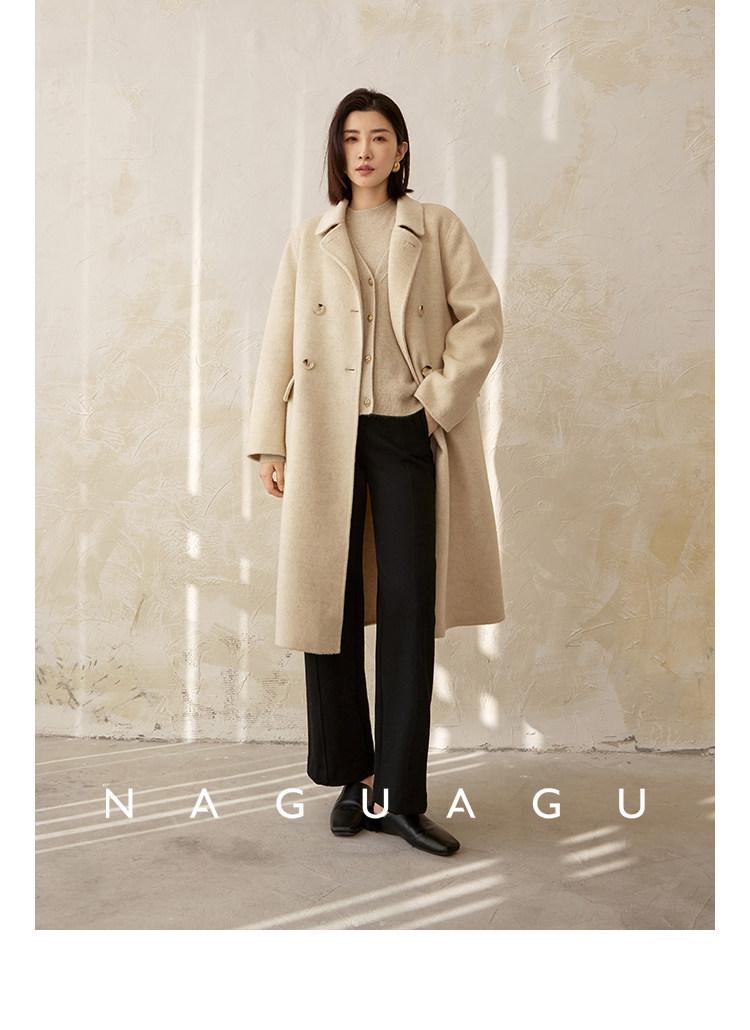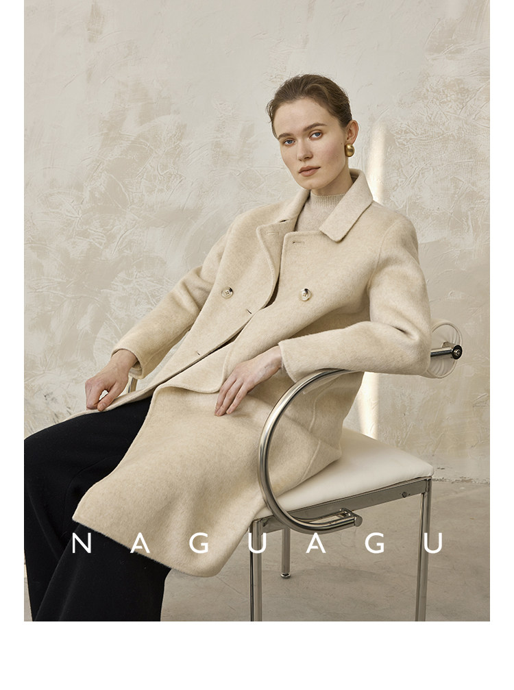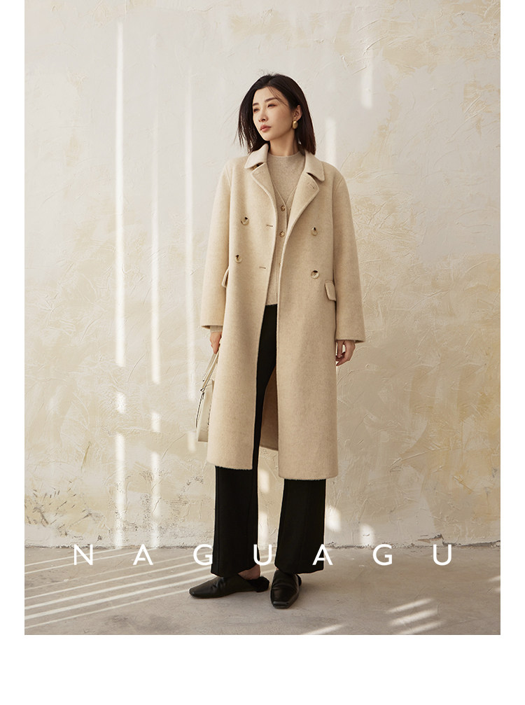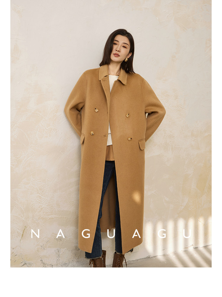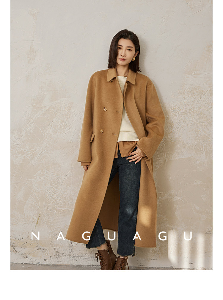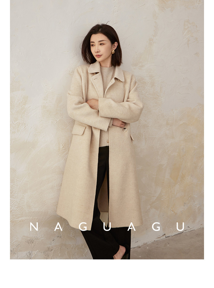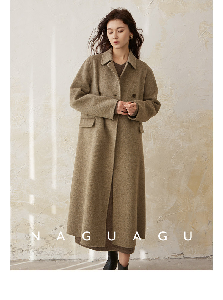 Пятно | Pumpkin Valley [10 цветов печенья] Пальто с лацканами из шерсти и кашемира из овечьей шерсти 100