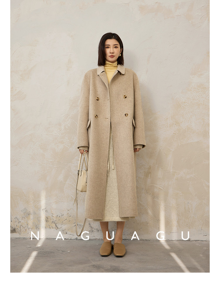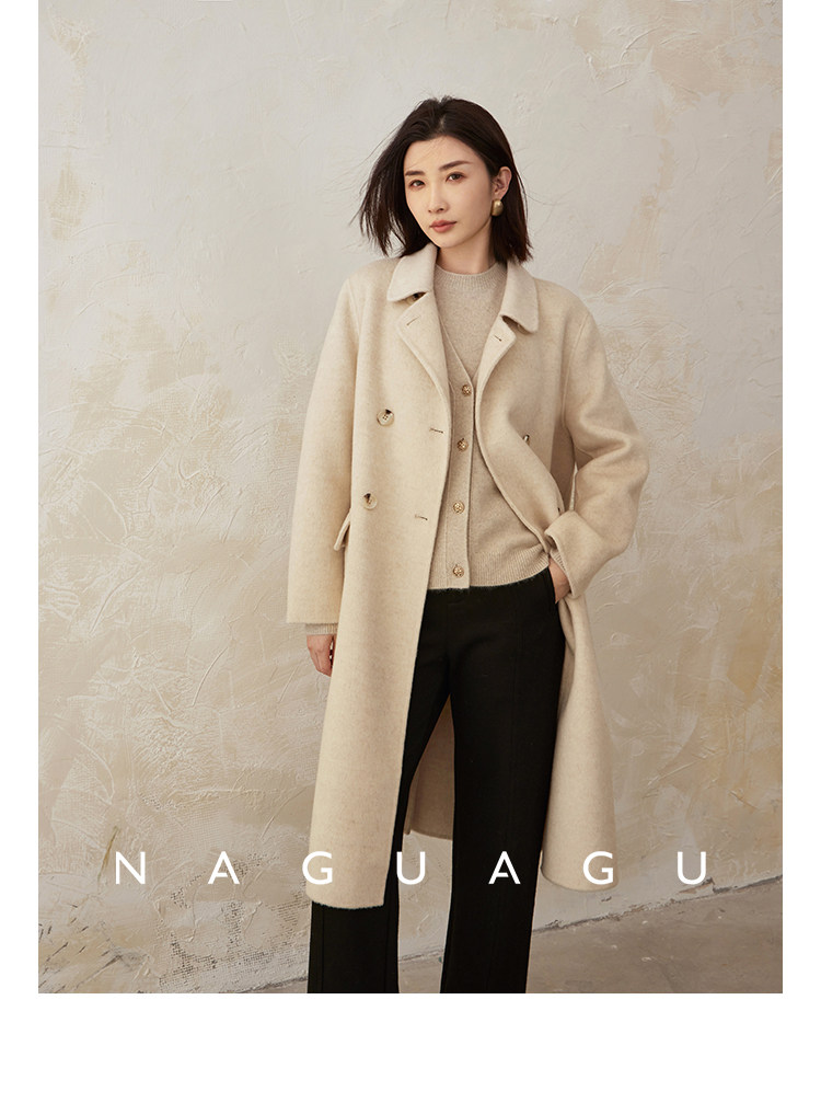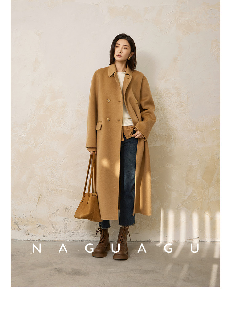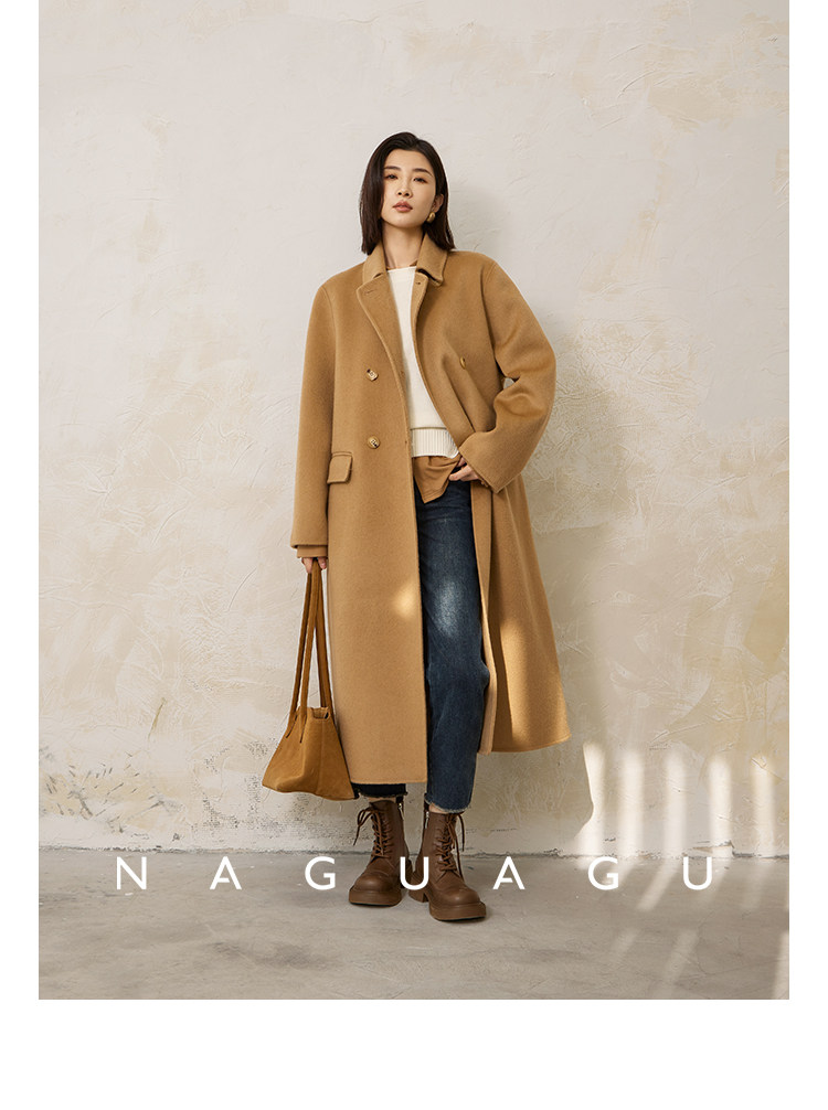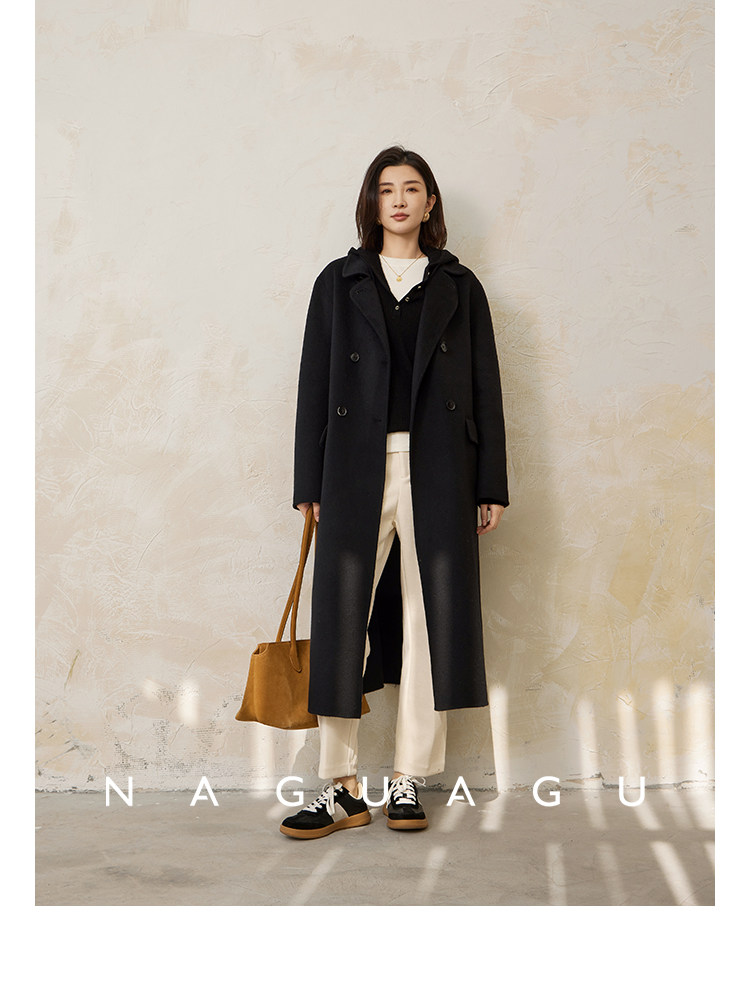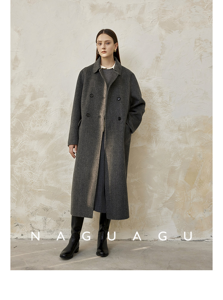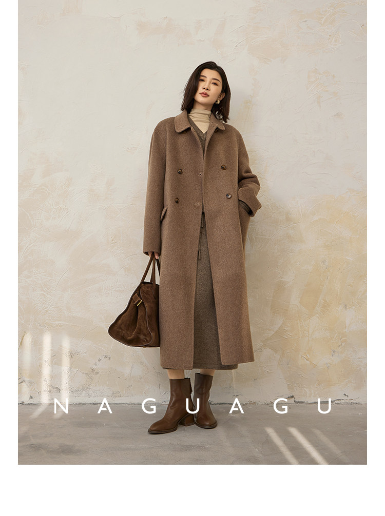 Пятно | Pumpkin Valley [10 цветов печенья] Пальто с лацканами из шерсти и кашемира из овечьей шерсти 100