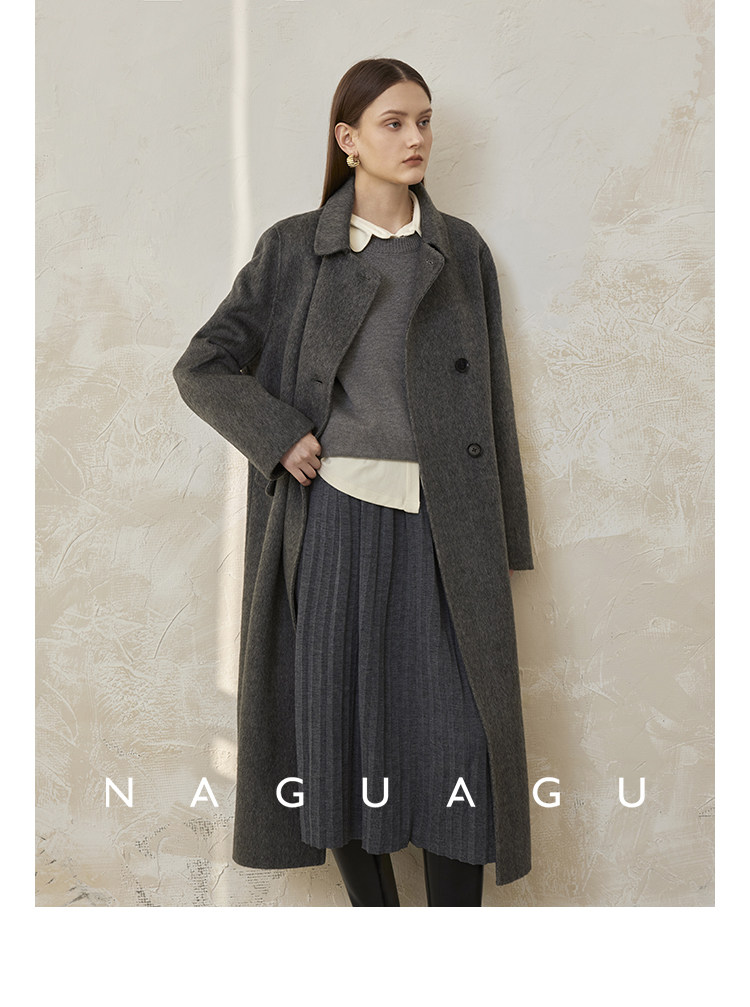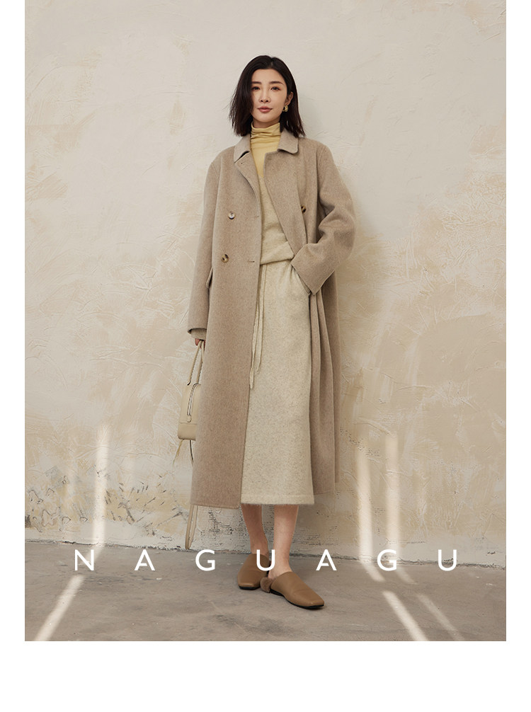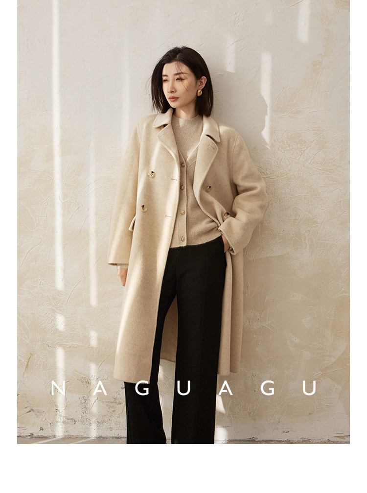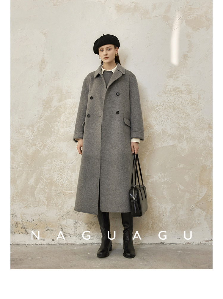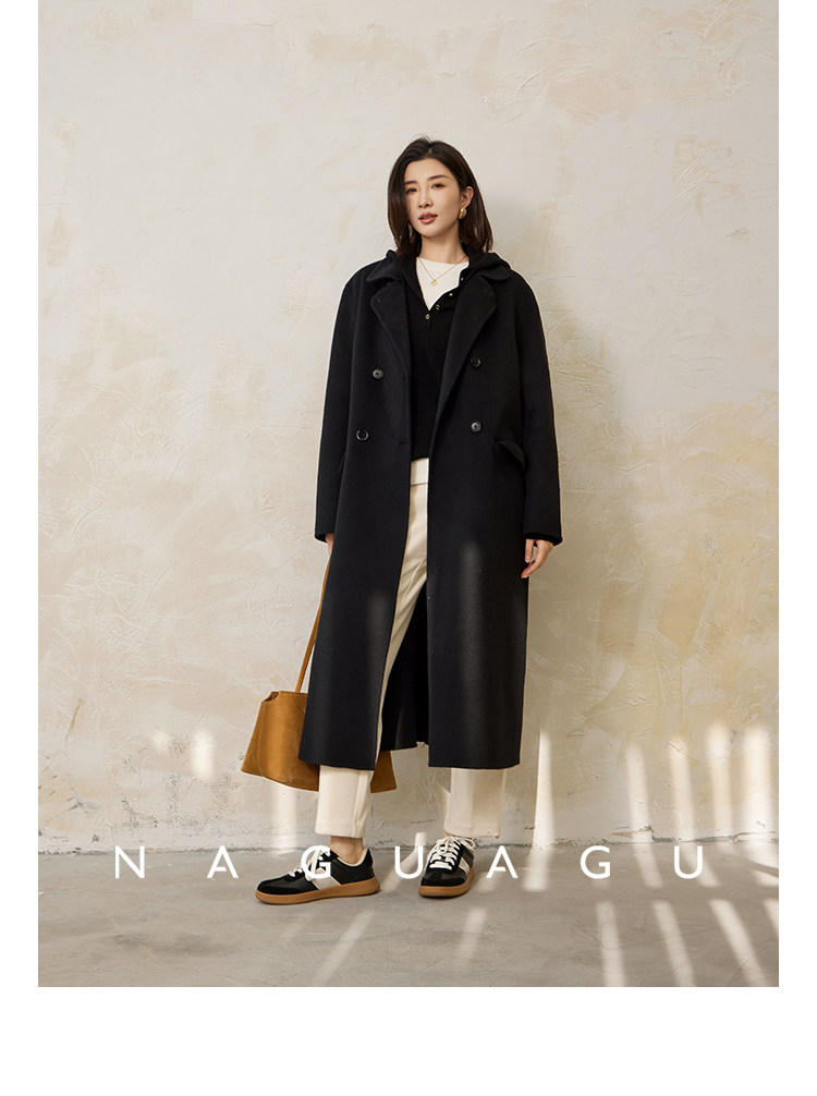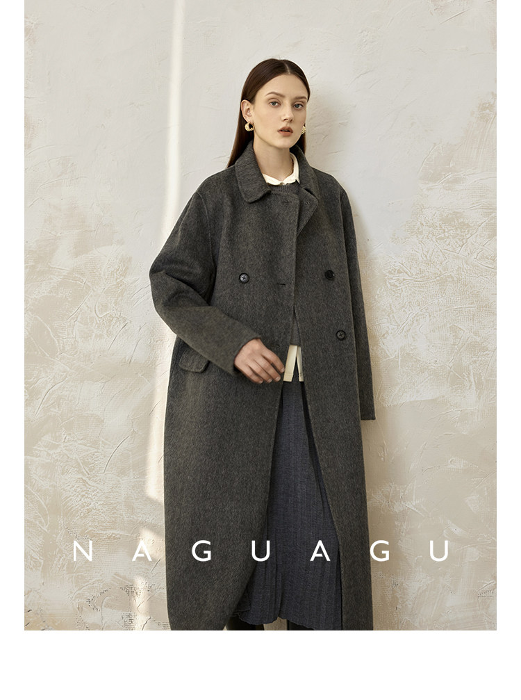 Пятно | Pumpkin Valley [10 цветов печенья] Пальто с лацканами из шерсти и кашемира из овечьей шерсти 100