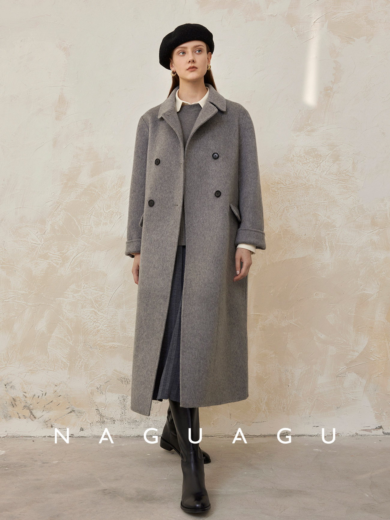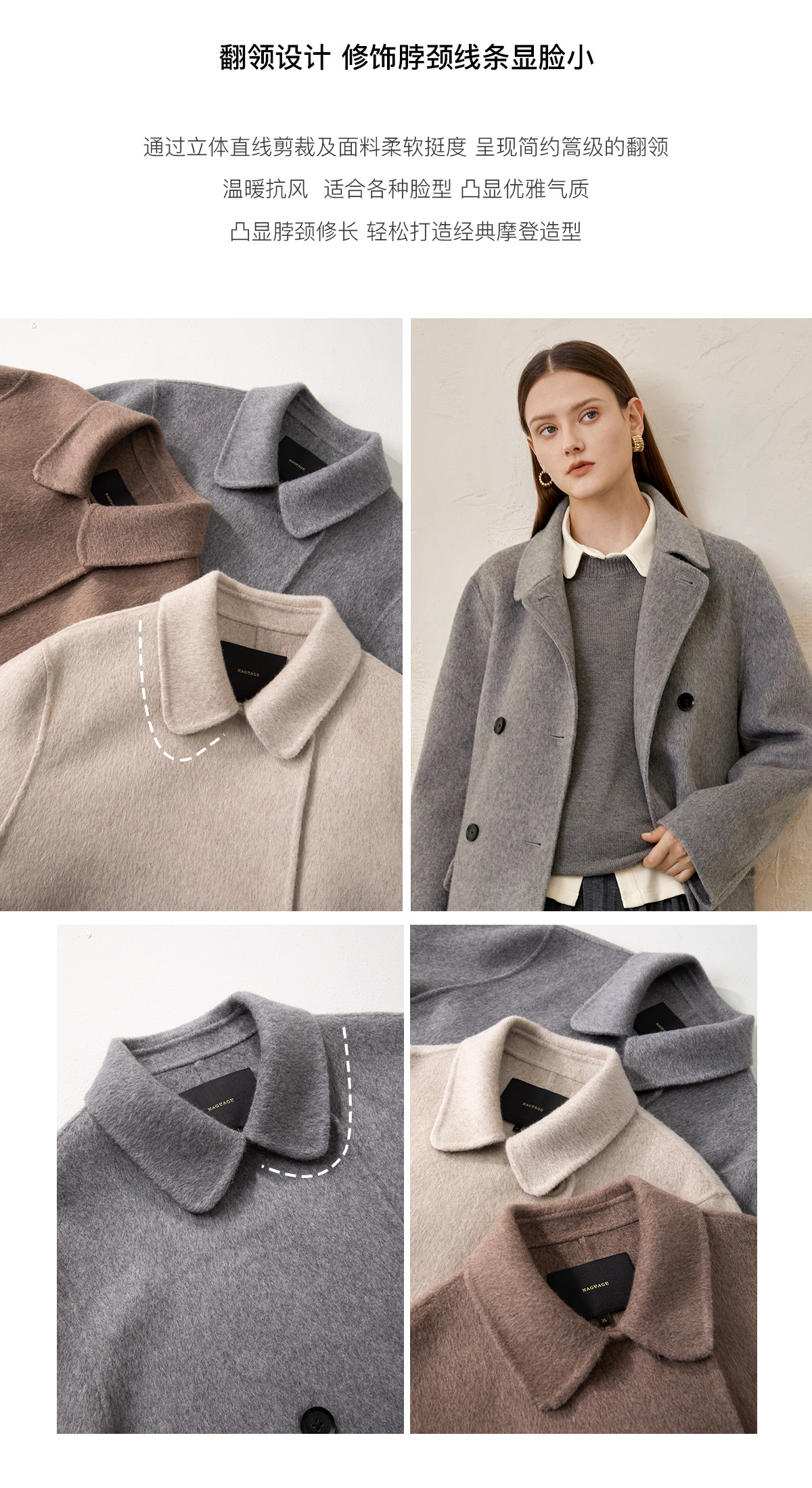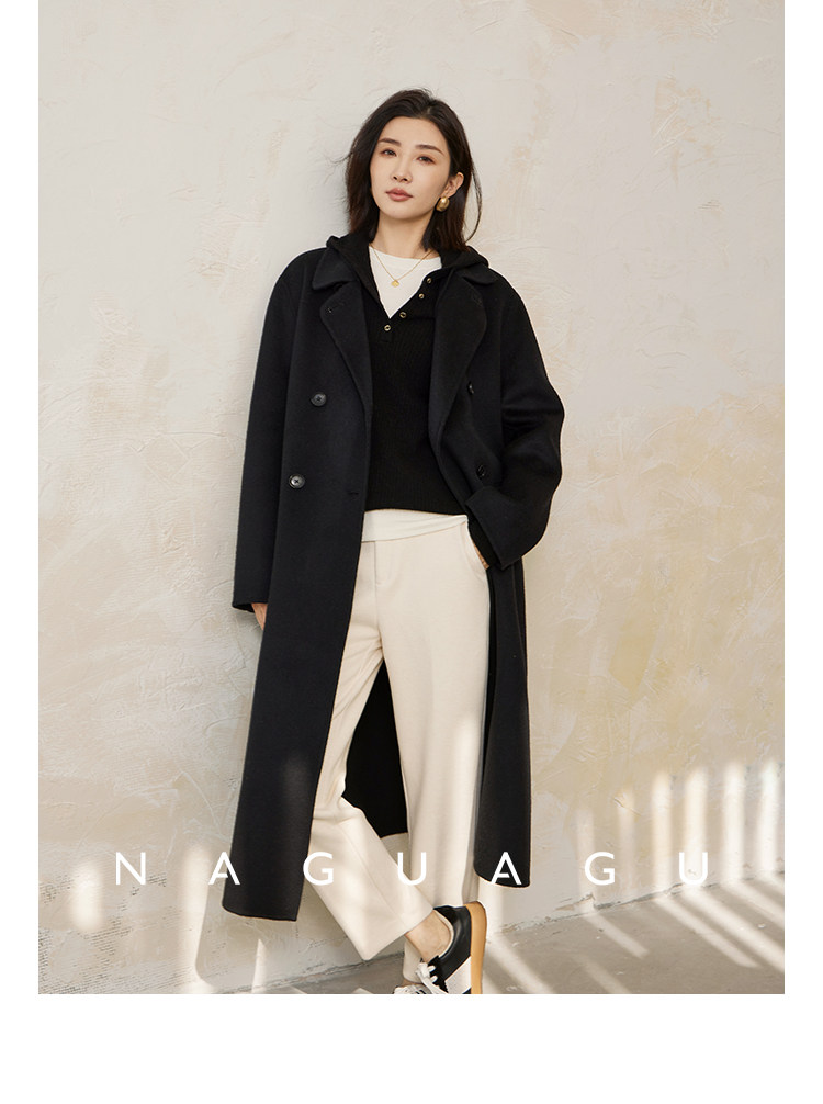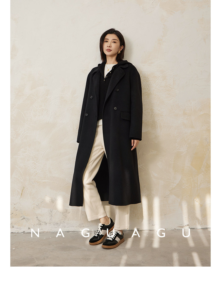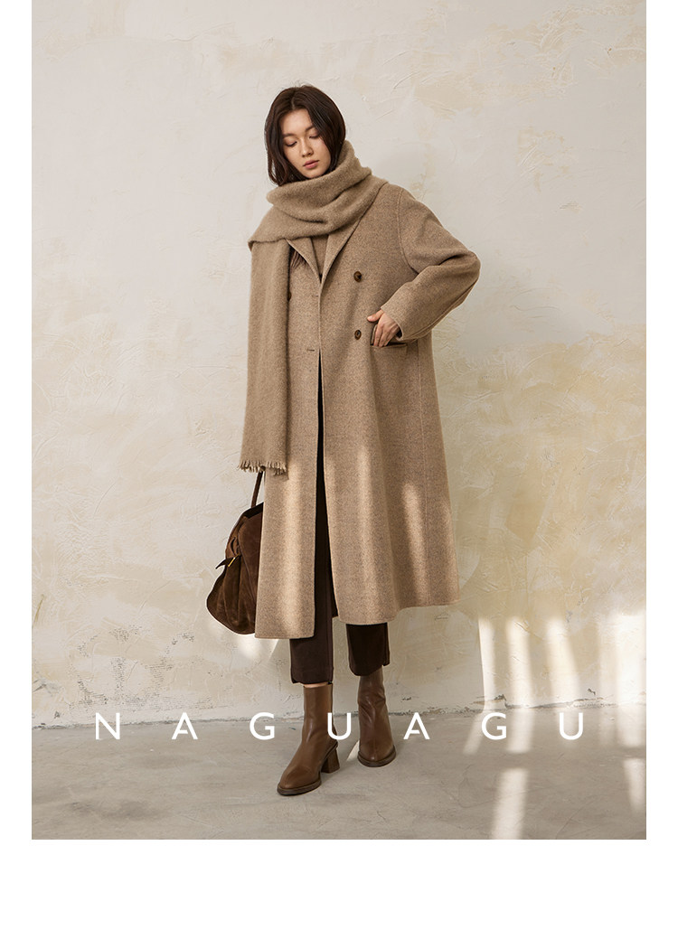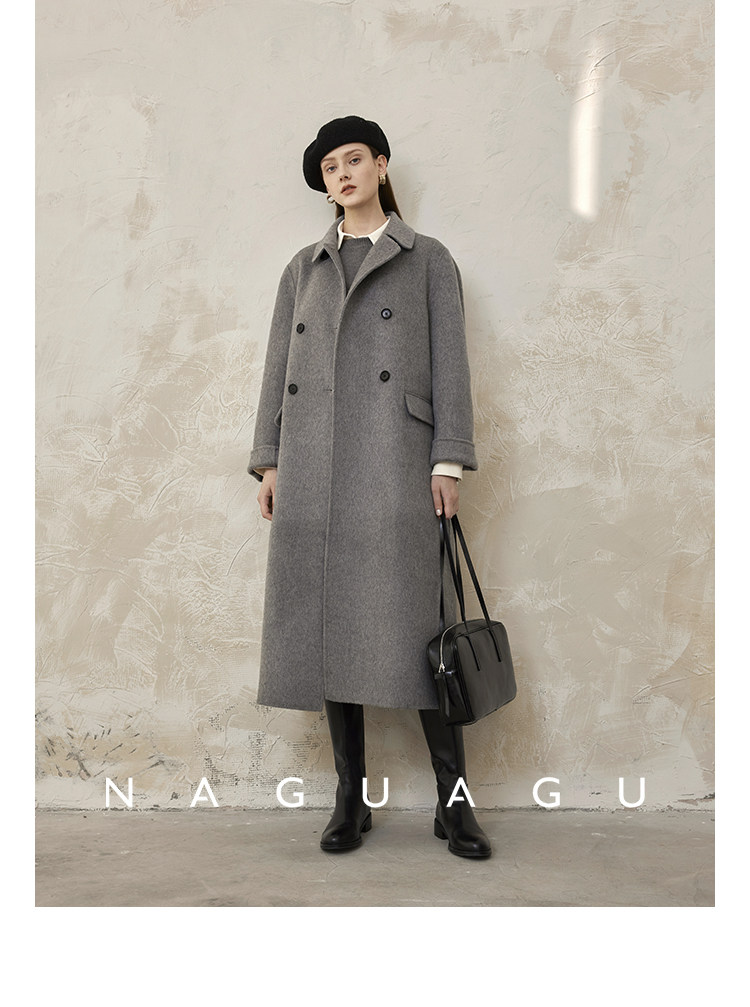 Пятно | Pumpkin Valley [10 цветов печенья] Пальто с лацканами из шерсти и кашемира из овечьей шерсти 100